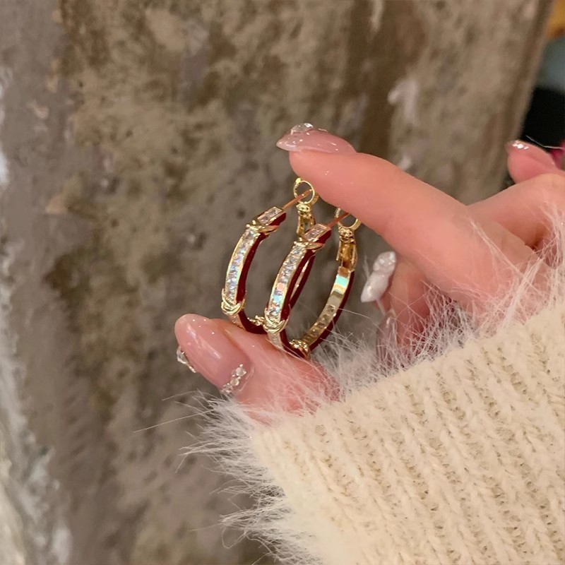 百搭气质网红同款耳圈耳钉轻奢小众高级设计感超闪锆石圆圈耳环女