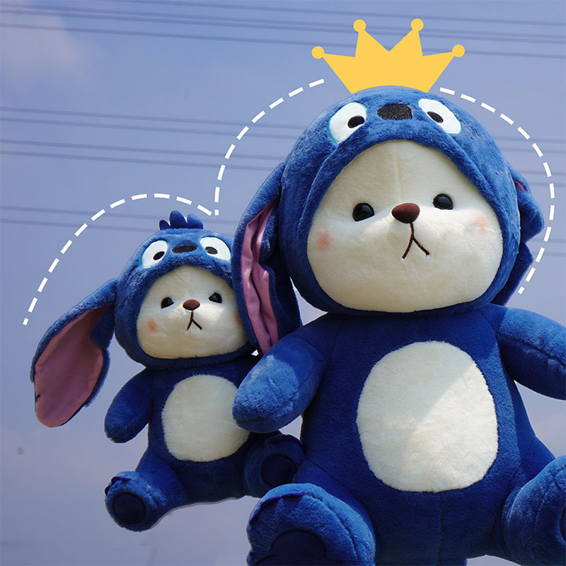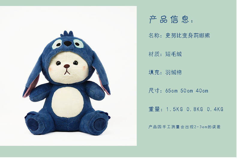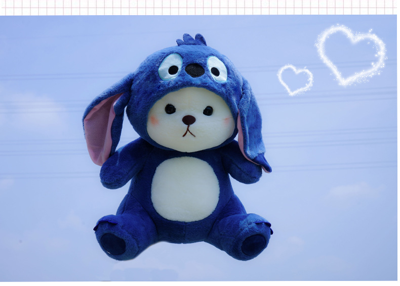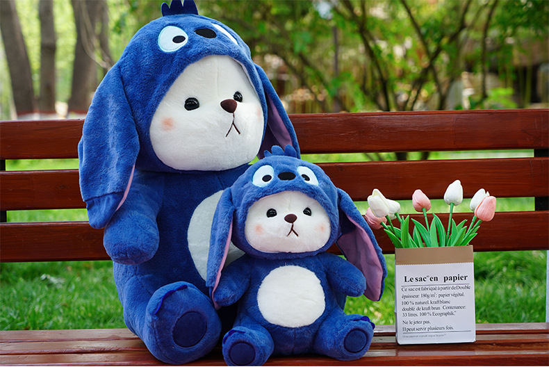 可爱史迪仔变身小熊公仔毛绒玩具可摘帽抱枕陪睡玩偶生日礼物