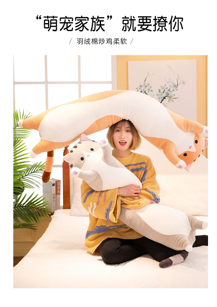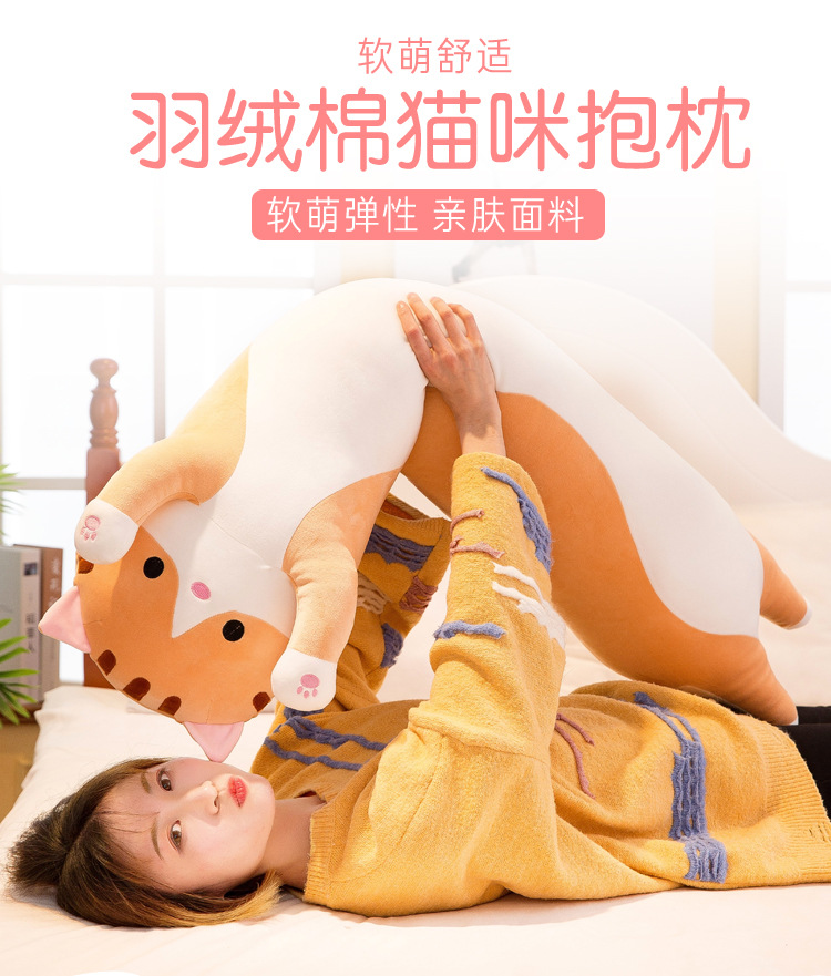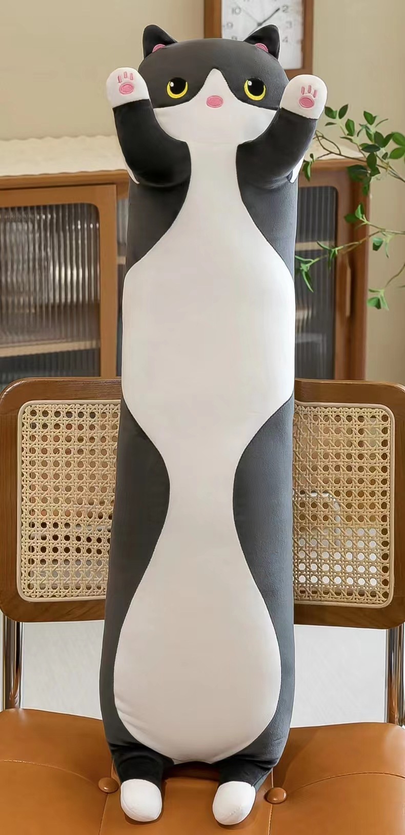 跨境外贸长条猫咪抱枕送女孩毛绒玩具玩偶娃娃大号夹腿抱睡公仔