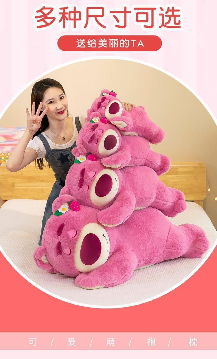 直销爆款趴版草莓味玩具熊大号草莓粉色公仔熊睡觉抱枕娃娃礼物