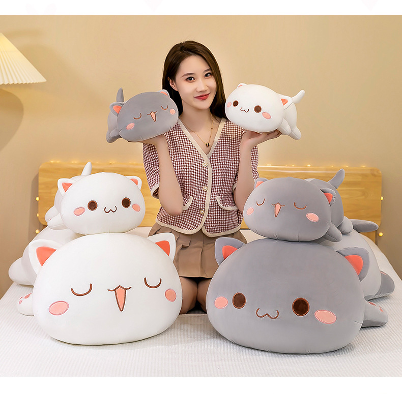 跨境小猫猫抱枕毛绒玩具可爱趴款黑白猫公仔大号情侣布娃娃送女生