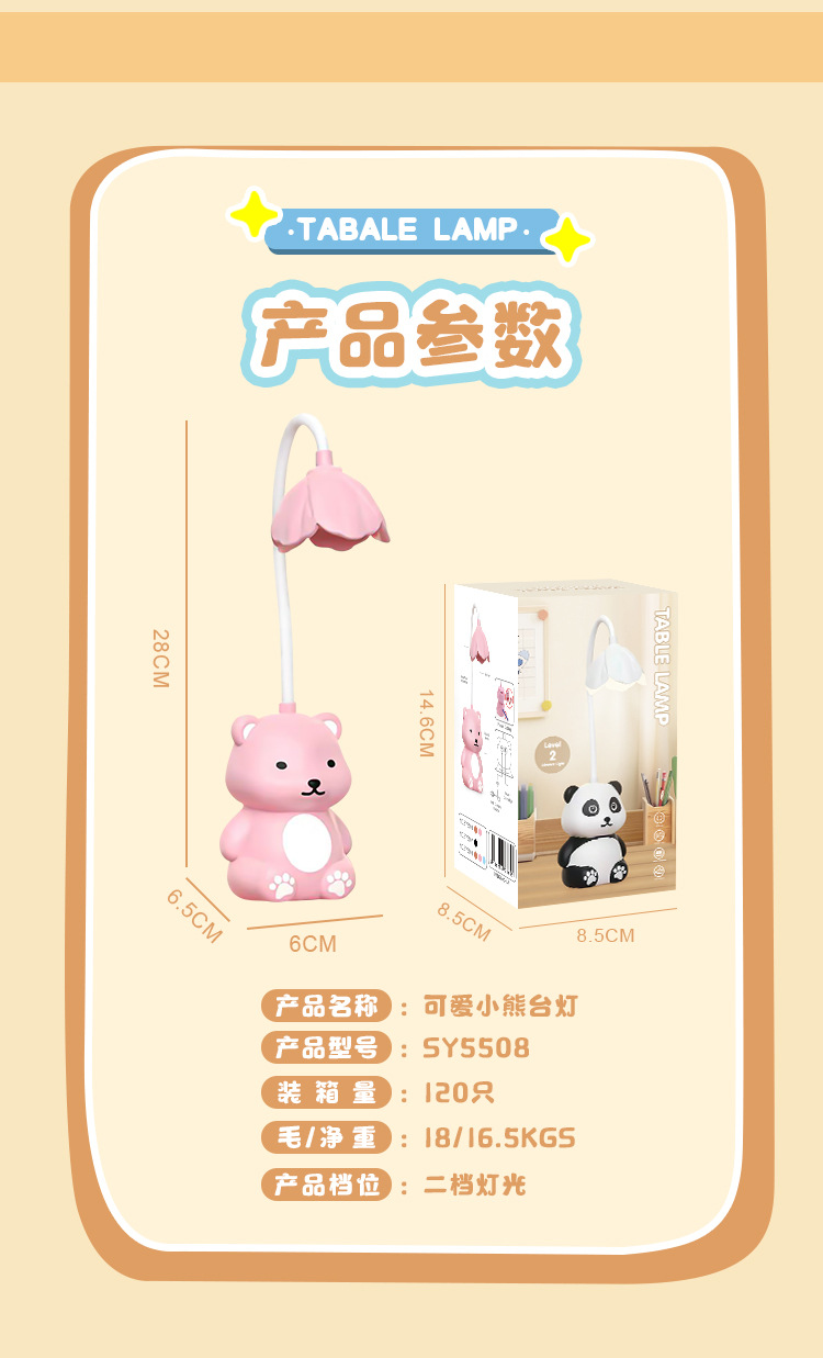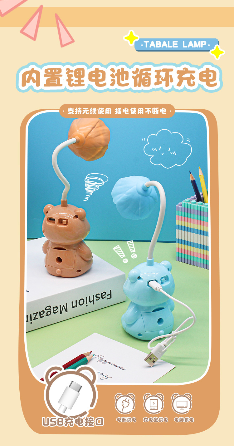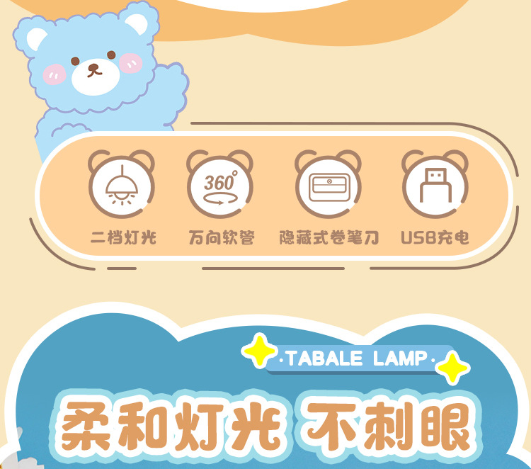 新款跨境多巴胺卡通熊护眼台灯铅笔学生宿舍卧室床头台灯摆件