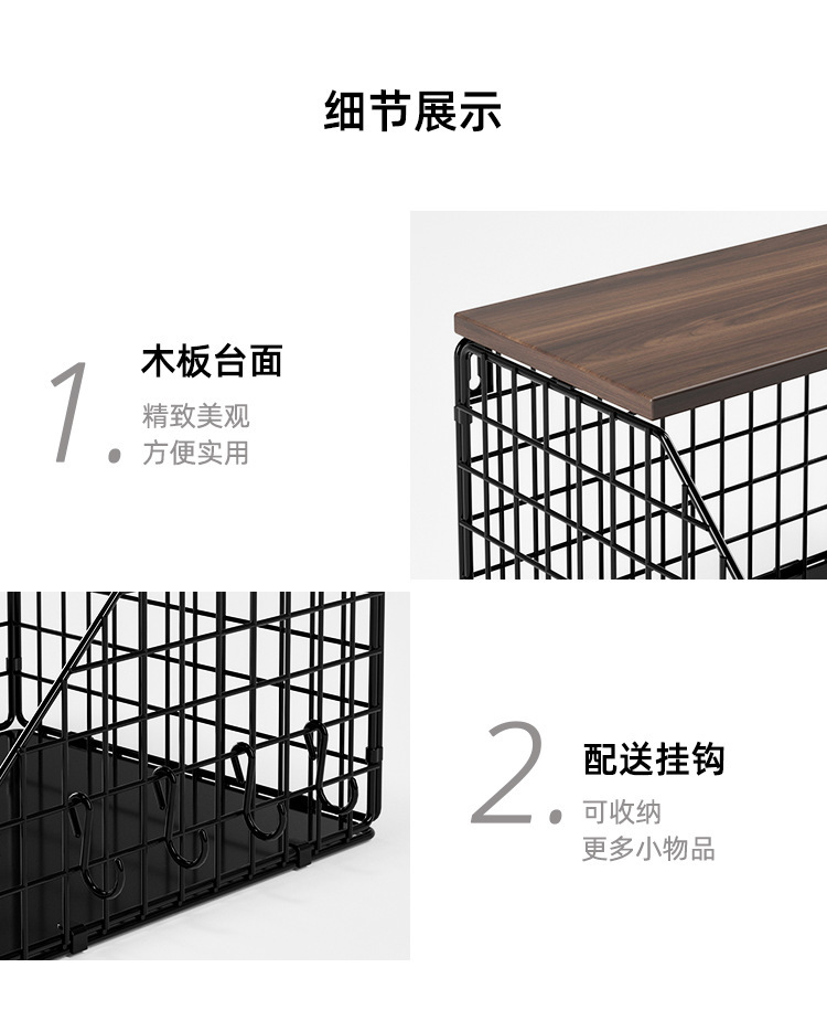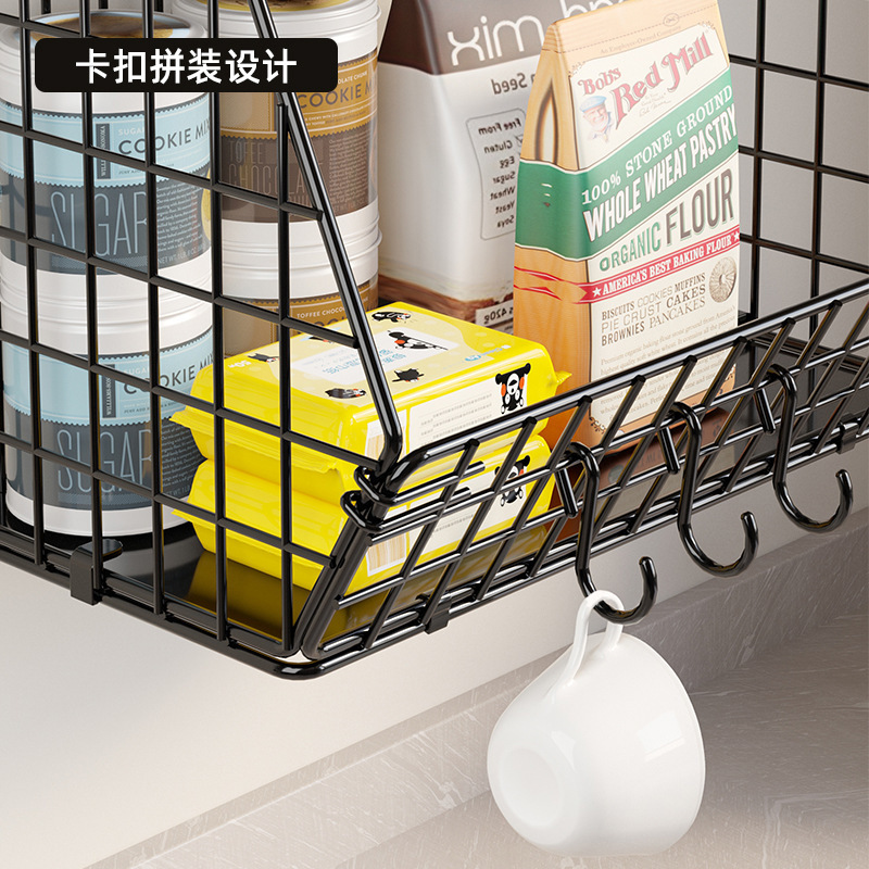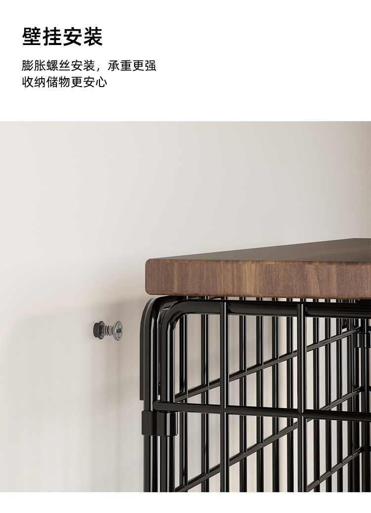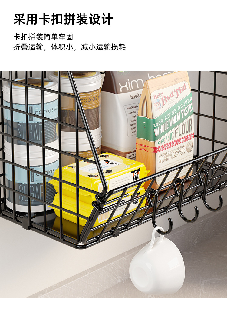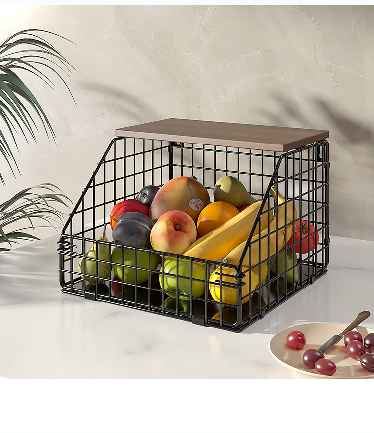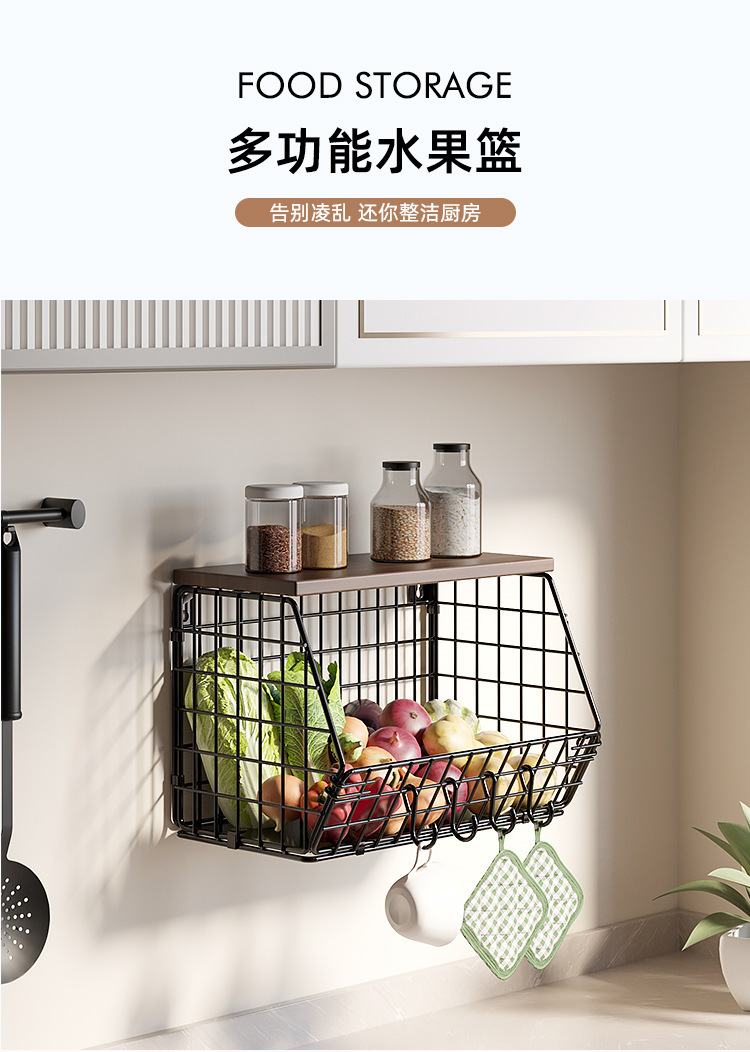 跨境壁挂式厨房置物架加厚铁艺木质收纳架可折叠蔬菜水果收纳篮