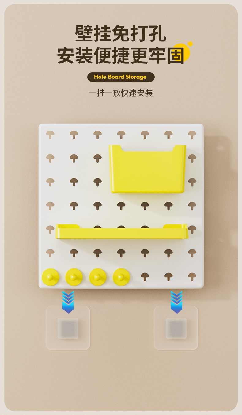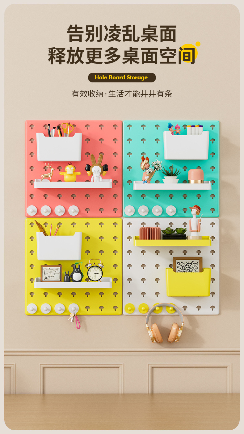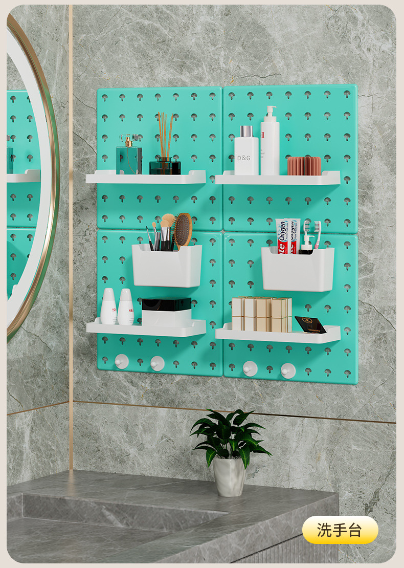 壁挂式洞洞板 宿舍免打孔墙挂置物架 加厚玄关墙面展示架墙组合
