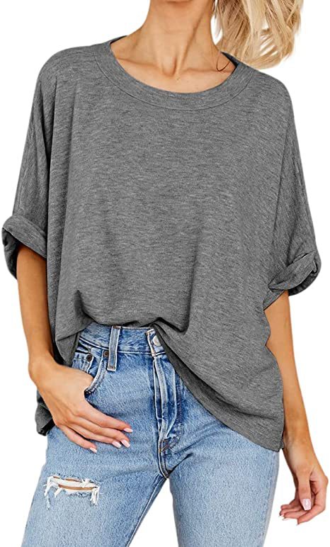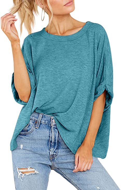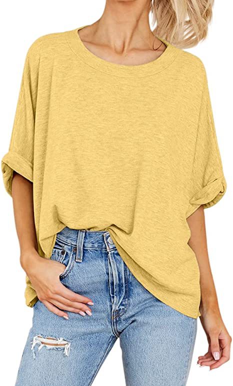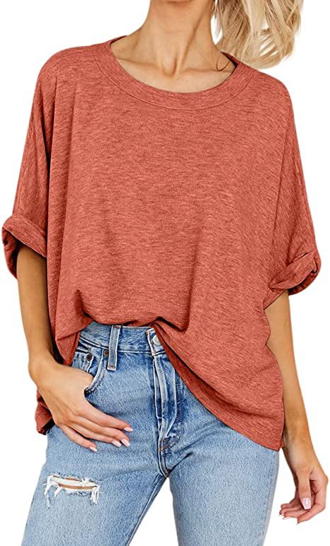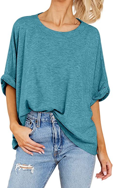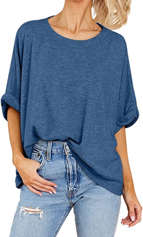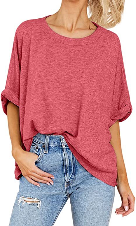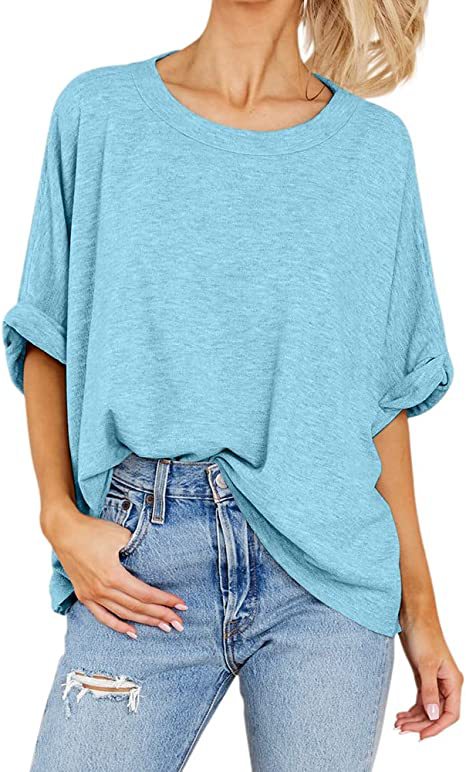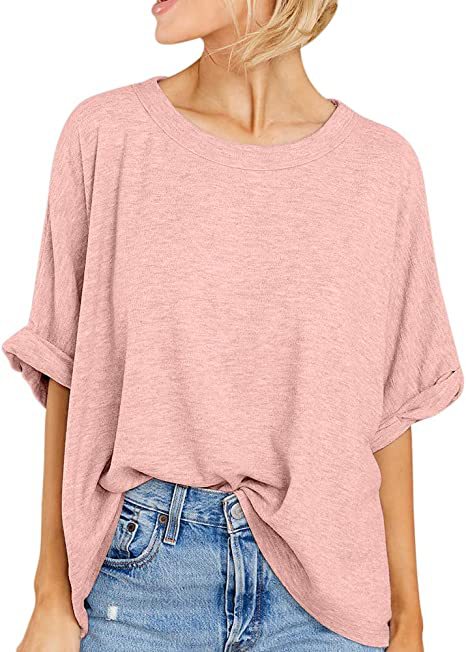 2023亚马逊女式夏季高弹舒适休闲宽松五分袖T 恤上衣 马卡龙色系
