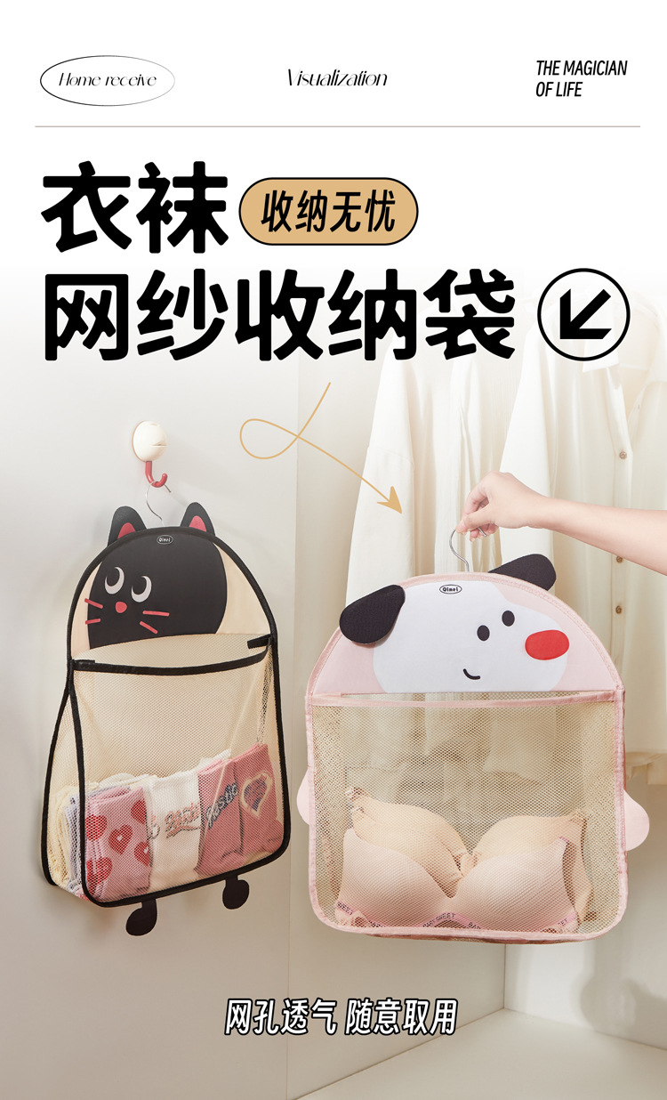 多场景多功能大容量置物袋挂钩储物袋卡通网兜衣服收纳袋挂