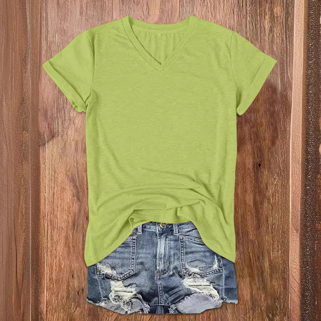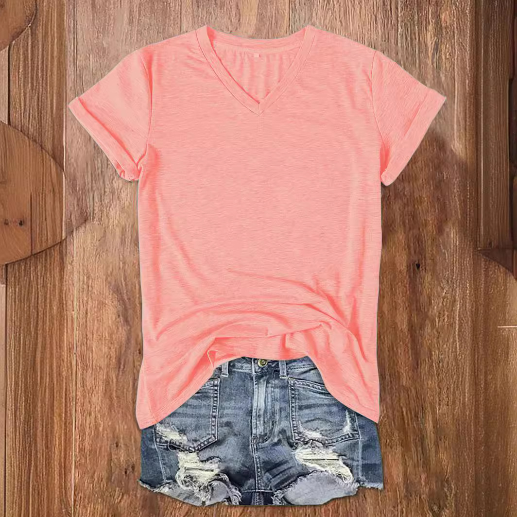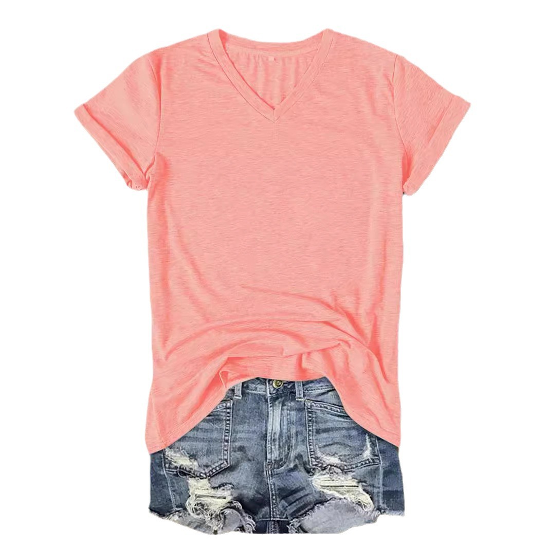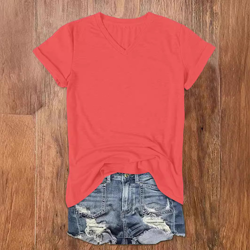 一件可印花 2024夏季新款欧美女装 V领时尚宽松短袖T恤女