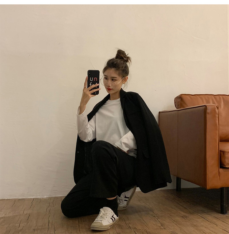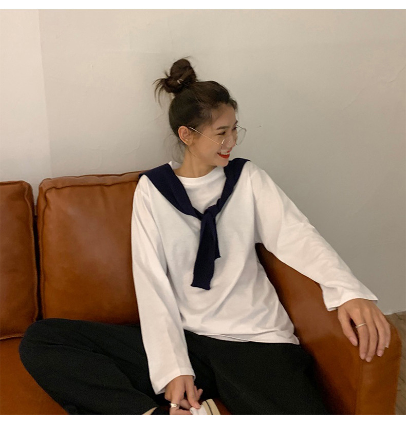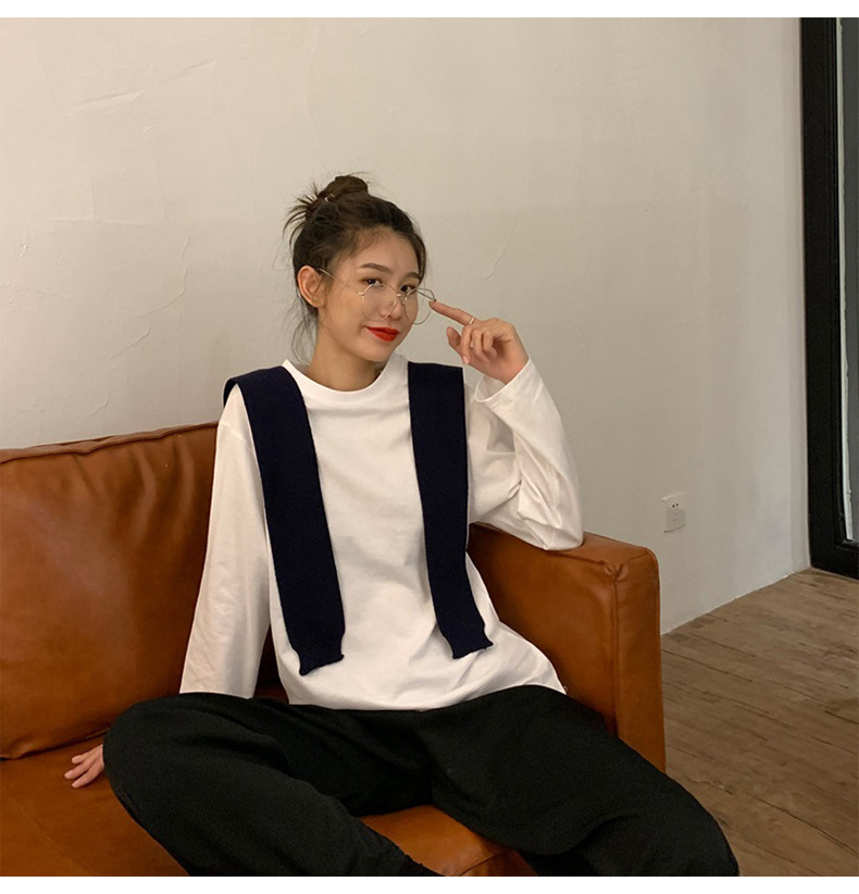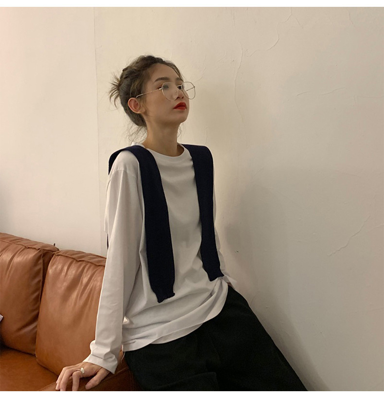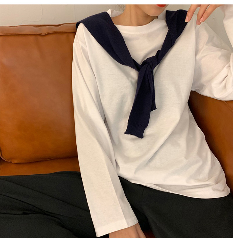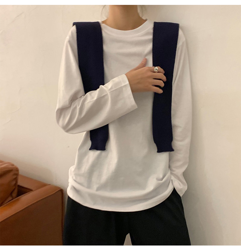 白色打底衫女秋季2024新款韩版女装洋气内搭纯色学生长袖t恤女潮