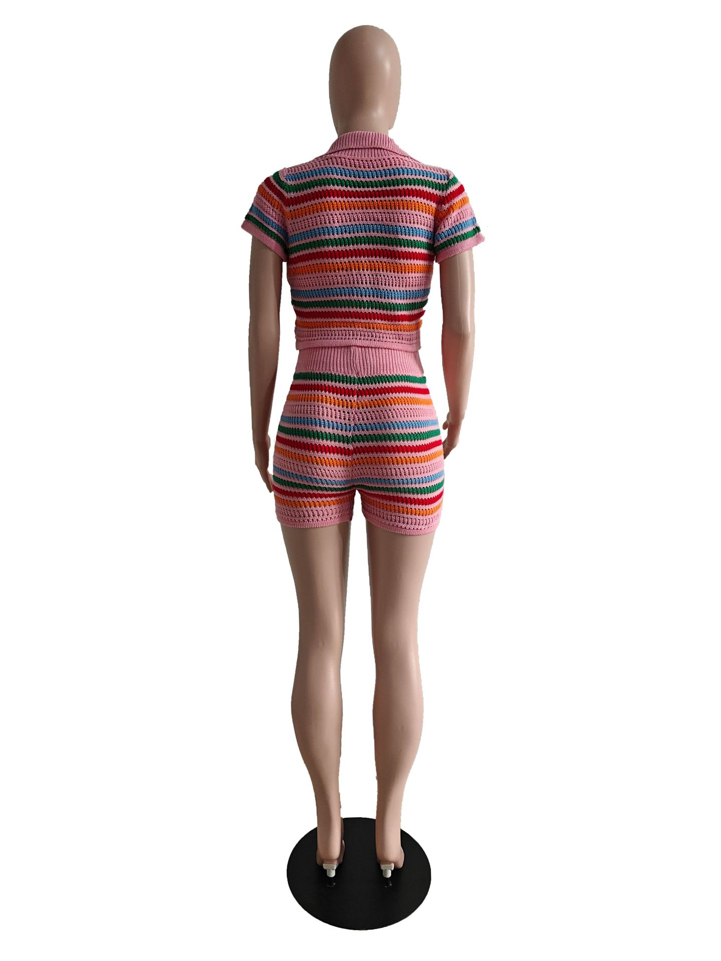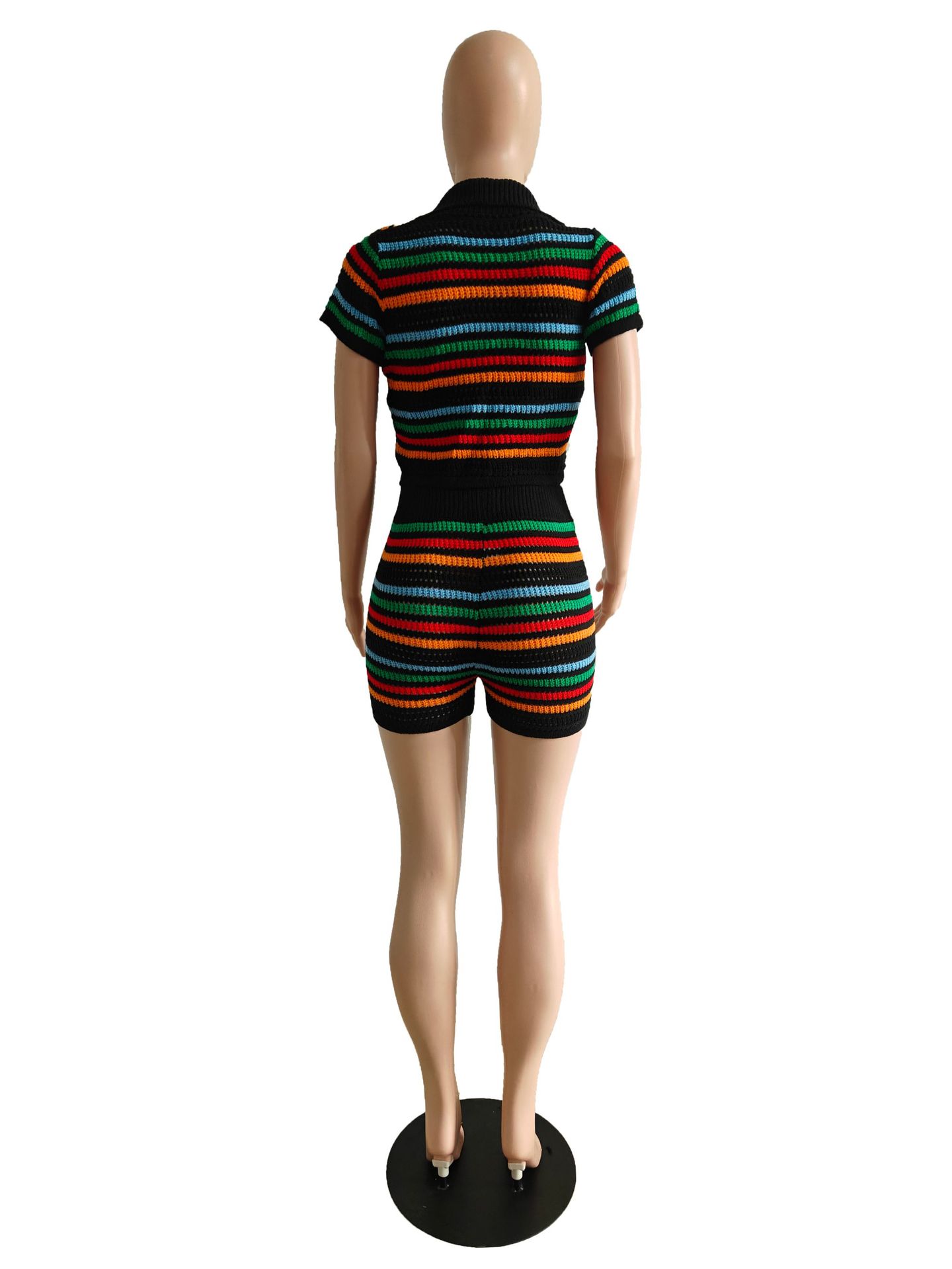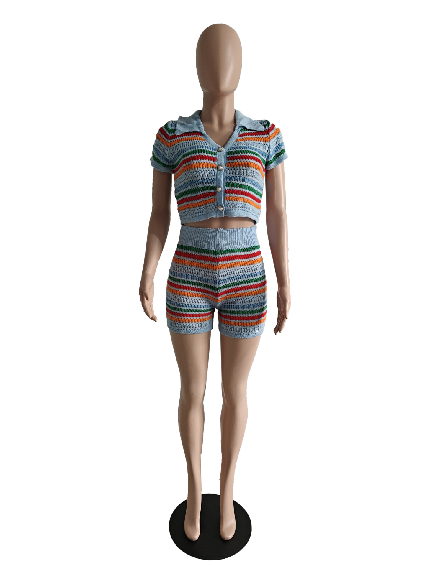 DY6901欧美女装2024夏季新款性感针织撞色短袖短裤休闲套装两件套
