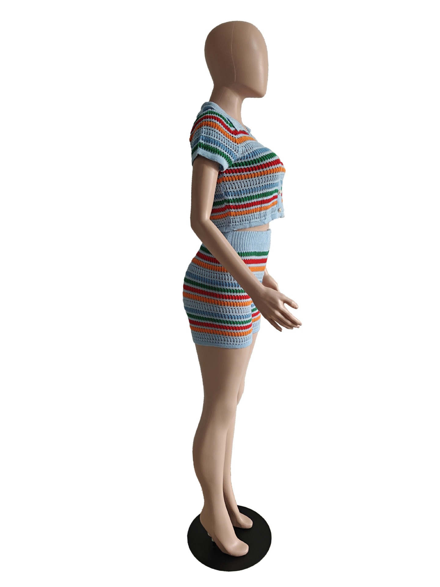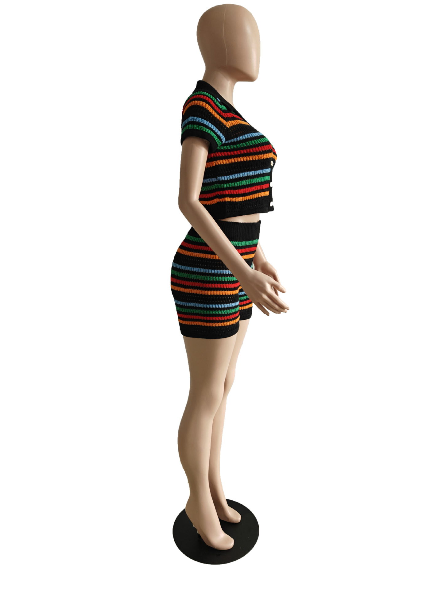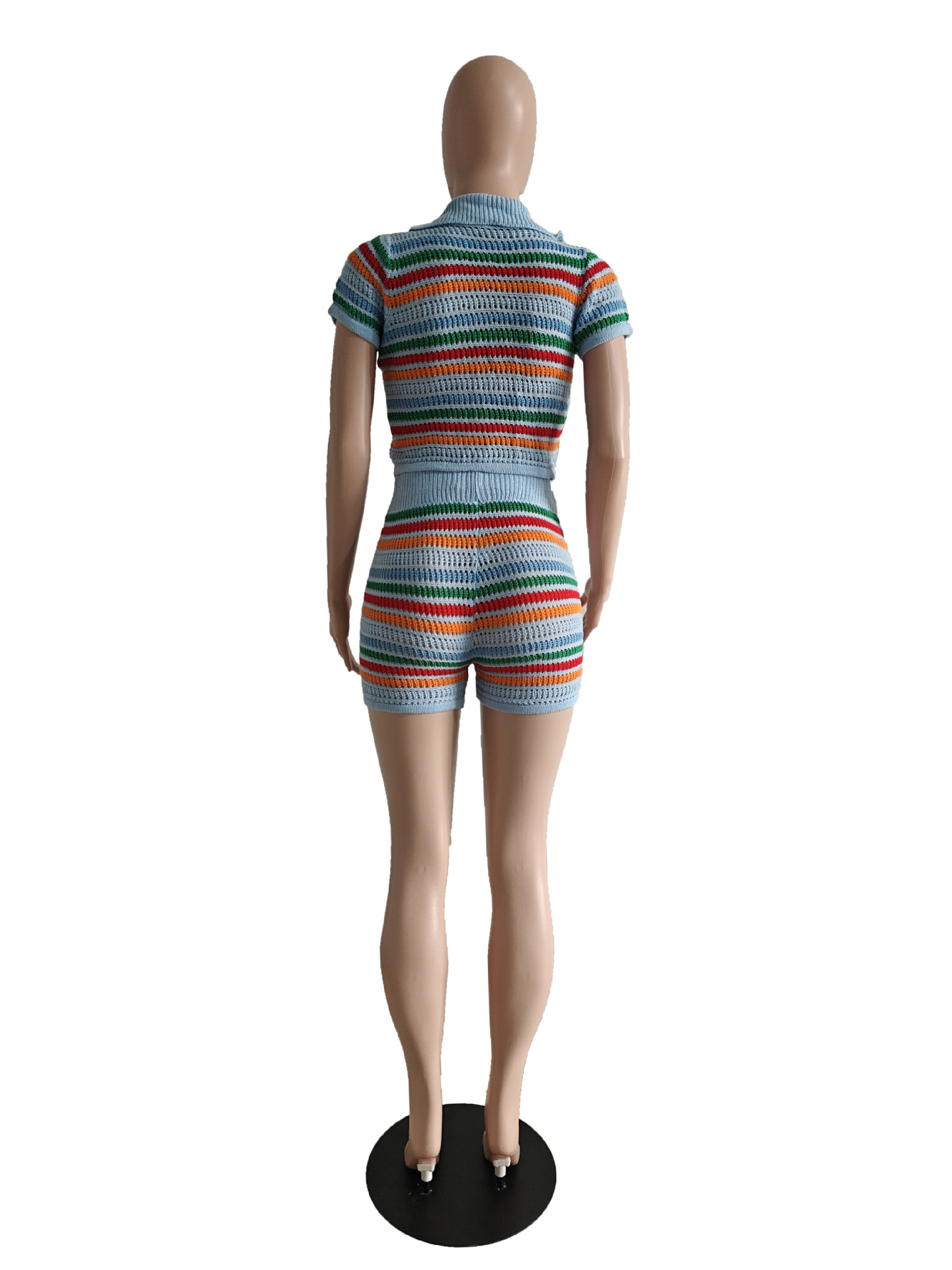 DY6901欧美女装2024夏季新款性感针织撞色短袖短裤休闲套装两件套