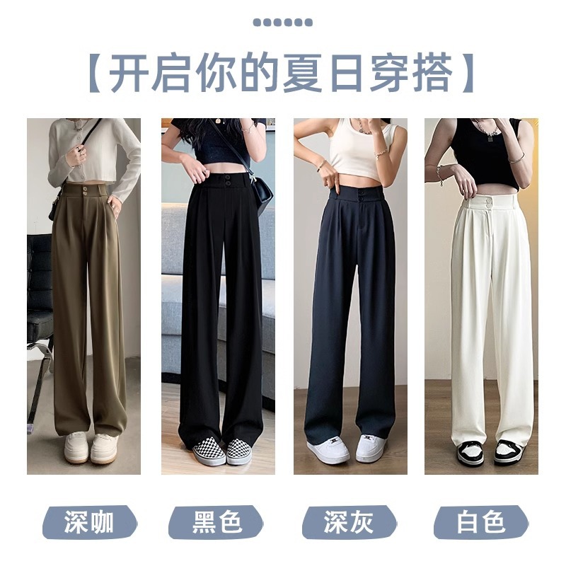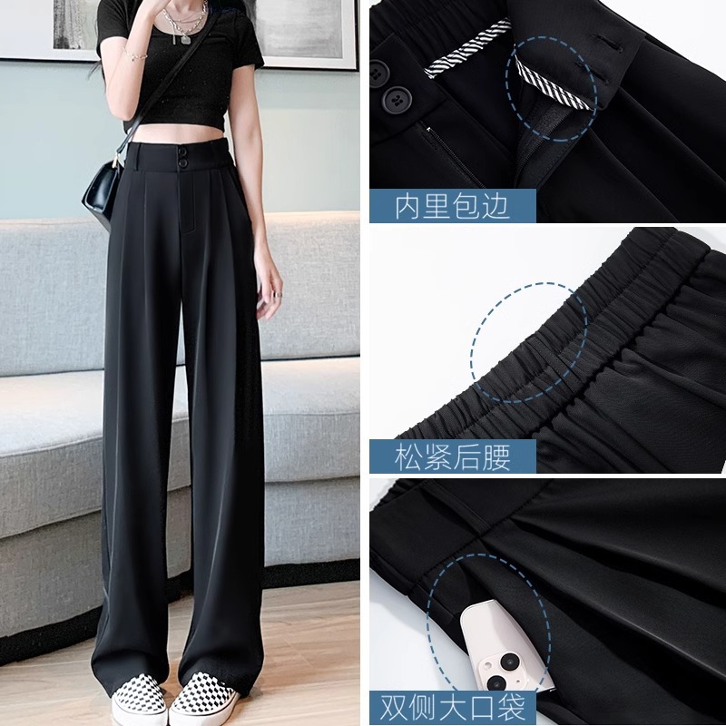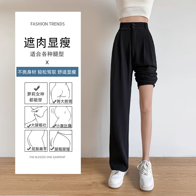 黑色西装裤女2025新款春夏高腰垂感高级感直筒西裤小个子阔腿裤子