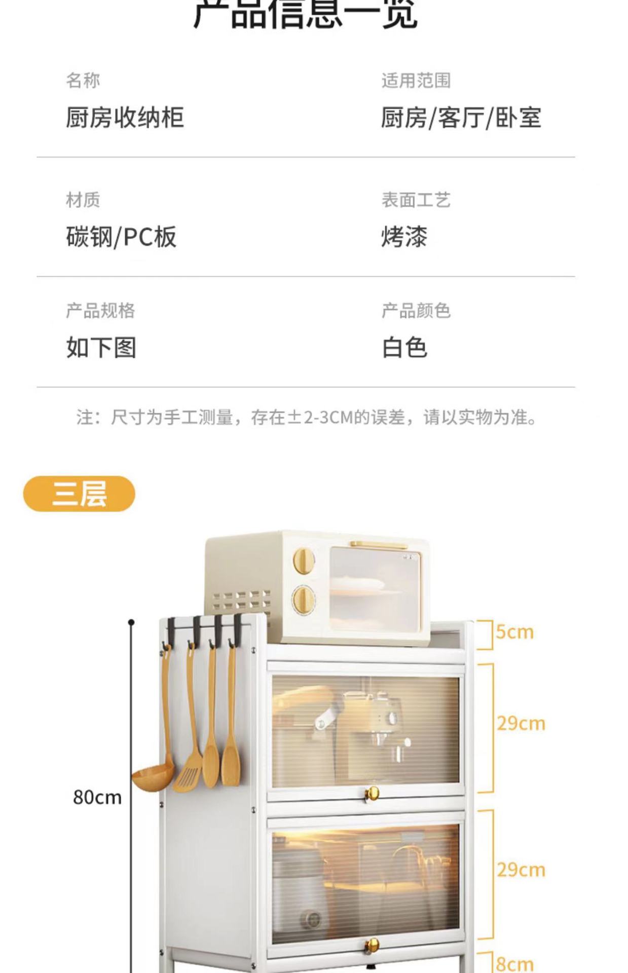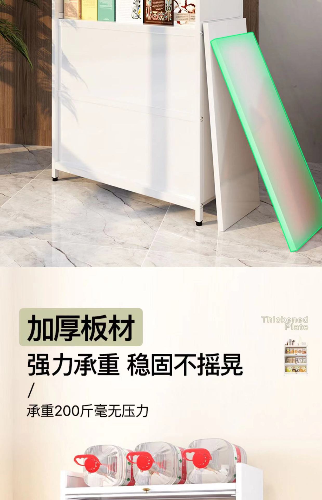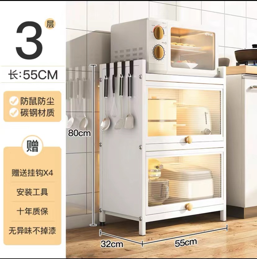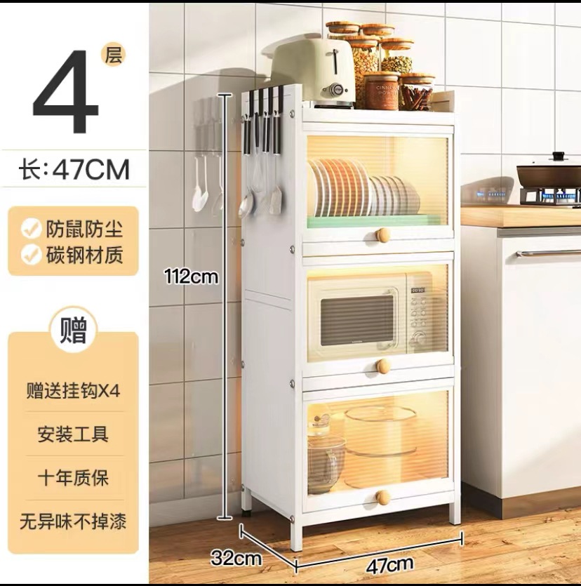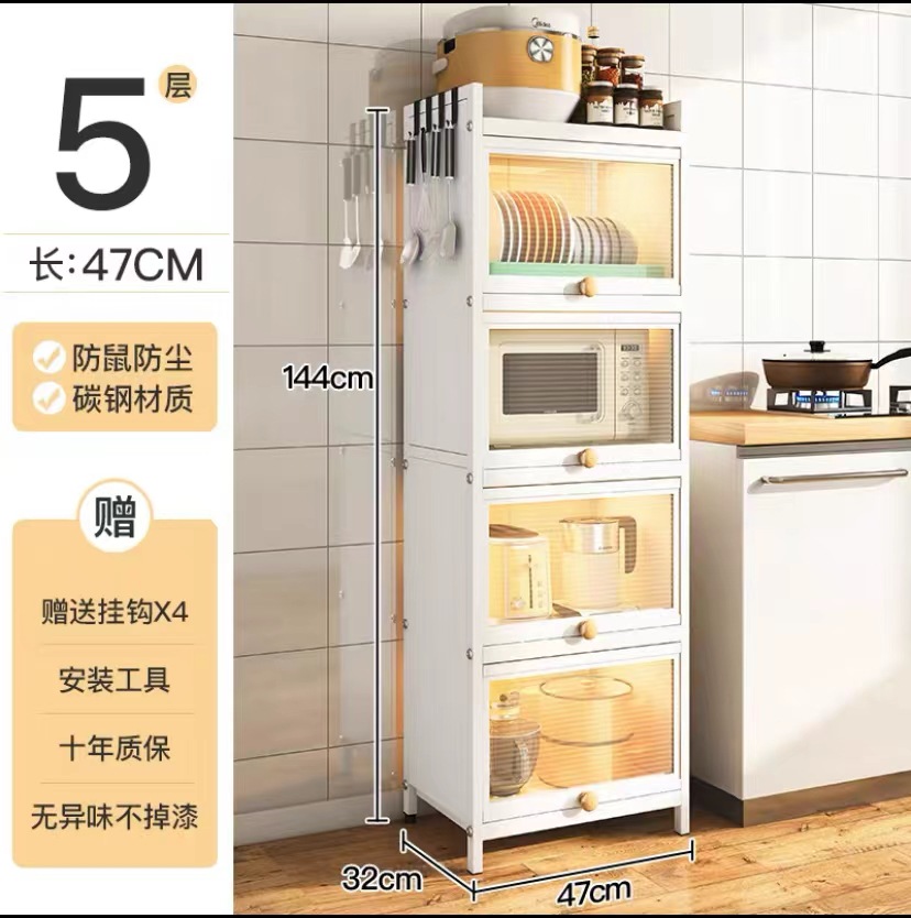 厨房置物架多功能橱柜带门碗筷盘碟锅具碳钢收纳柜落地多层储物柜