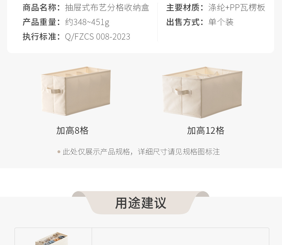 分格收纳盒可水洗 可折叠布艺家用衣柜收纳整理箱分层分隔储物筐