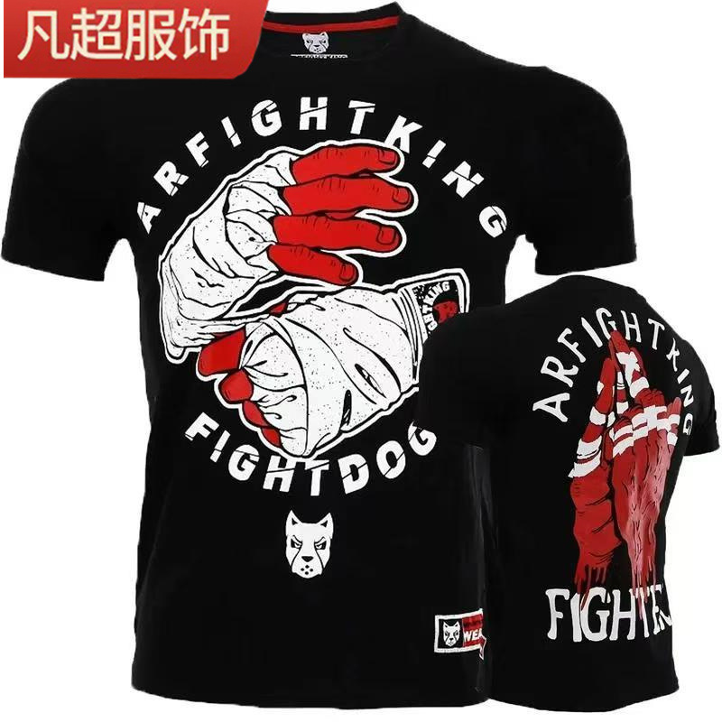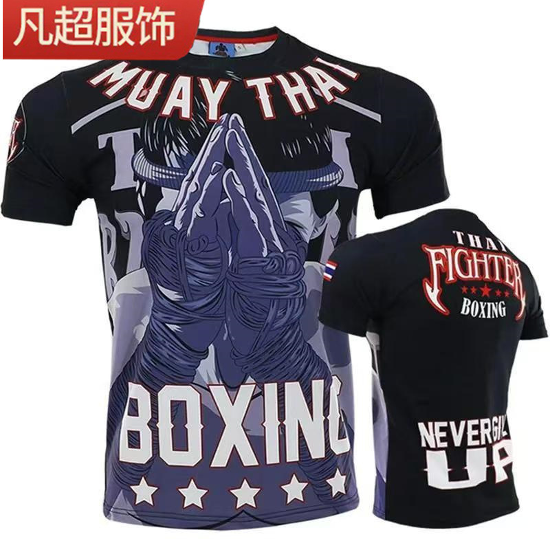 拳击摔跤运动T恤男夏季3d印花图案短袖健身上衣休闲圆领速干透气