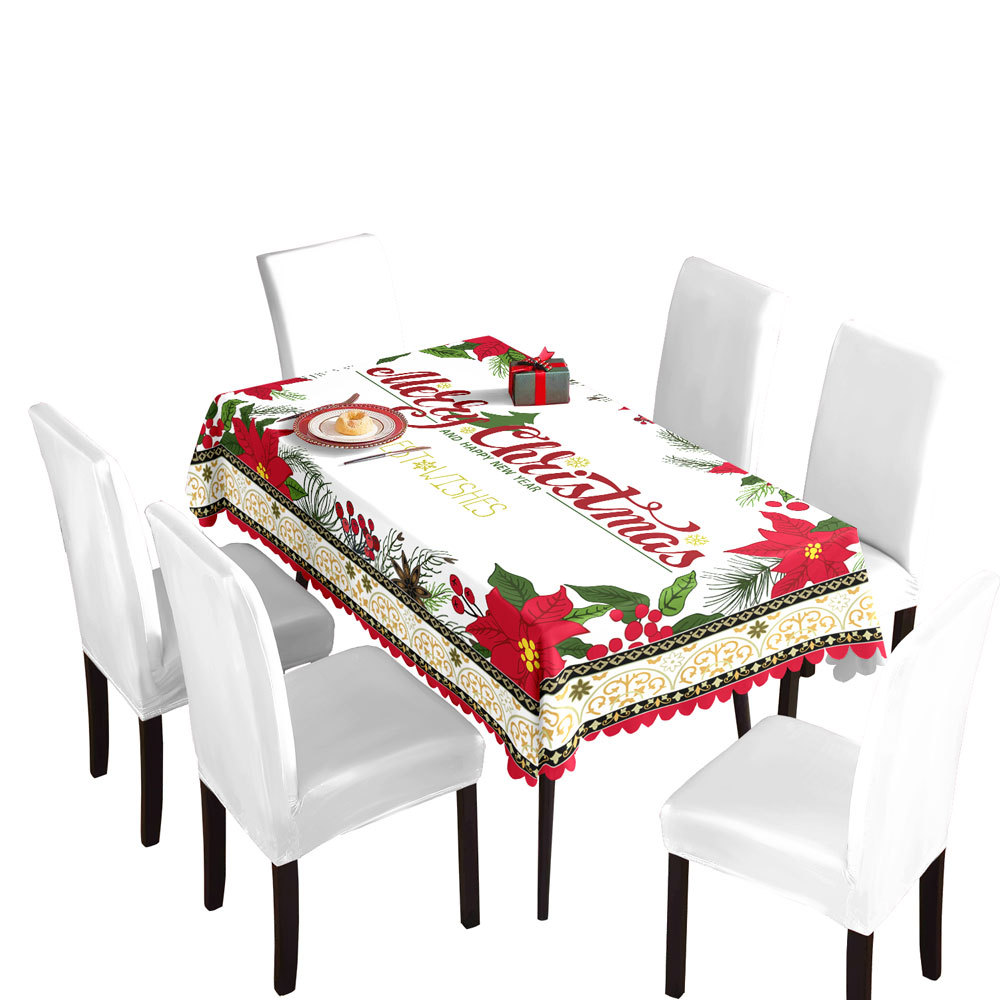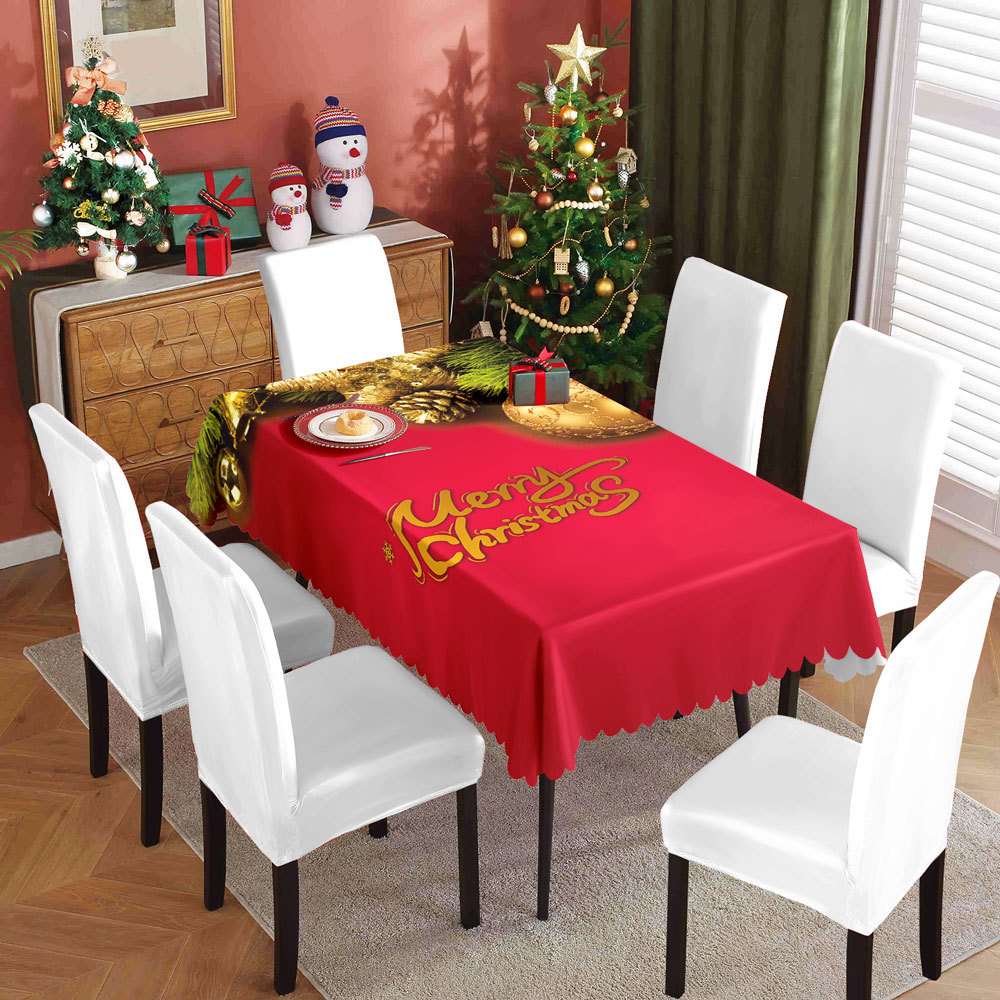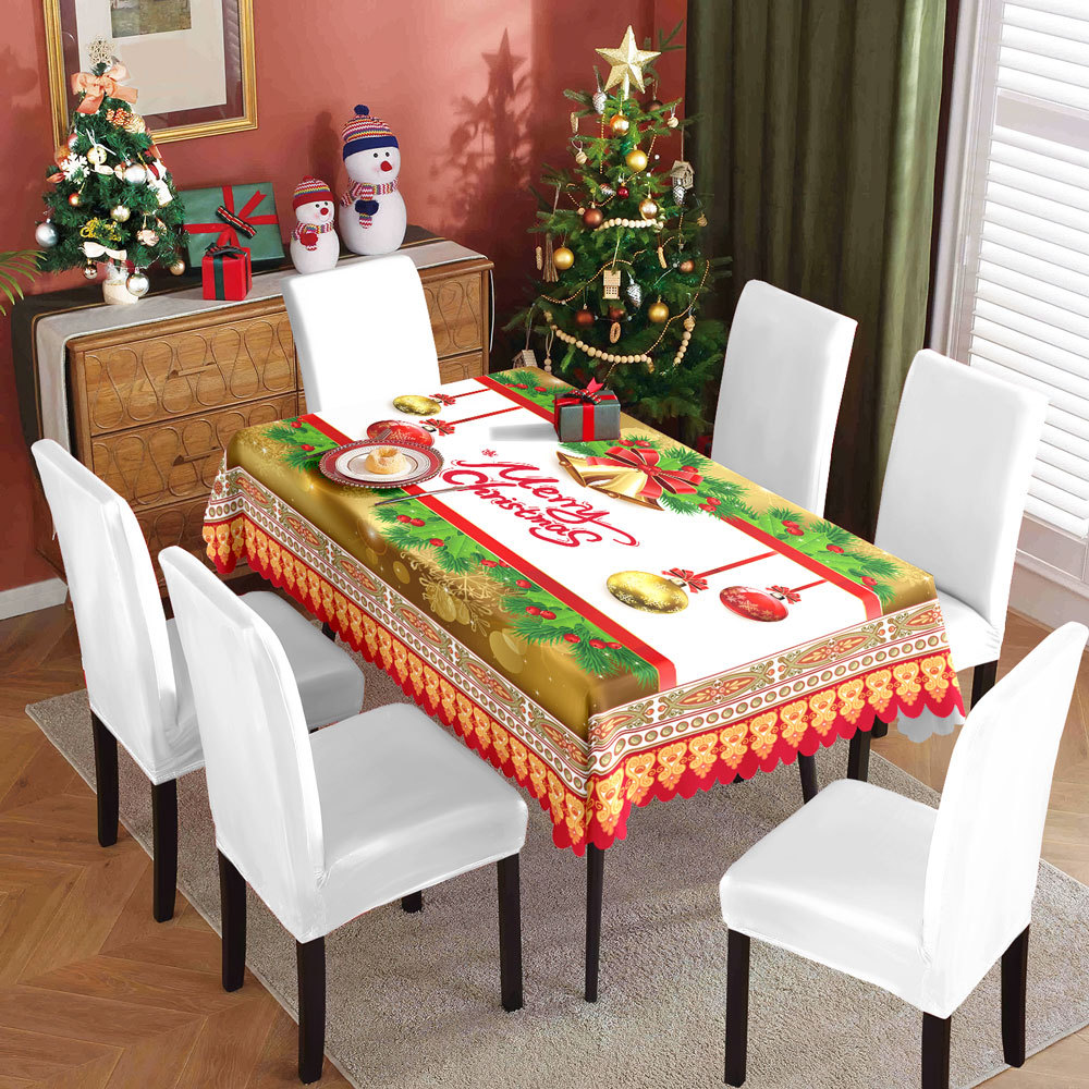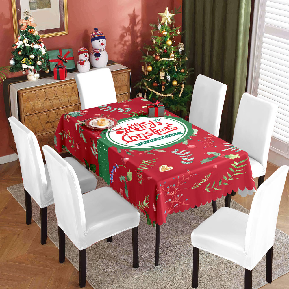 新款圣诞节桌布防水防油喜庆装饰印花涤纶茶几餐桌布节日桌布