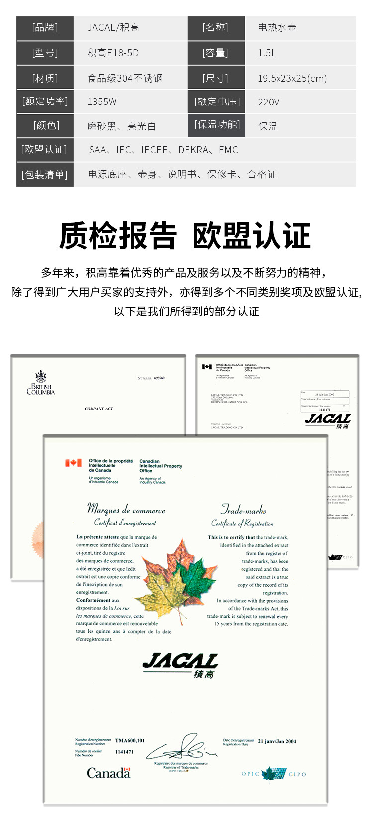 积高E18-5D长嘴控温泡茶壶智能调温电热水壶茶艺壶家用电茶壶保温