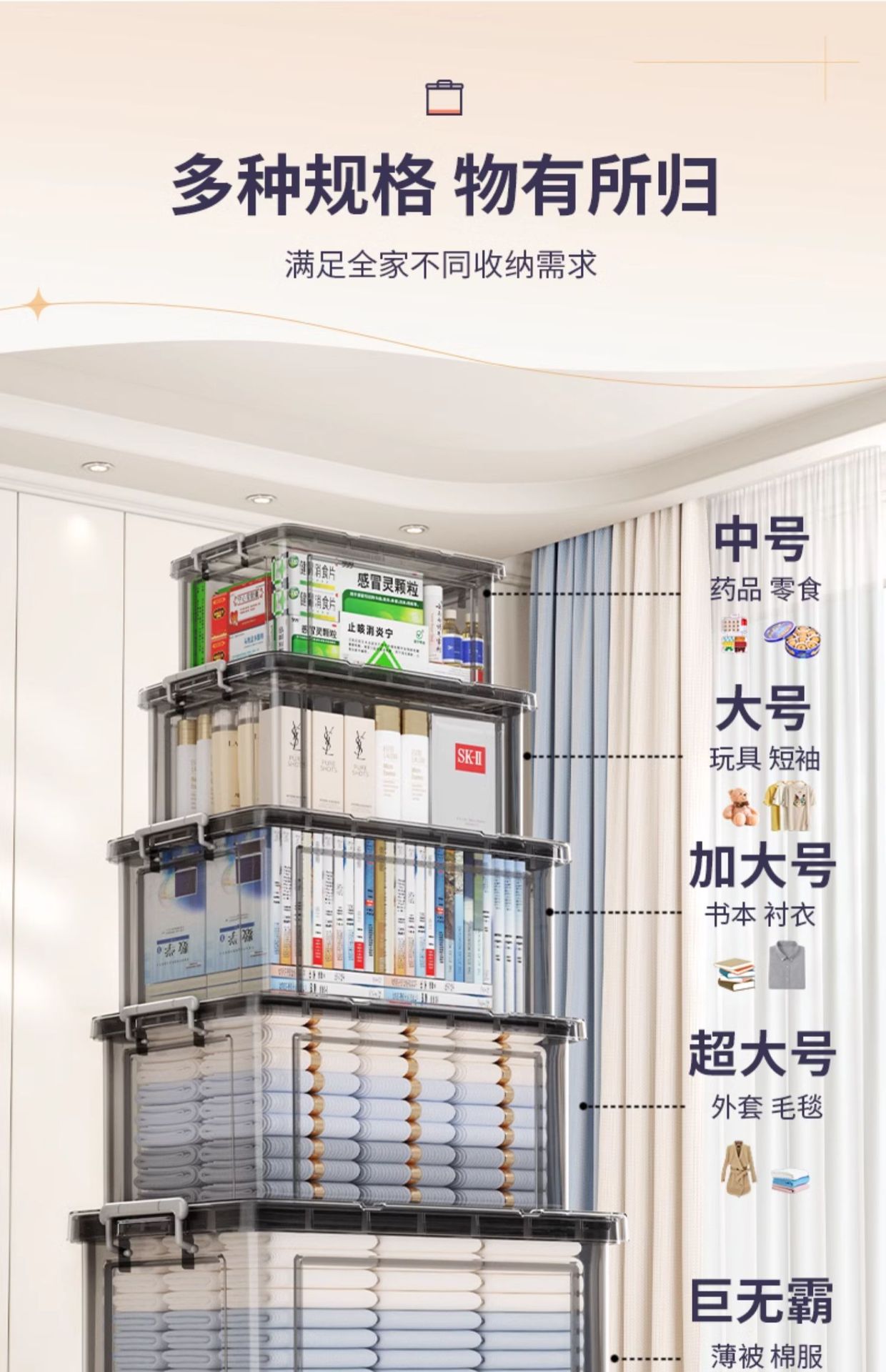 透明收纳箱家用塑料收纳盒衣服玩具整理箱大容量零食后备储物箱子