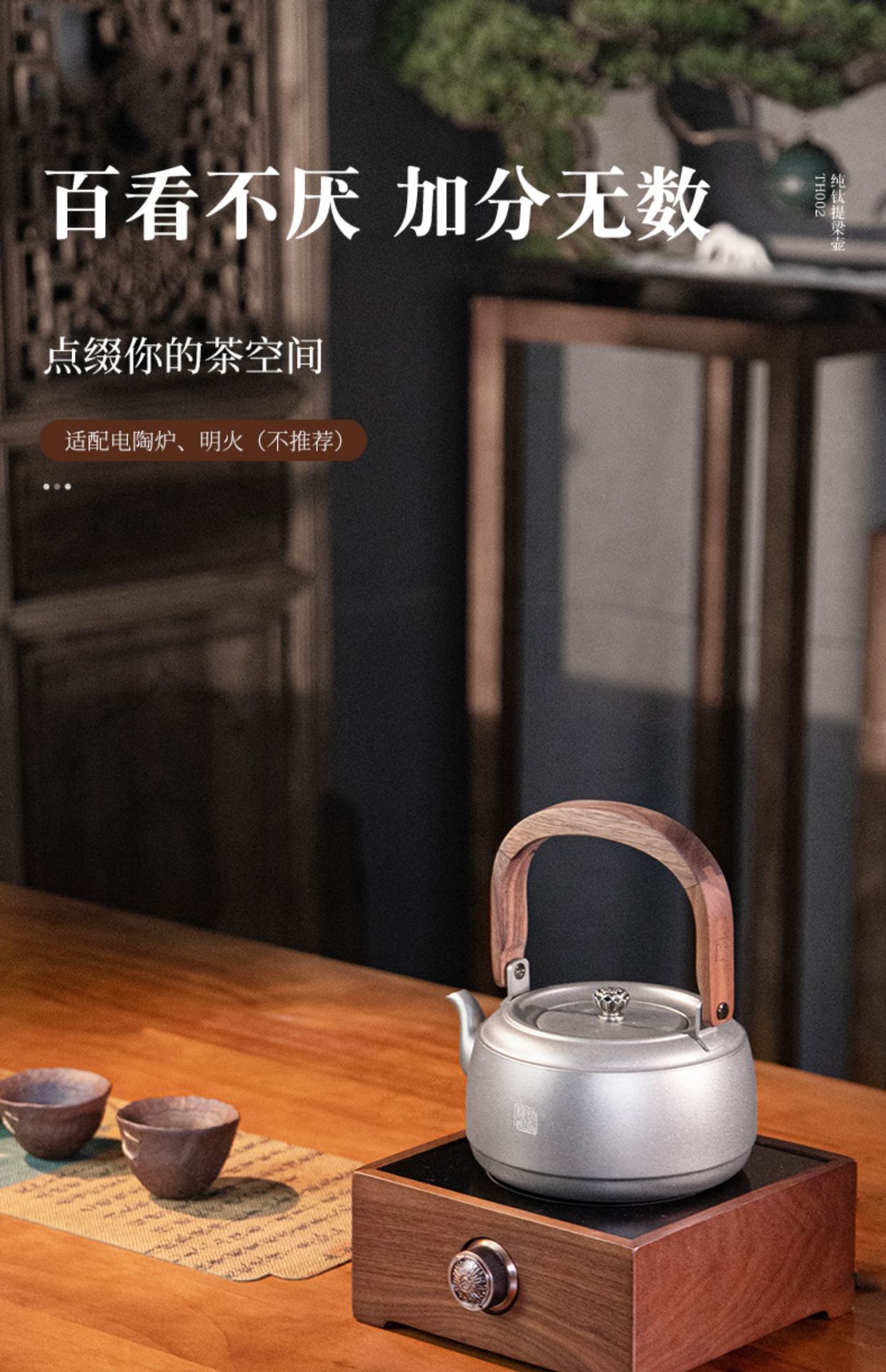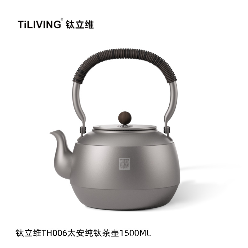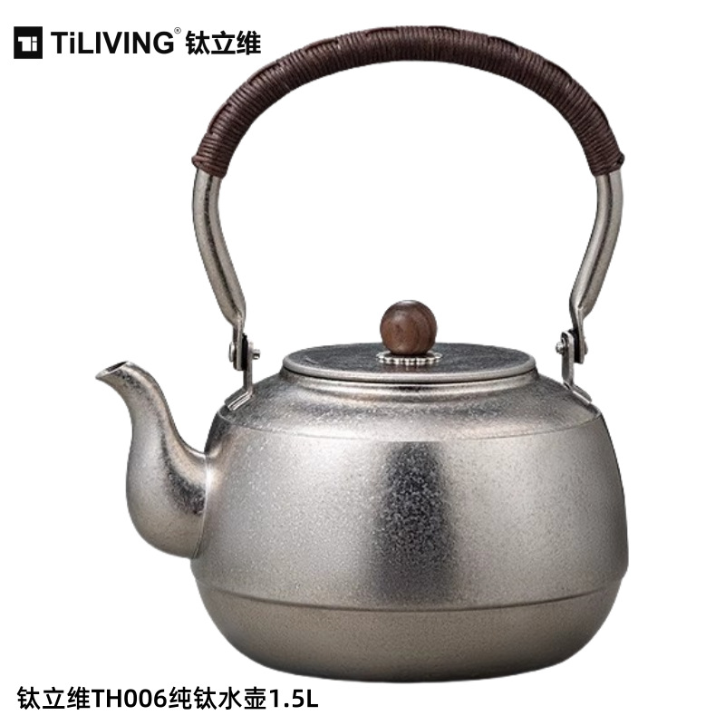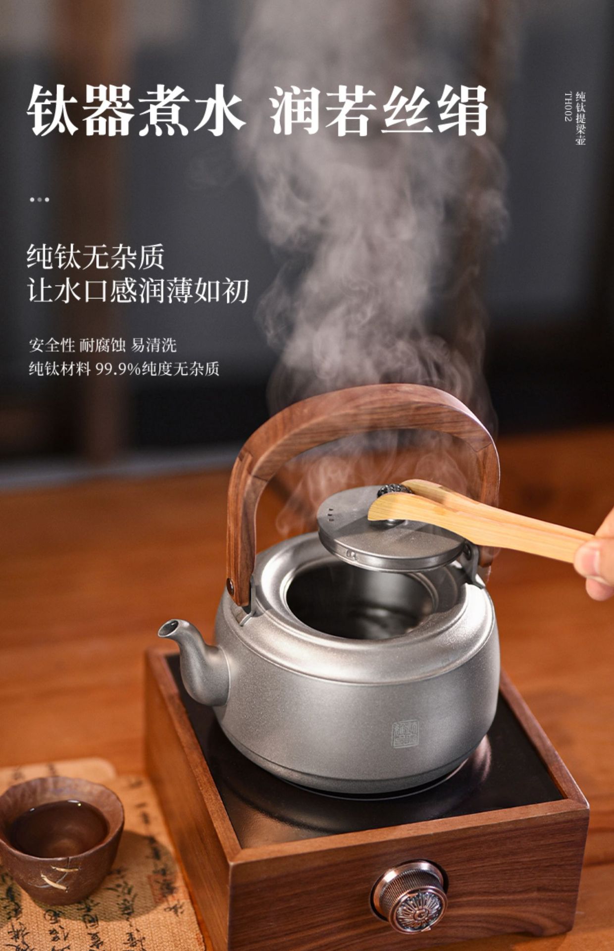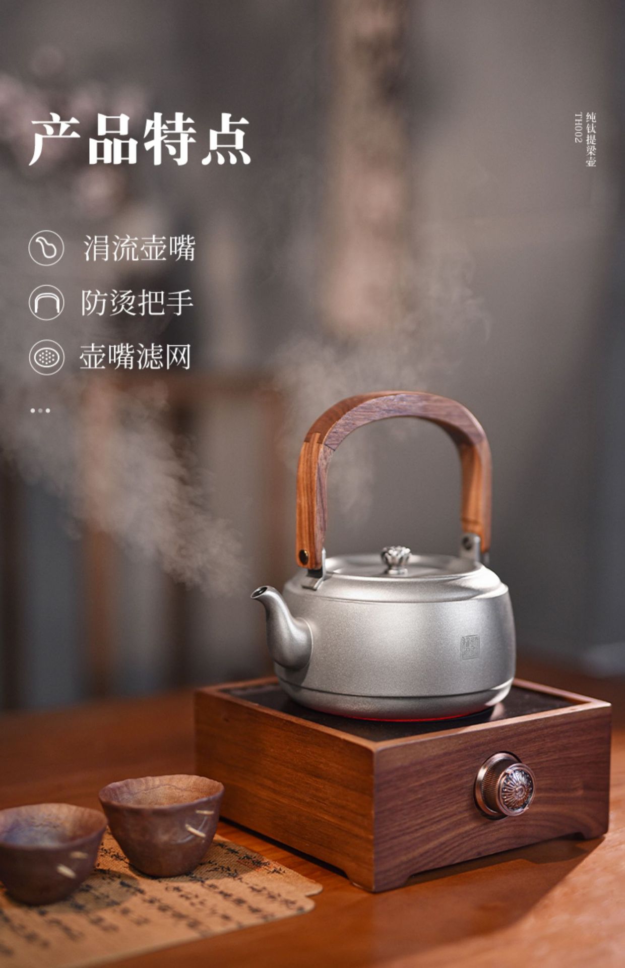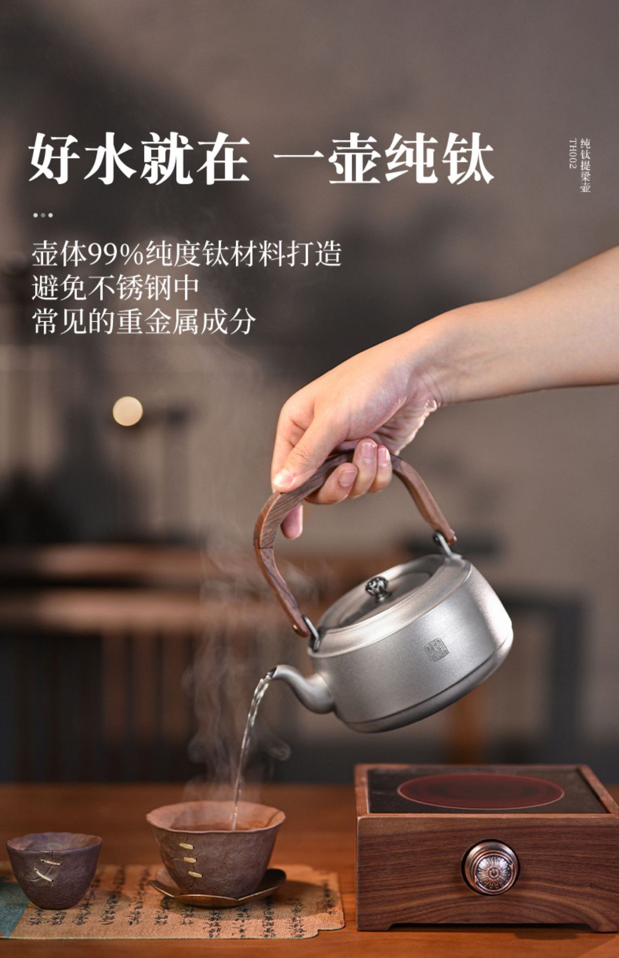 TILIVING钛立维纯钛提梁壶钛烧水壶黑胡桃木焖茶壶户外便携煮茶壶
