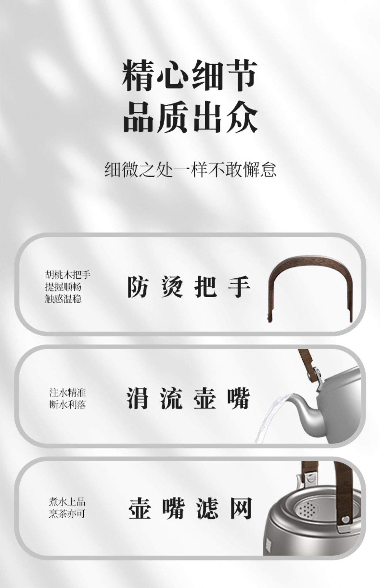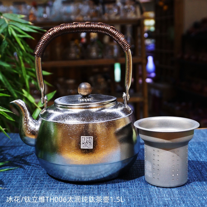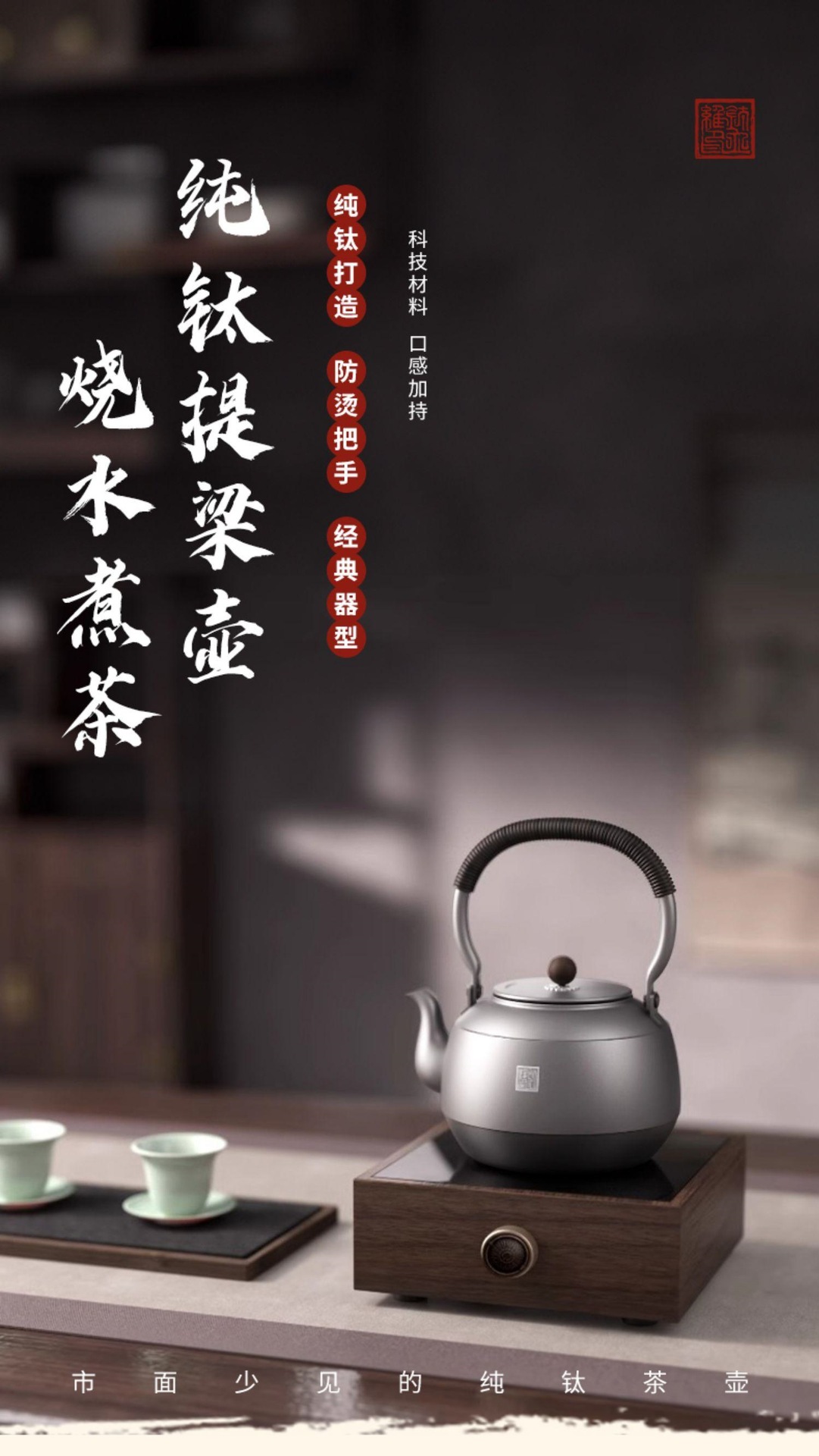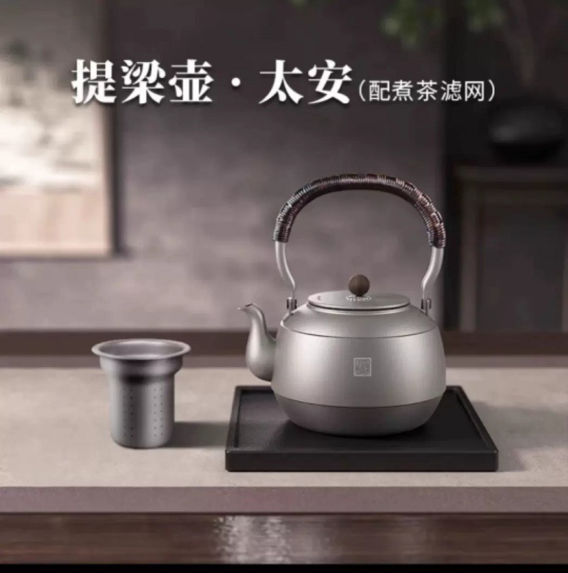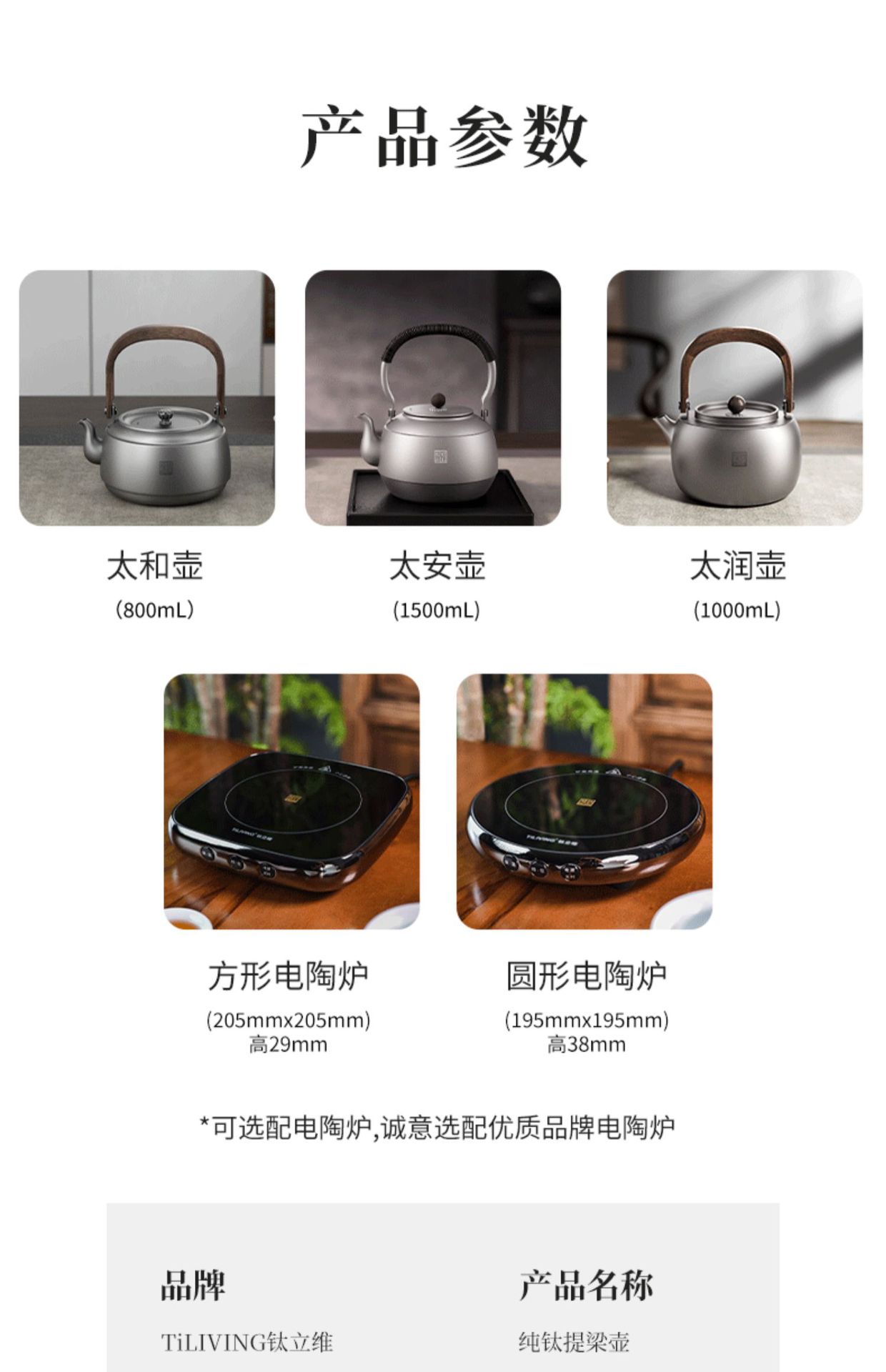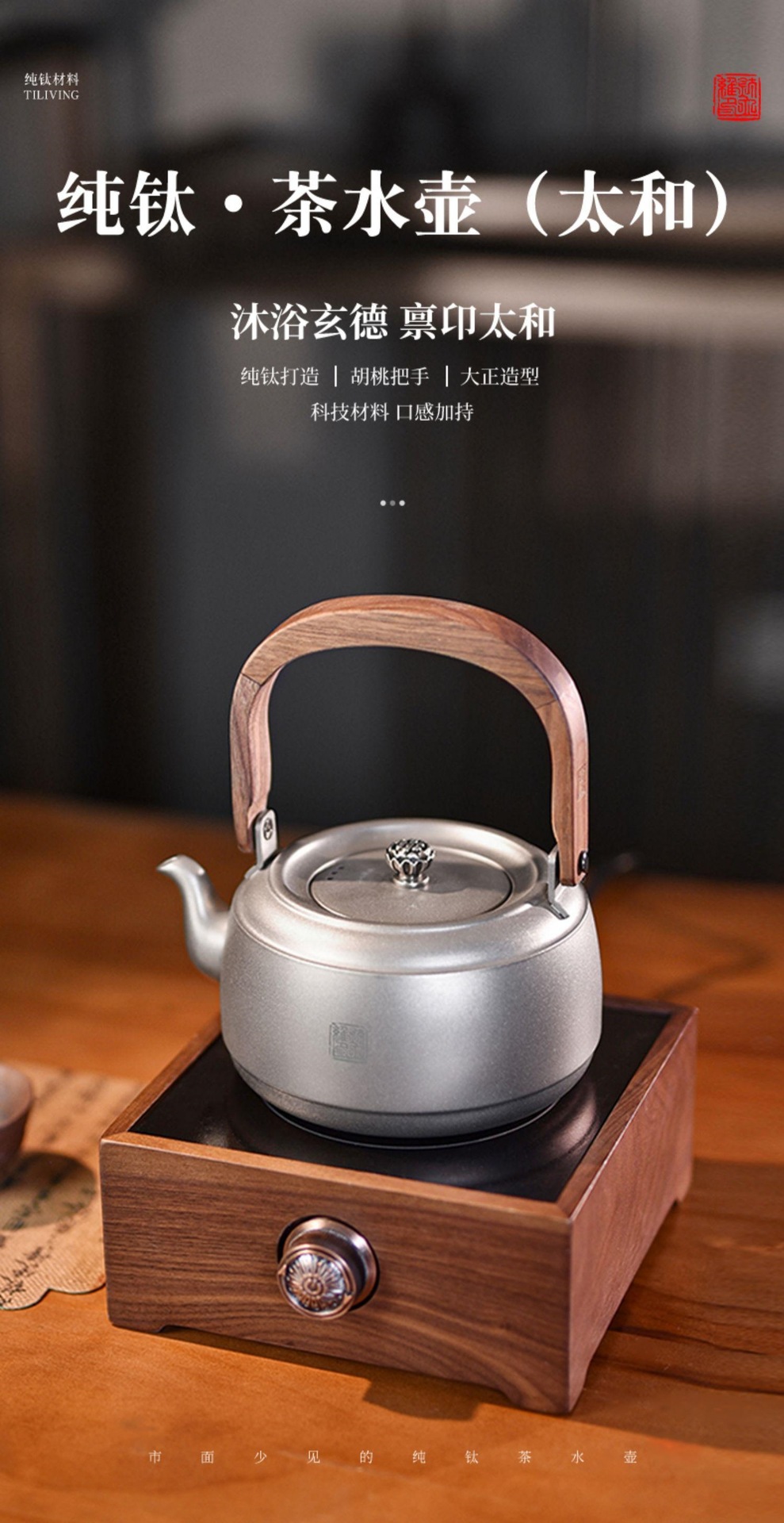 TILIVING钛立维纯钛提梁壶钛烧水壶黑胡桃木焖茶壶户外便携煮茶壶