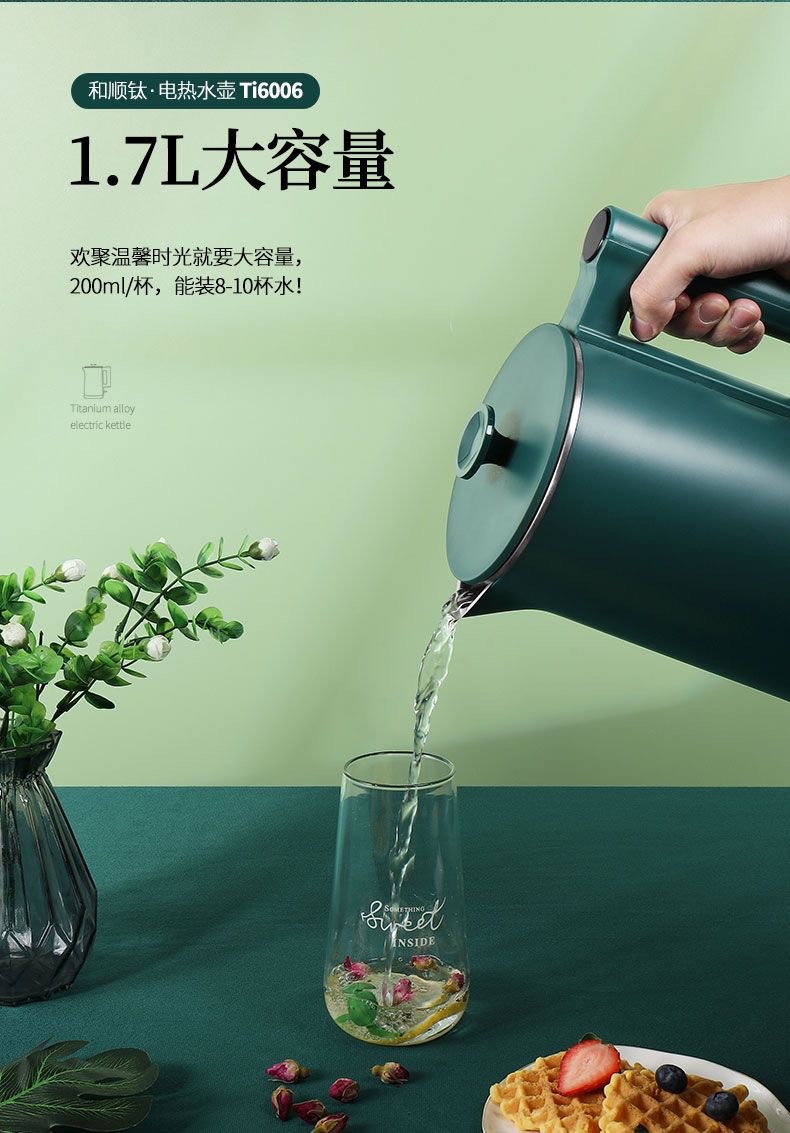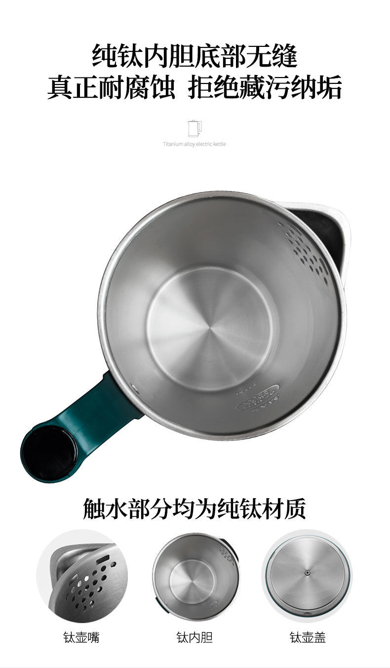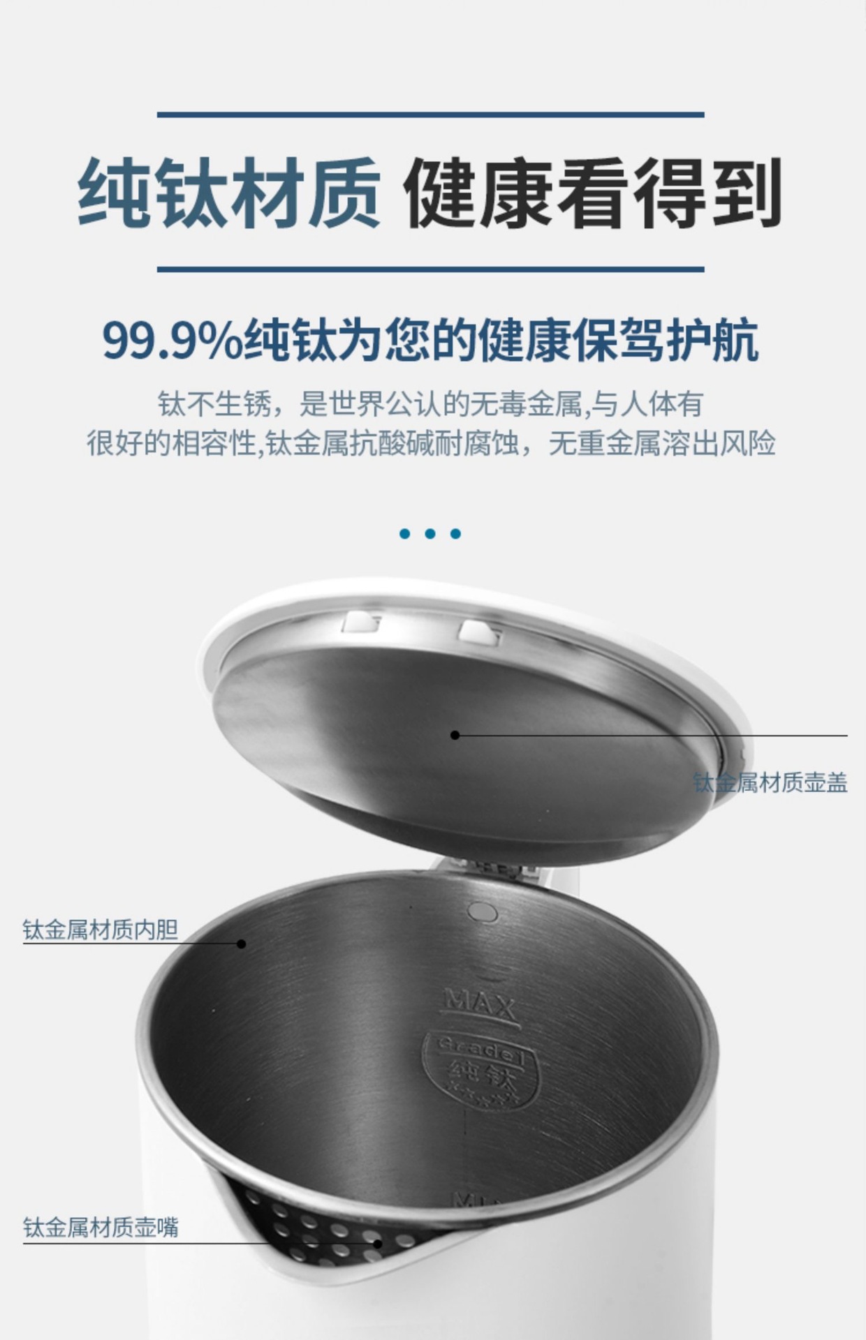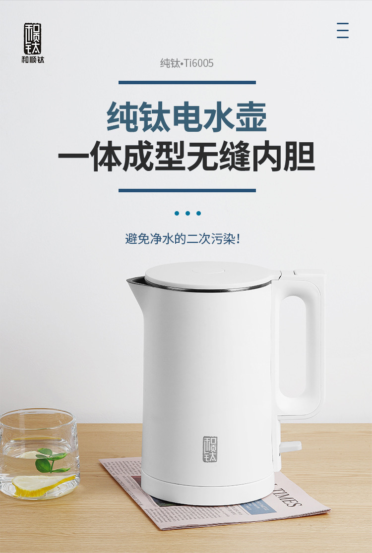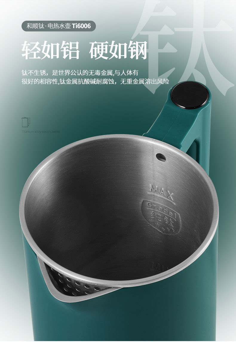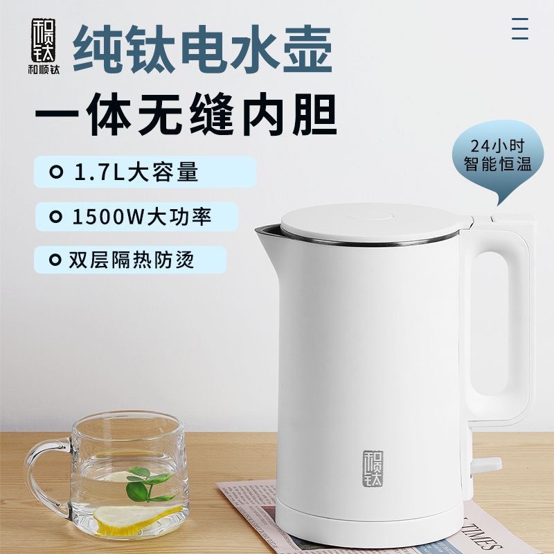 和顺钛纯钛家用电水壶保温烧水自动断电大容量底盘加热盖子可取Ti