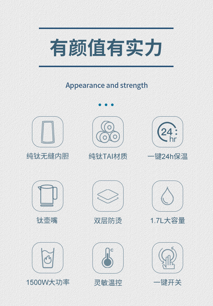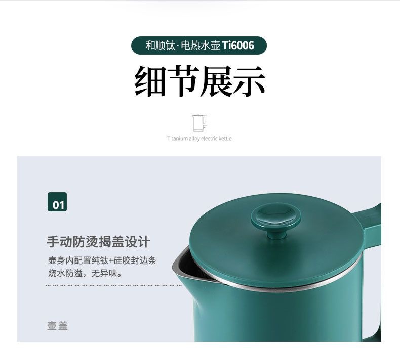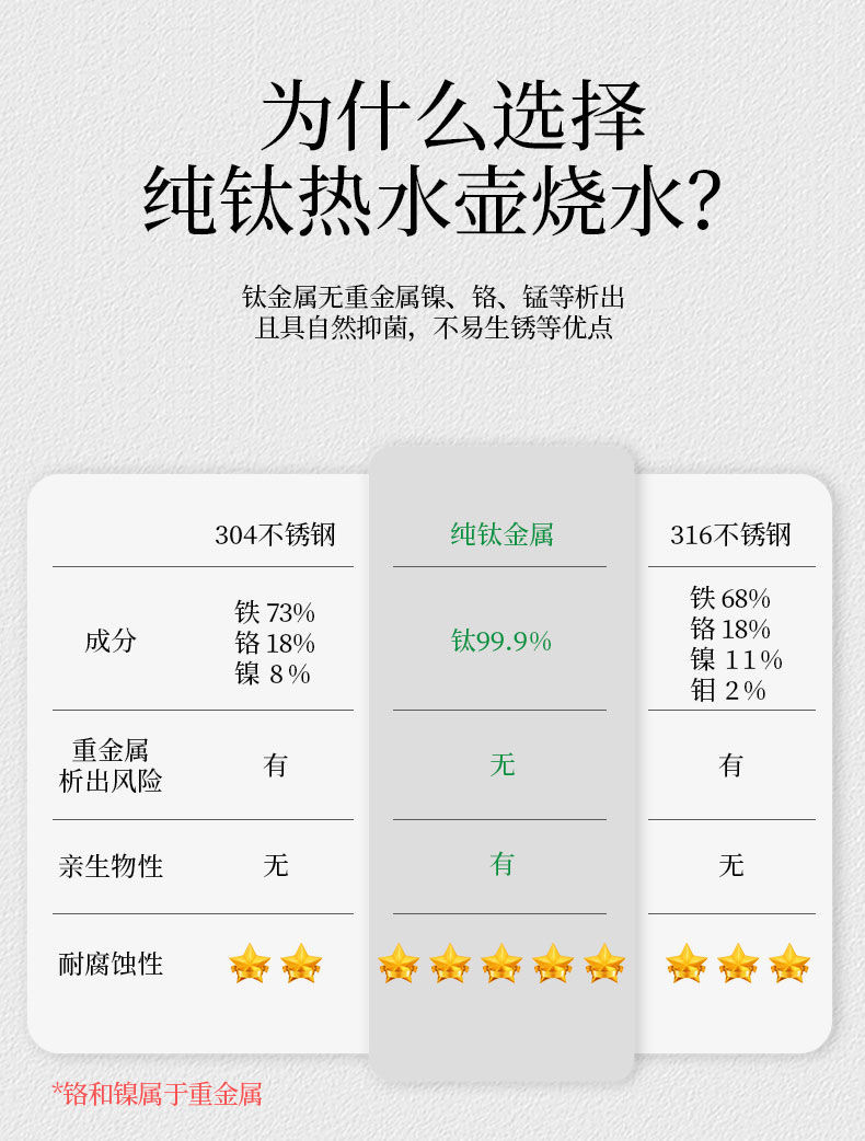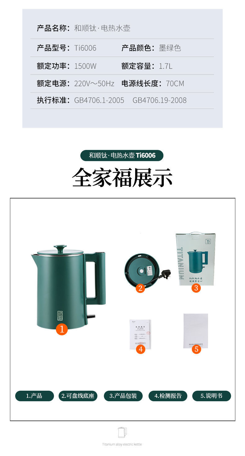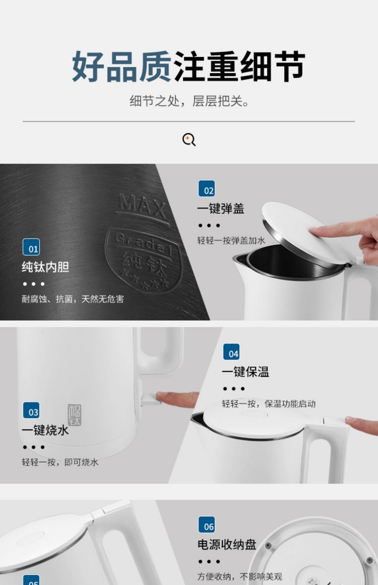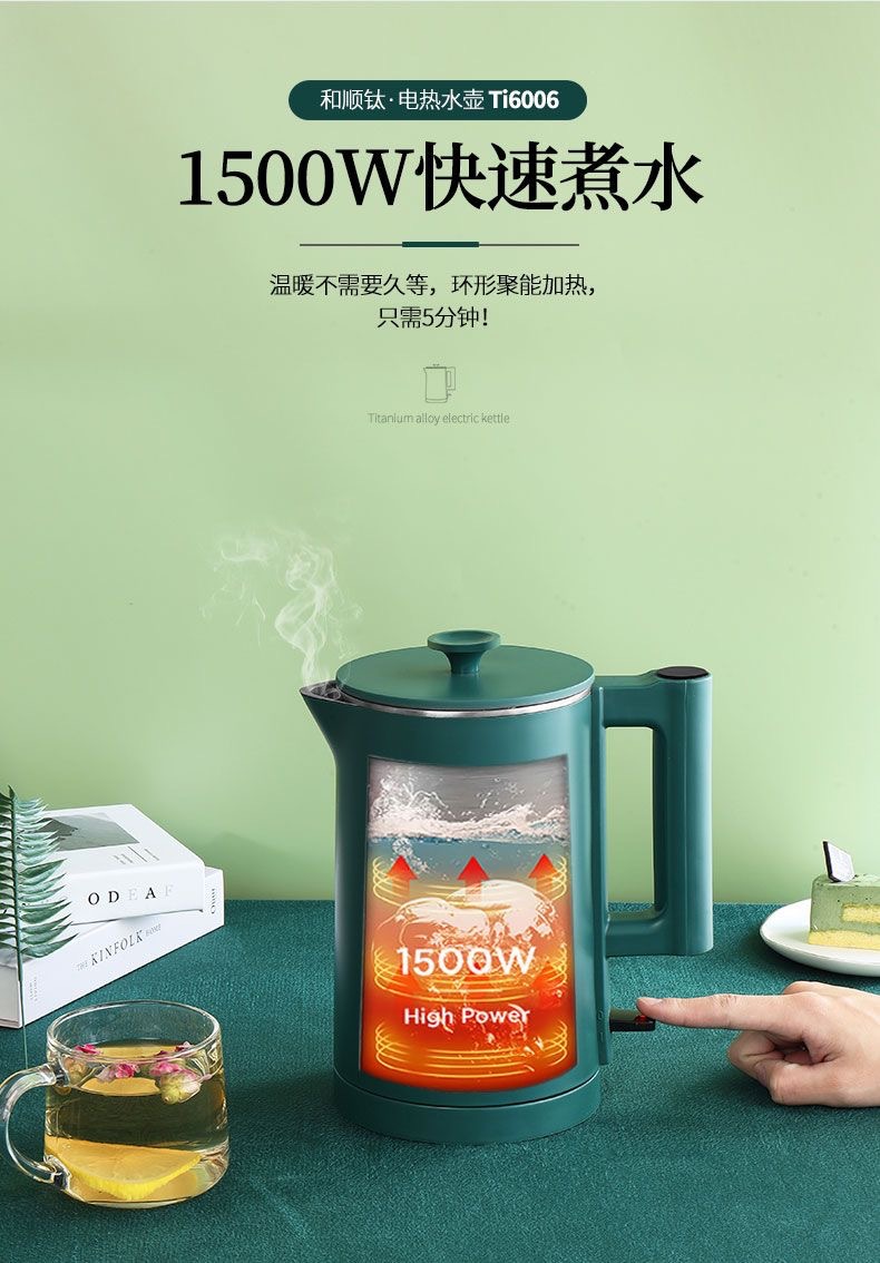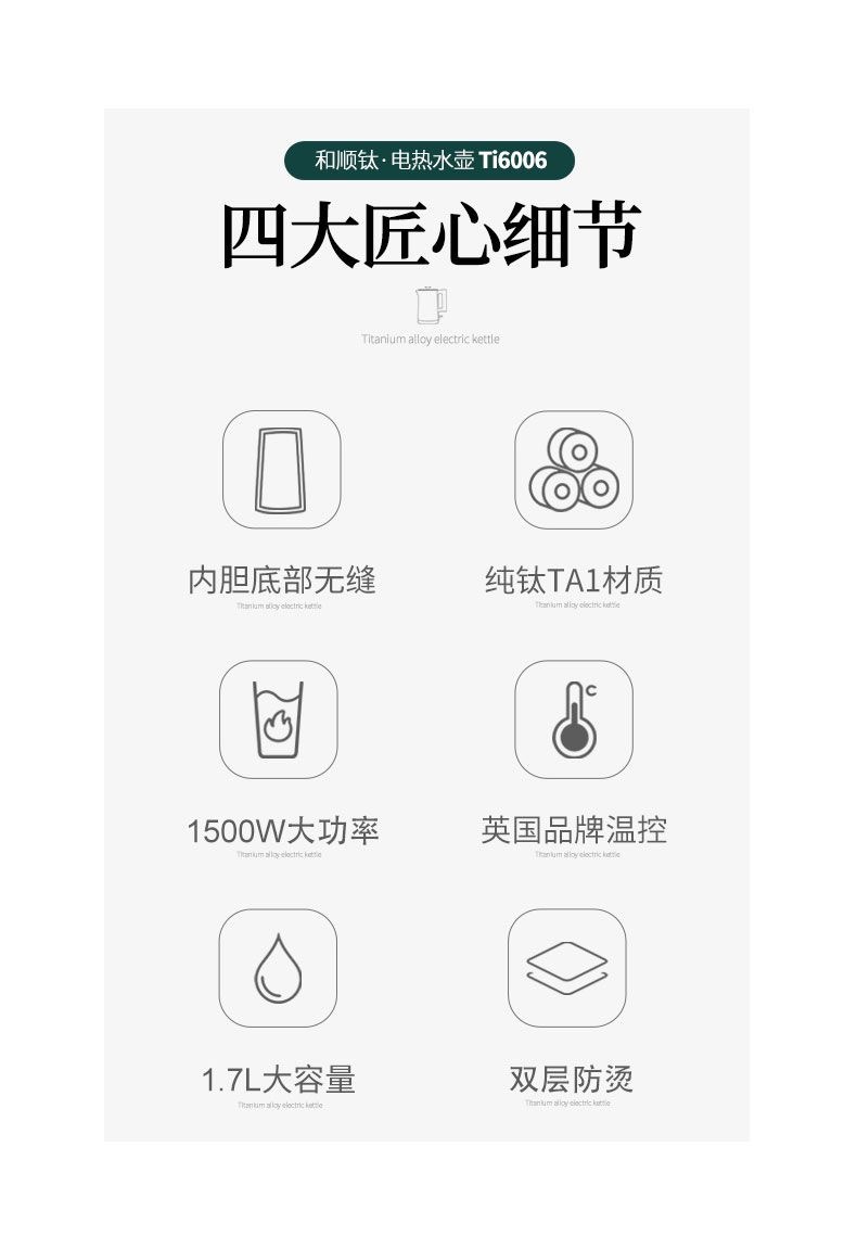 和顺钛纯钛家用电水壶保温烧水自动断电大容量底盘加热盖子可取Ti