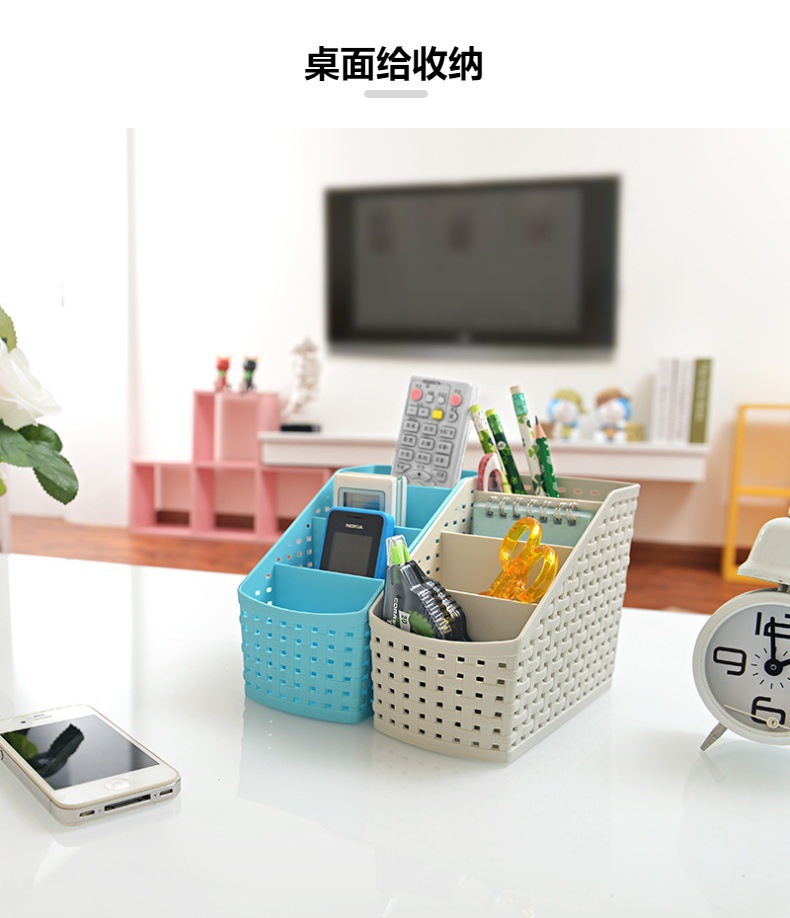 桌面办公塑料文具杂物收纳盒子多功能笔筒高颜值斜放式分格收纳盒