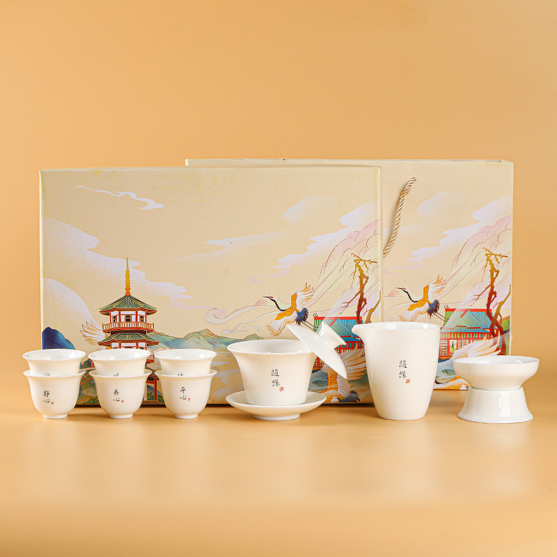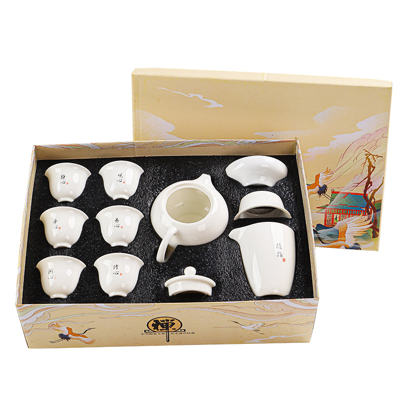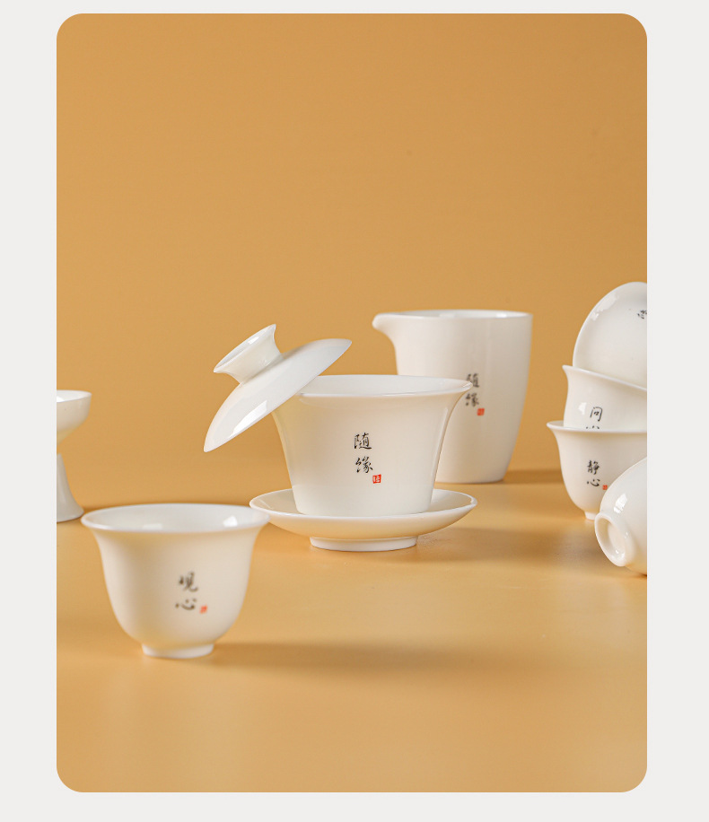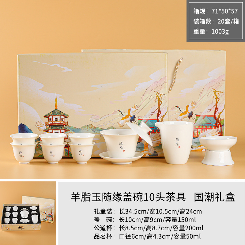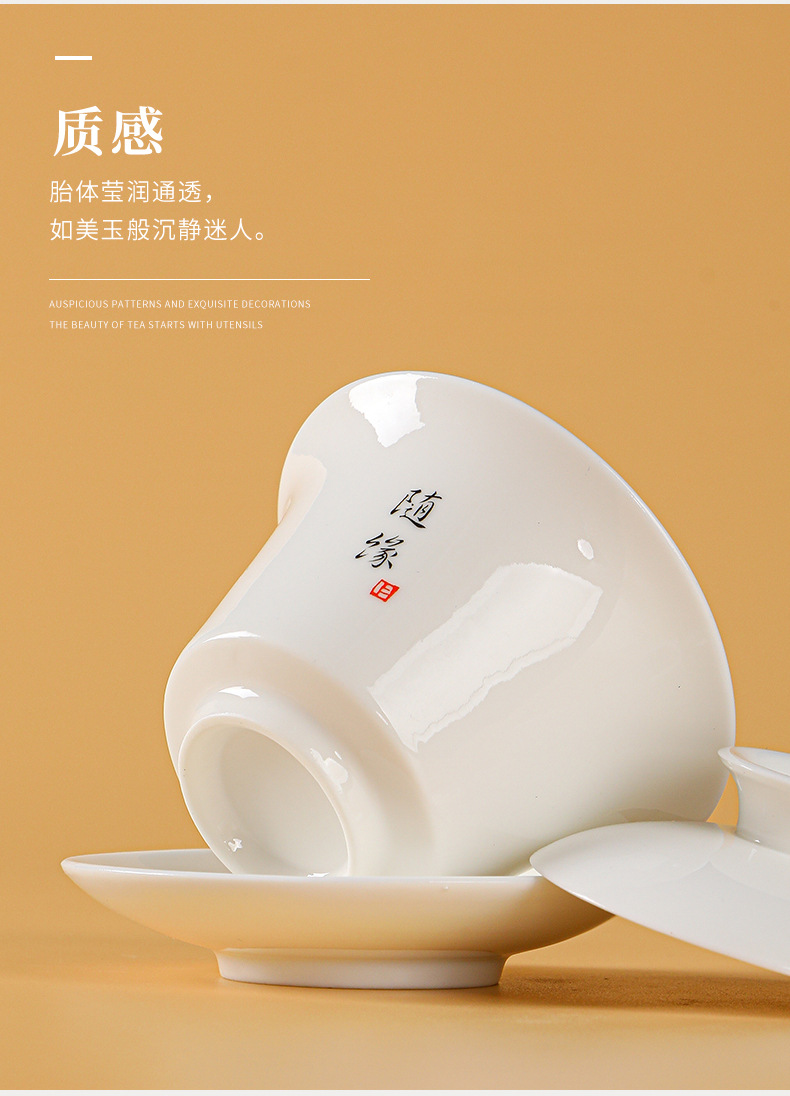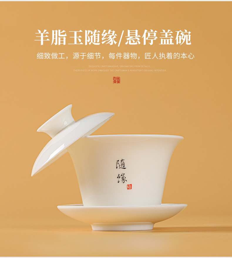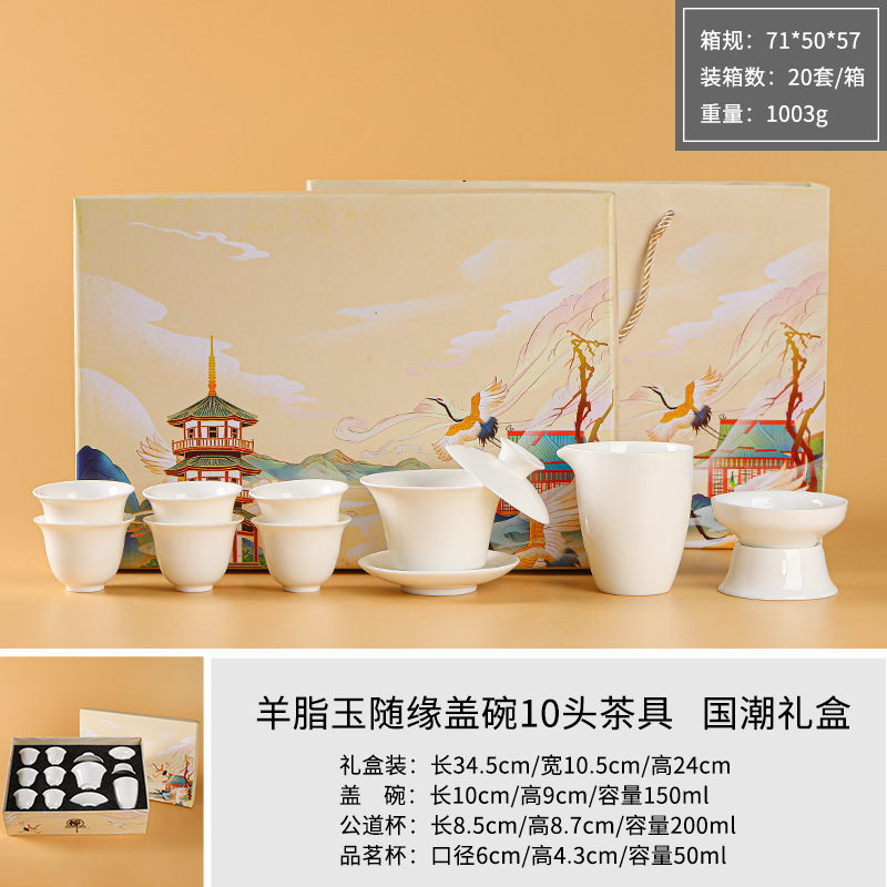 羊脂玉白瓷盖碗茶壶茶具套装办公家用陶瓷茶具套装活动茶具礼品