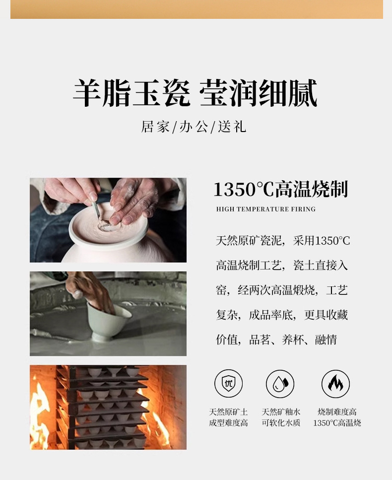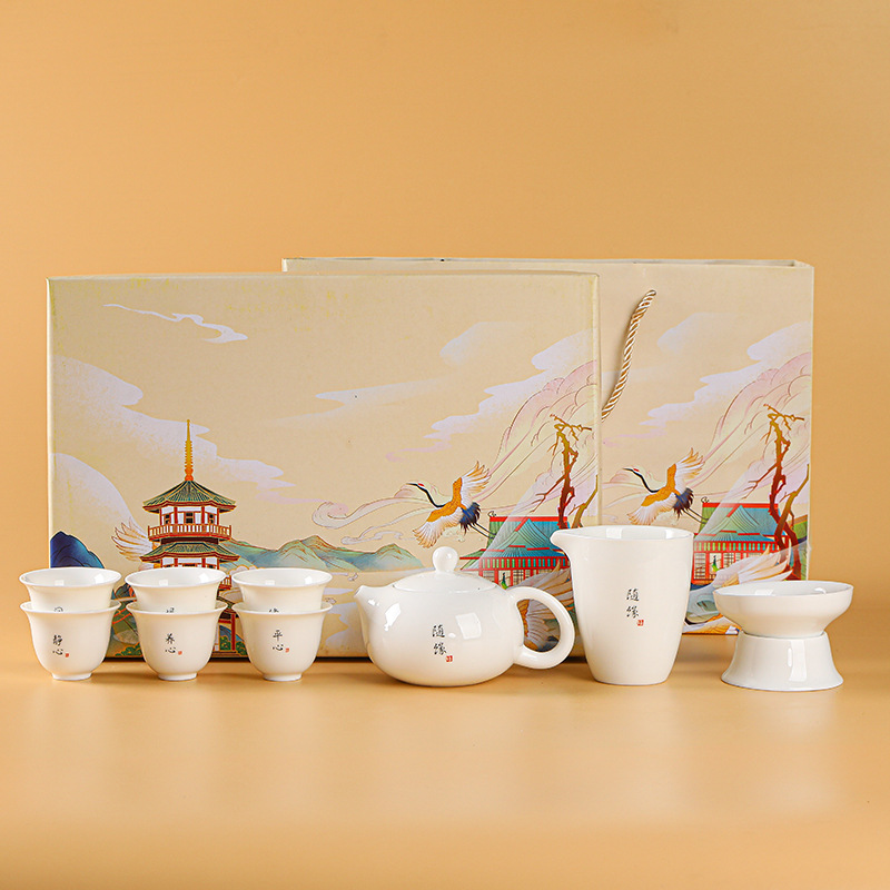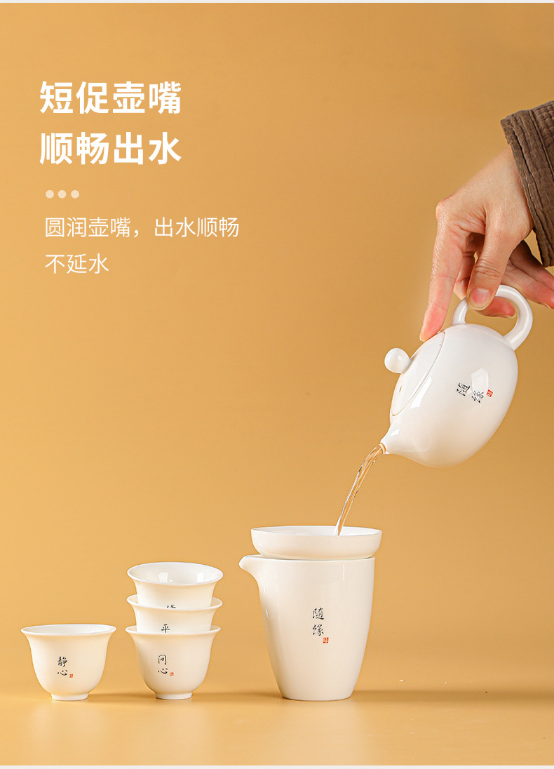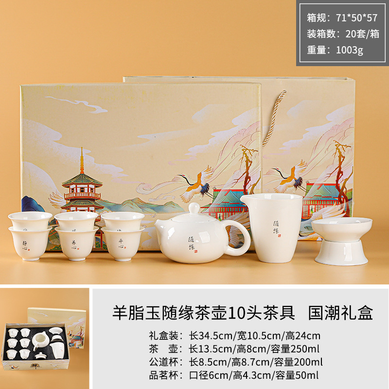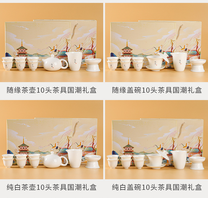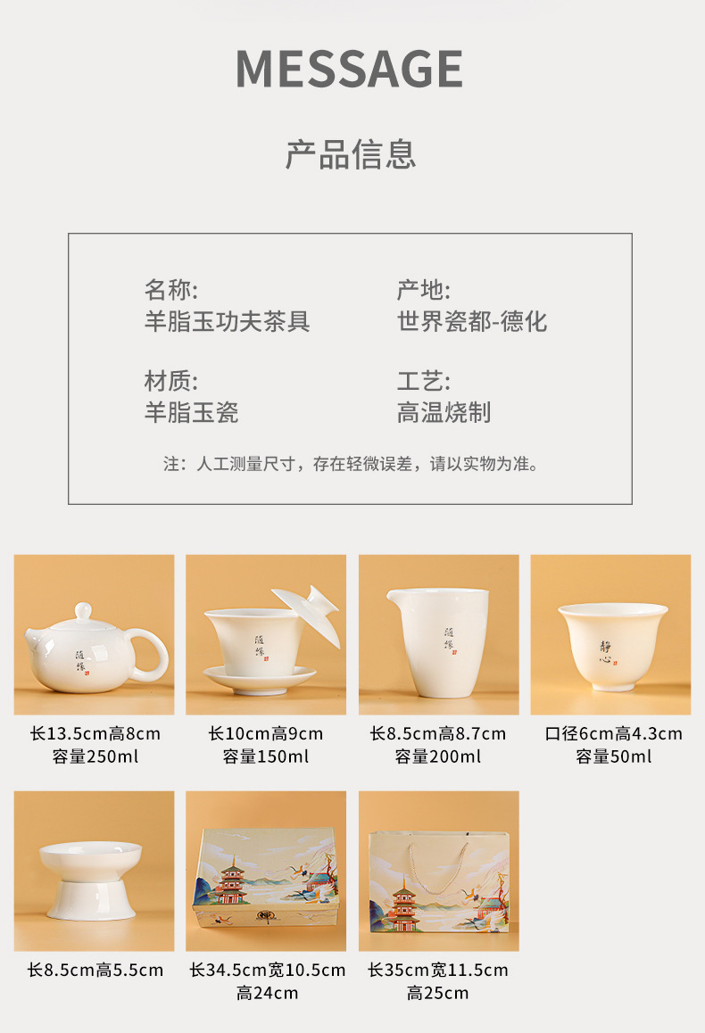 羊脂玉白瓷盖碗茶壶茶具套装办公家用陶瓷茶具套装活动茶具礼品