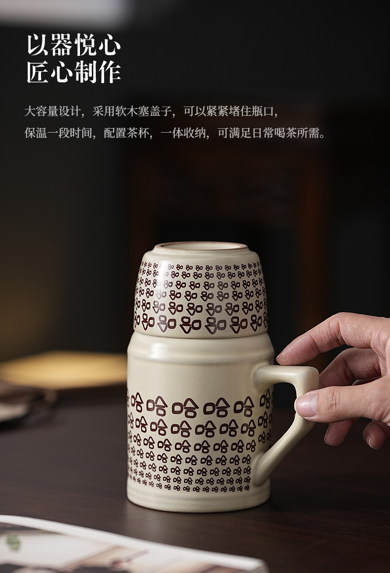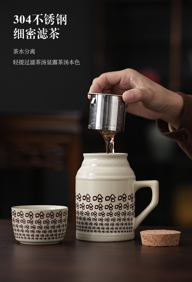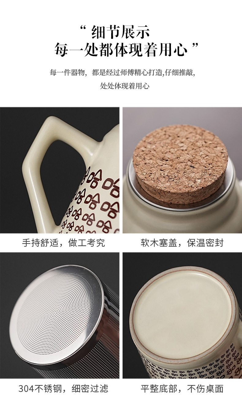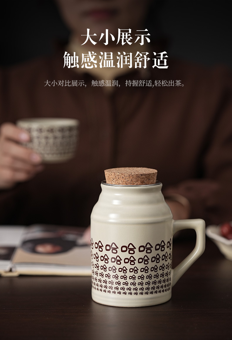 汝窑哈哈小暖壶礼盒装家用带盖过滤马克杯大容量陶瓷办公室泡茶壶