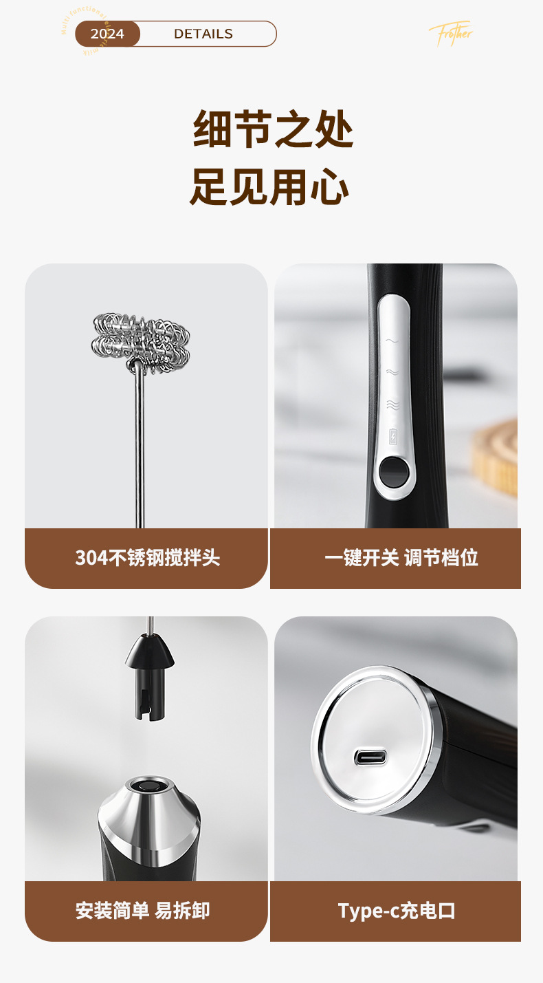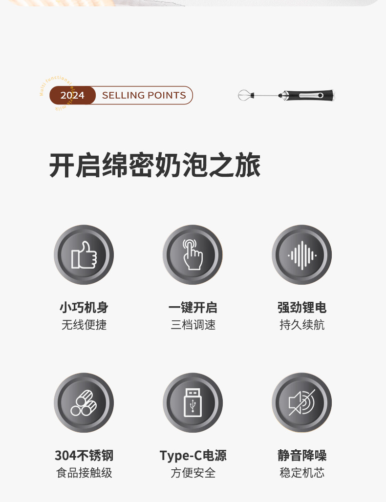 厂家批发无线电动打蛋器奶油咖啡打泡器蛋白粉搅拌器充电款奶泡器