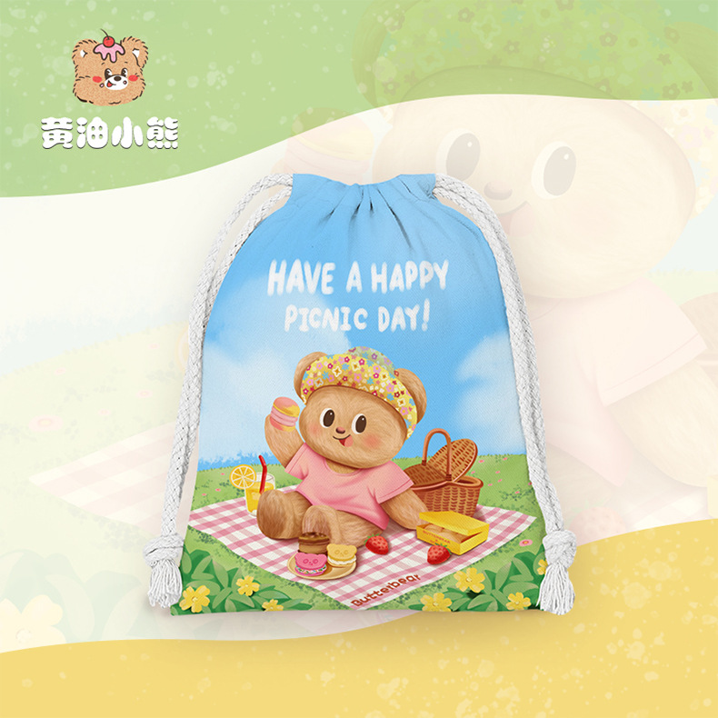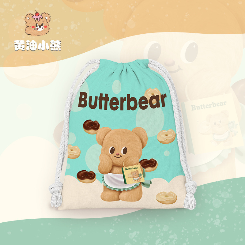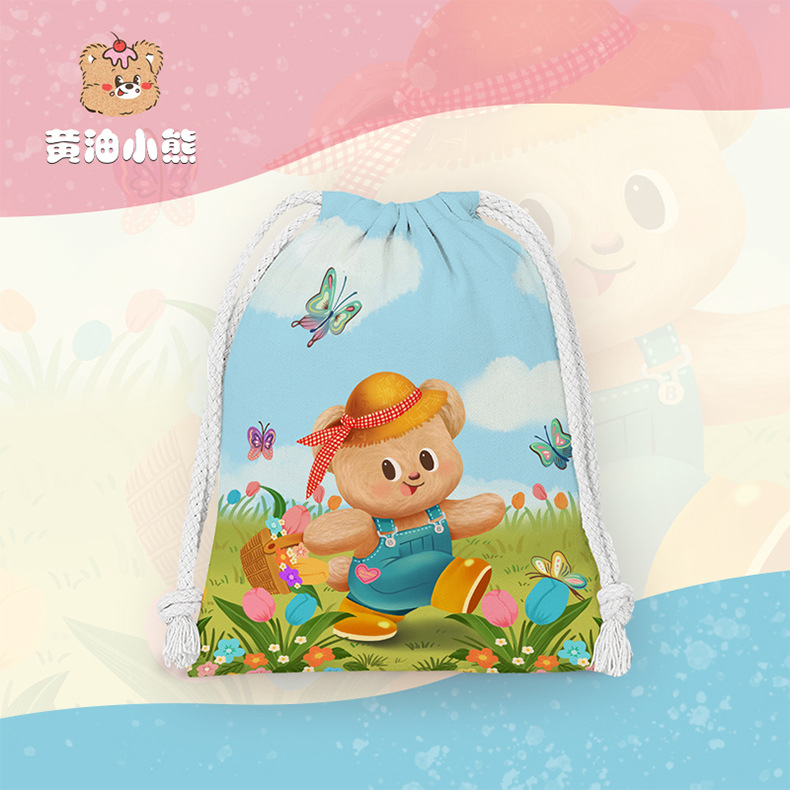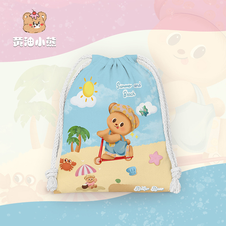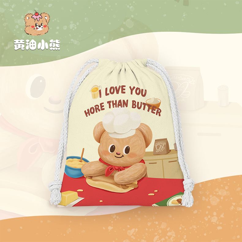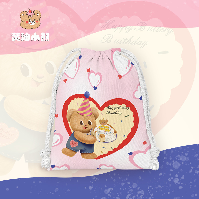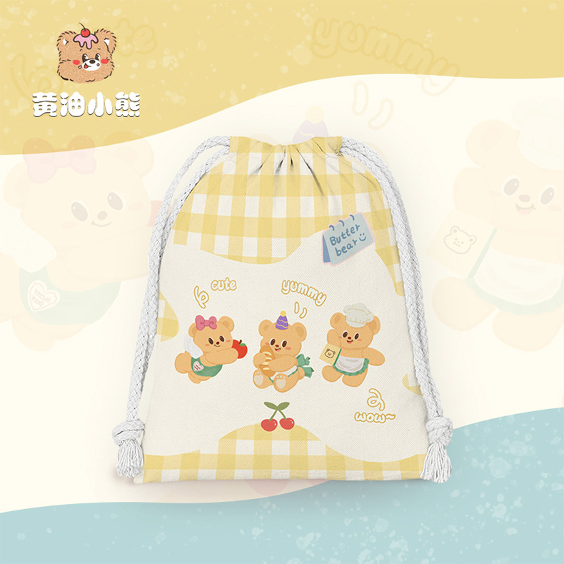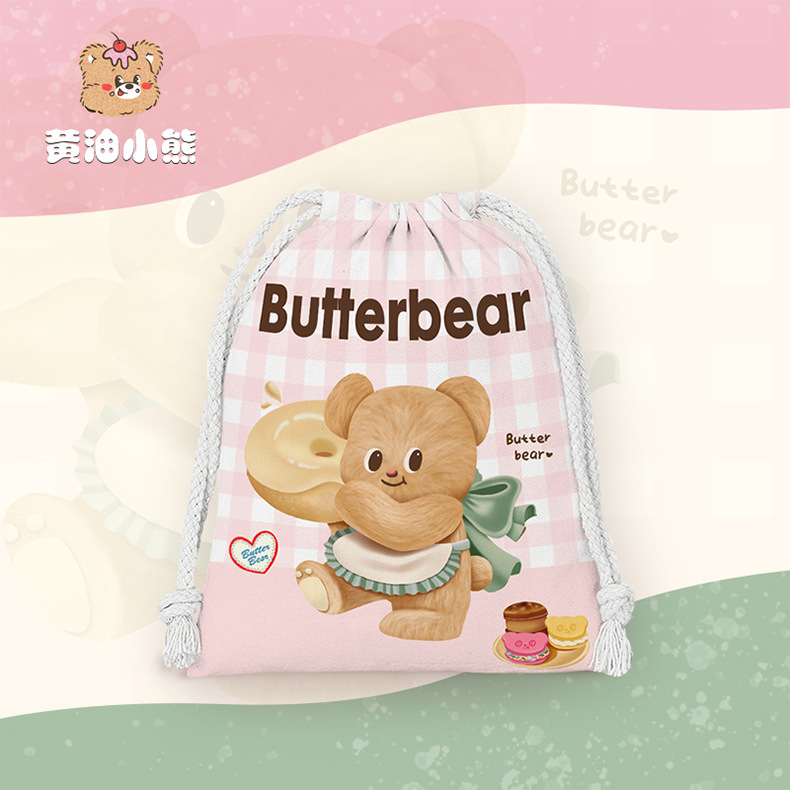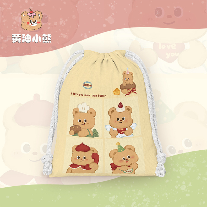 黄油小熊抽绳袋束口袋旅行杂物内衣玩具收纳袋卡通化妆袋便携收