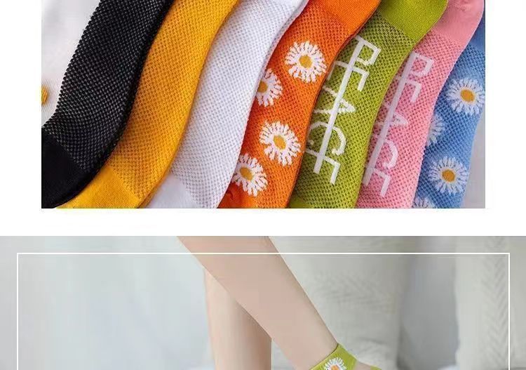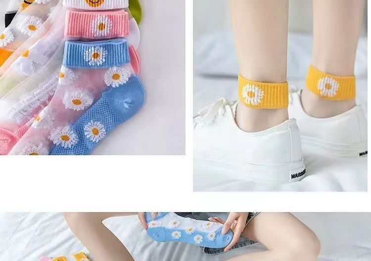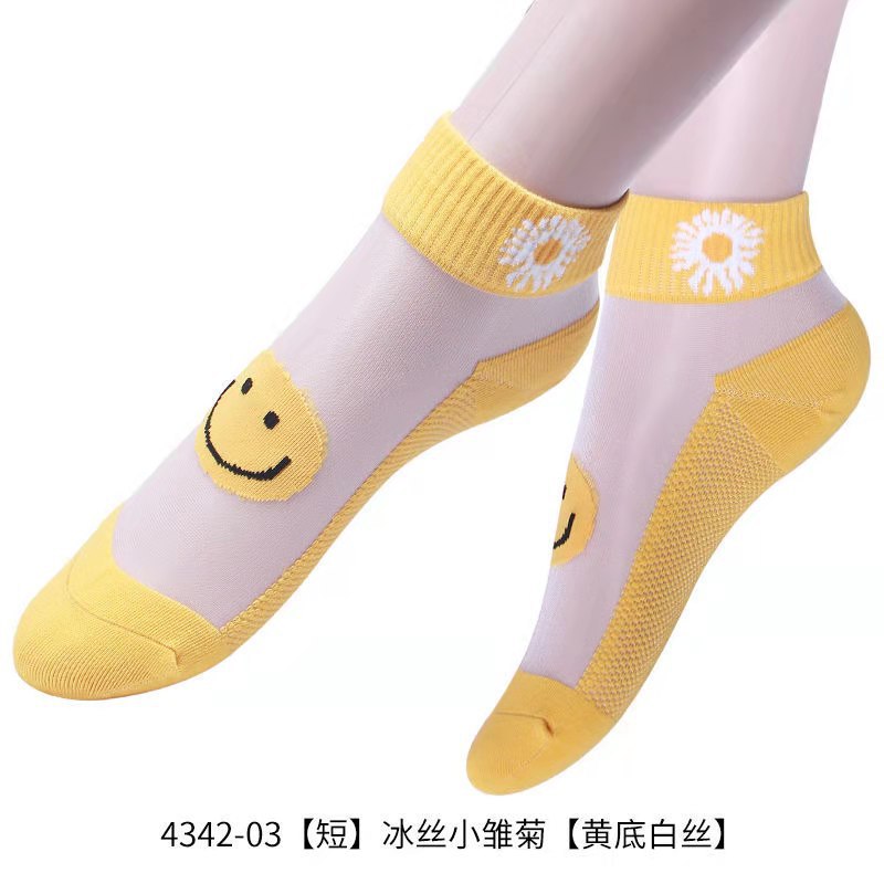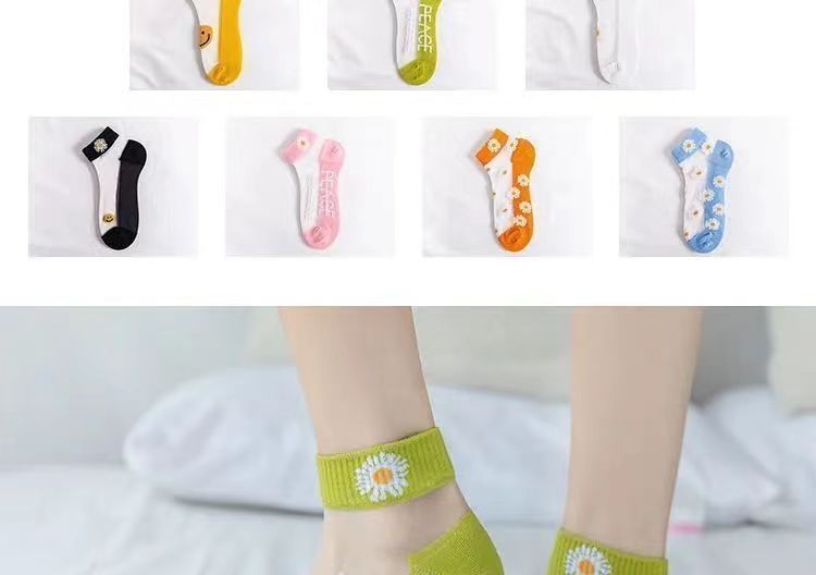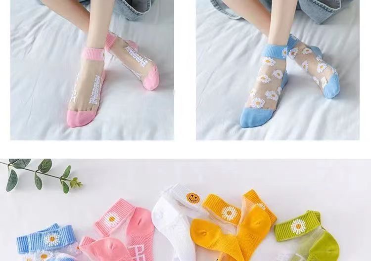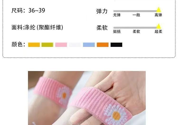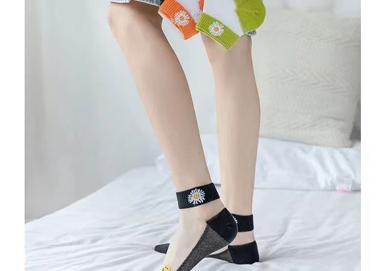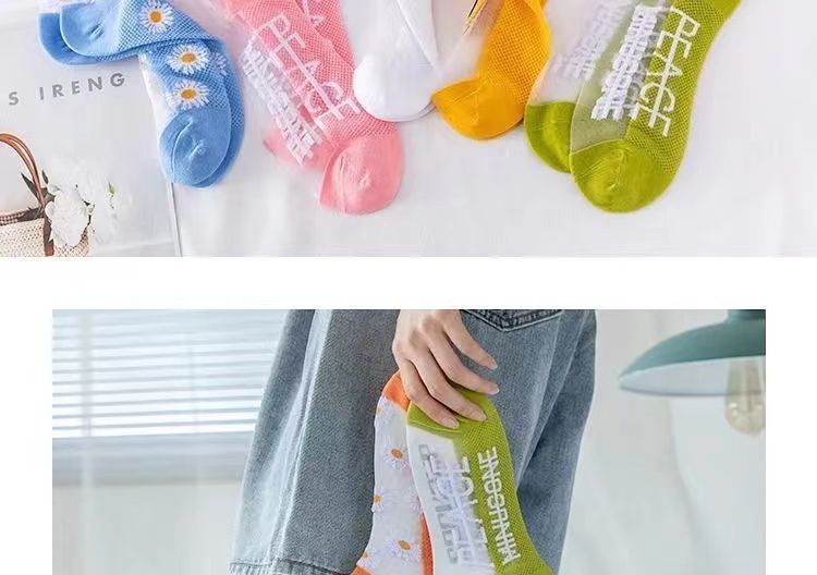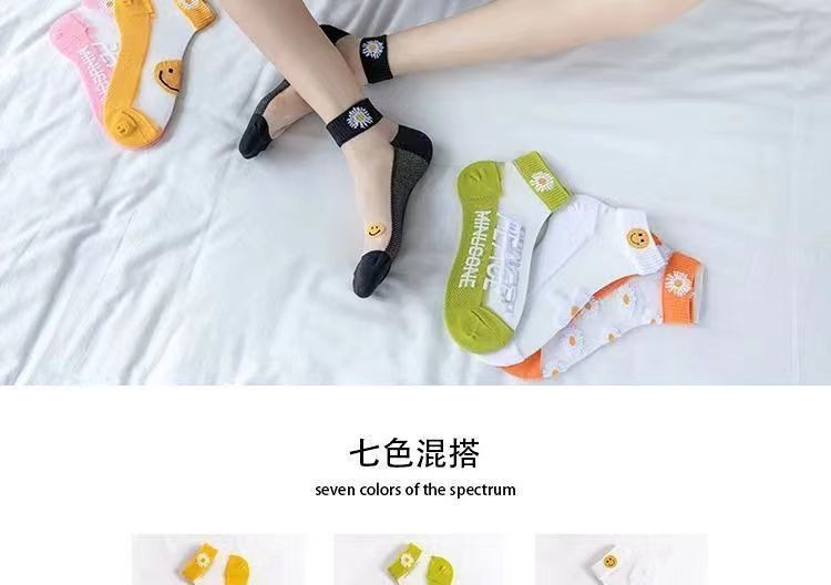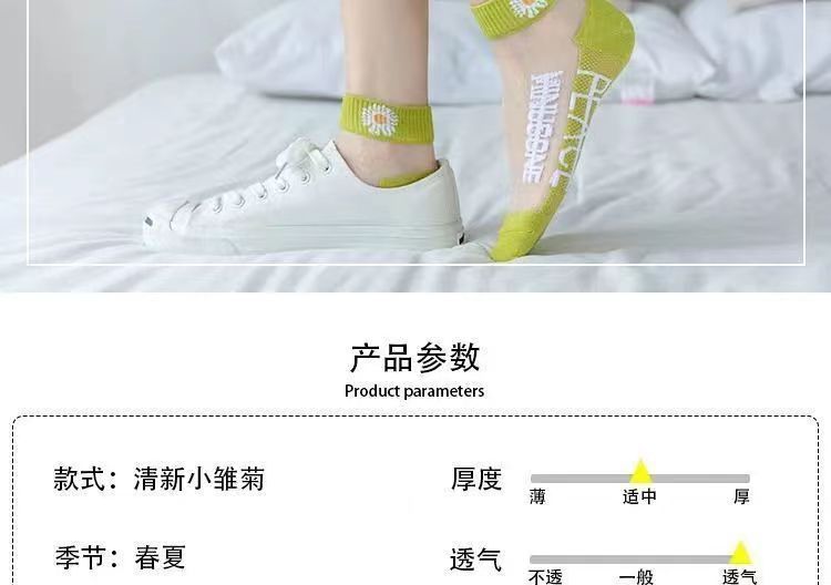 小雏菊春夏薄款浅口卡丝玻璃丝女袜透气船袜夏季薄款小花透明水晶