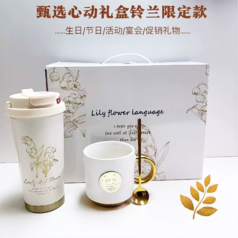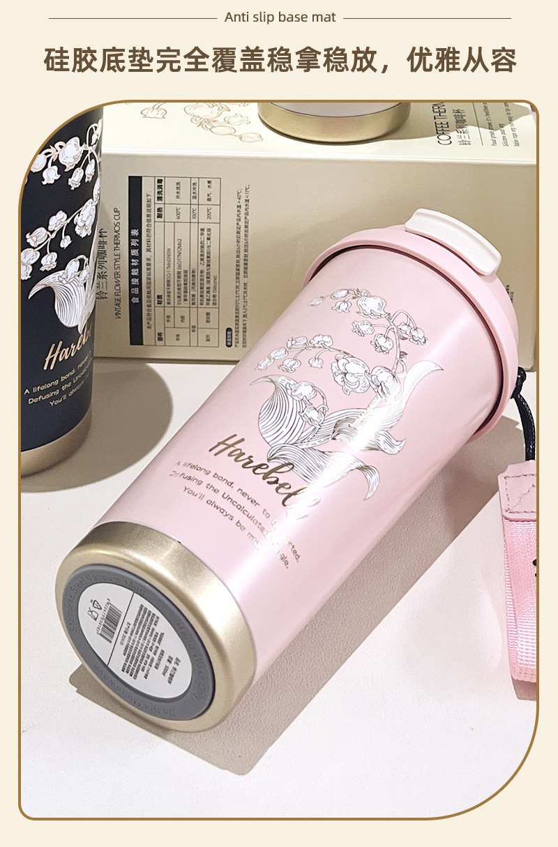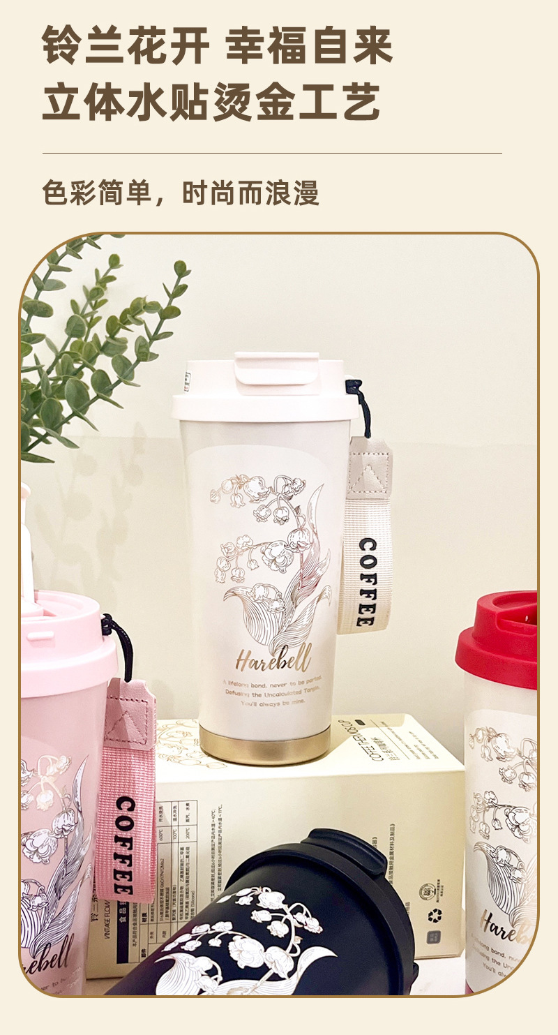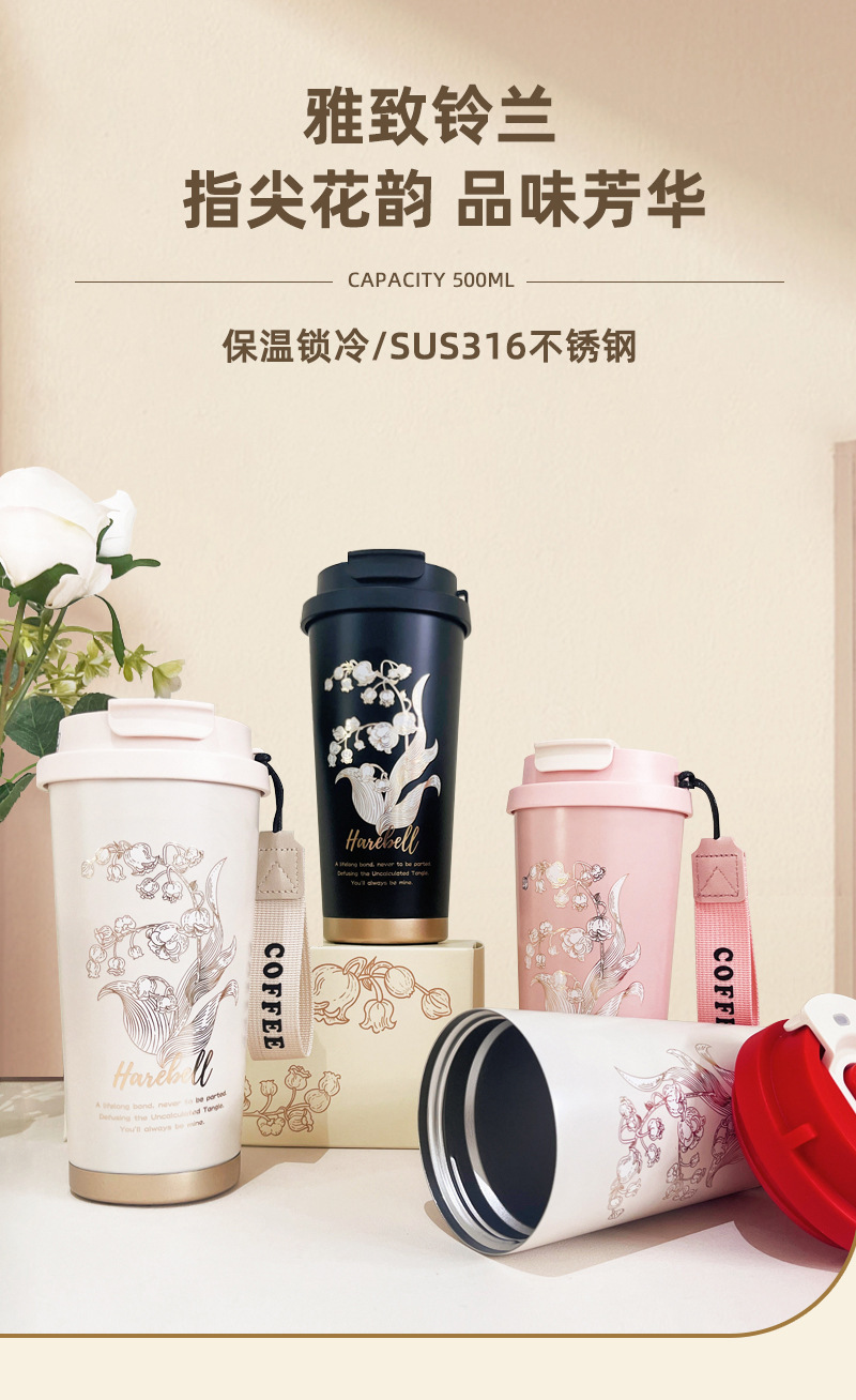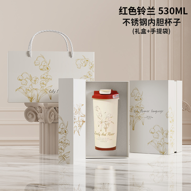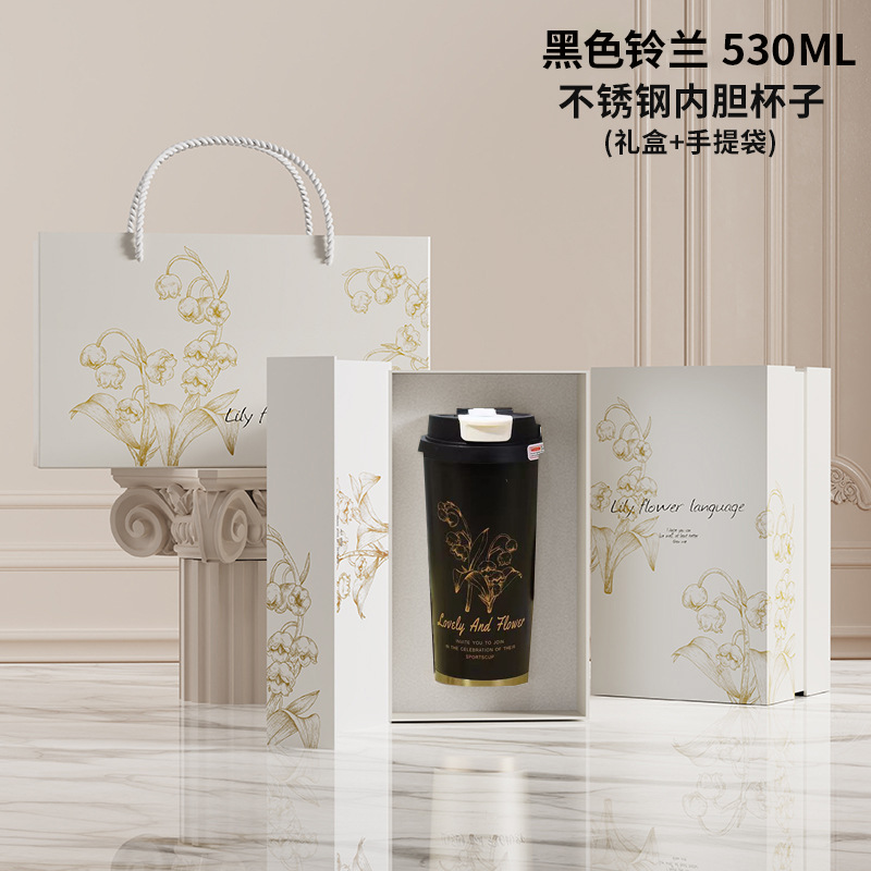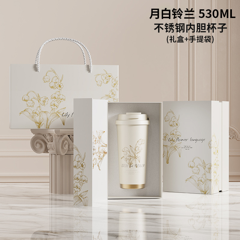高颜值铃兰咖啡杯316不锈钢保温杯简约大容量水杯便携节日礼品盒