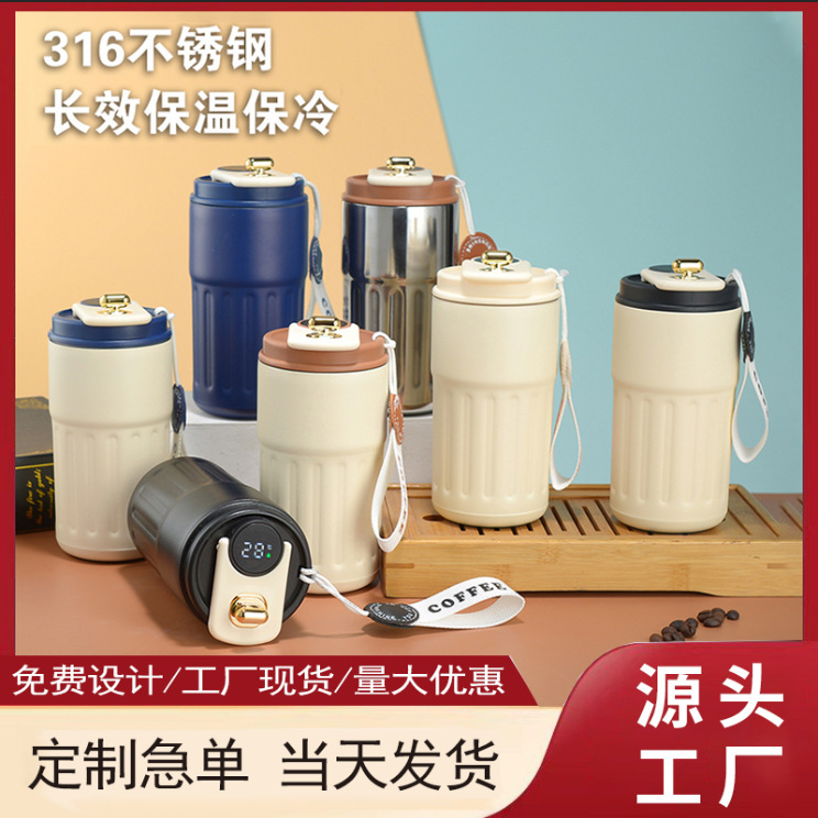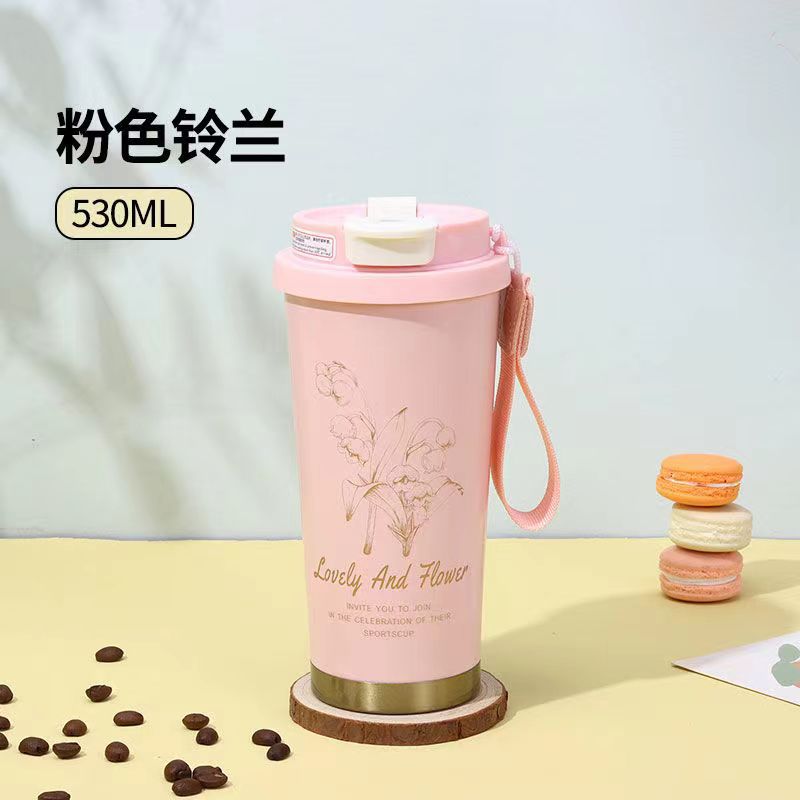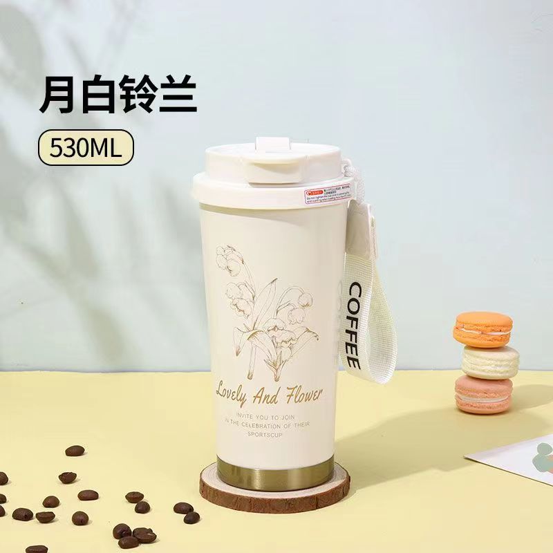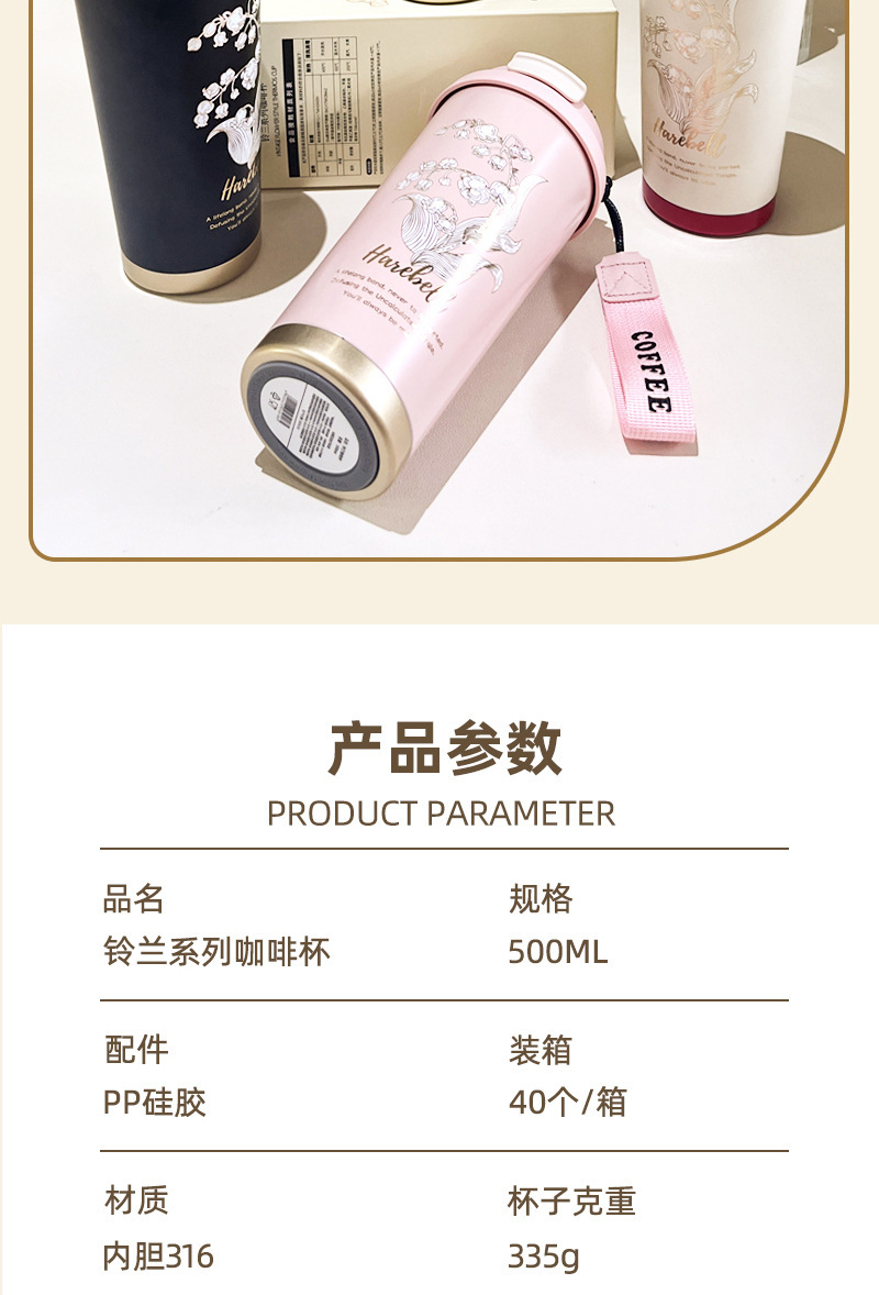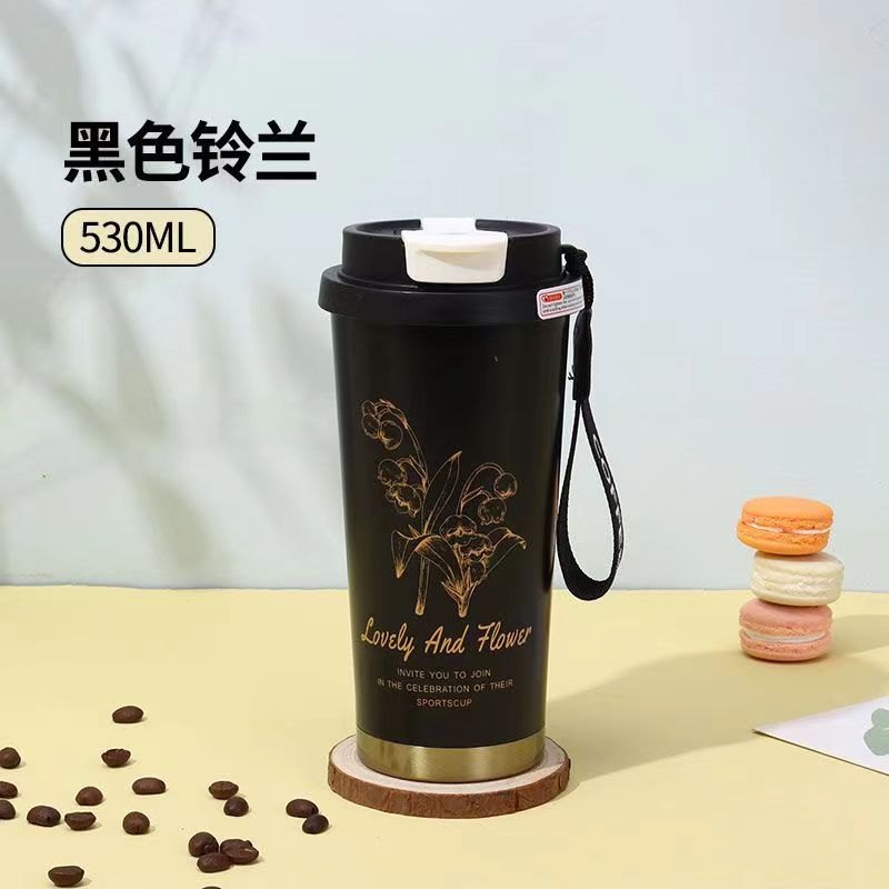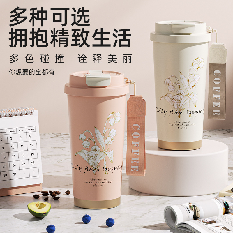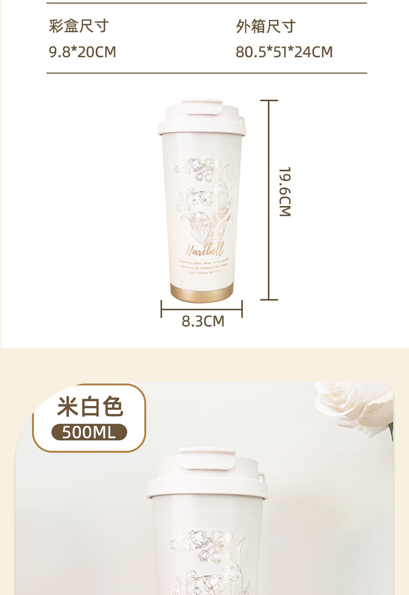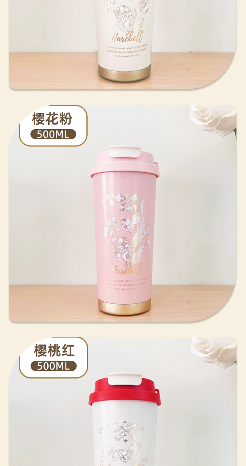 高颜值铃兰咖啡杯316不锈钢保温杯简约大容量水杯便携节日礼品盒