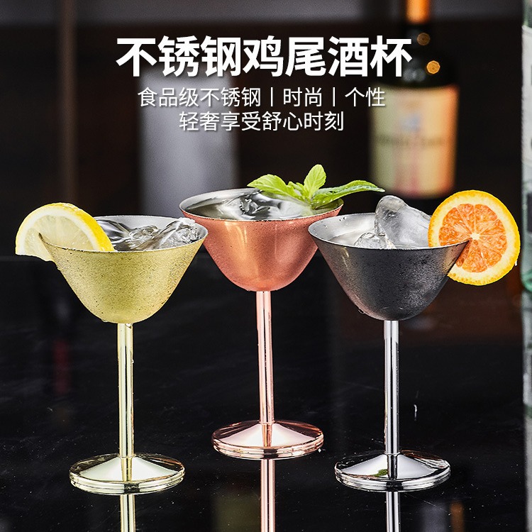 马天尼鸡尾酒三角杯304不锈钢酒杯高脚杯香槟酒吧杯古典调酒杯子