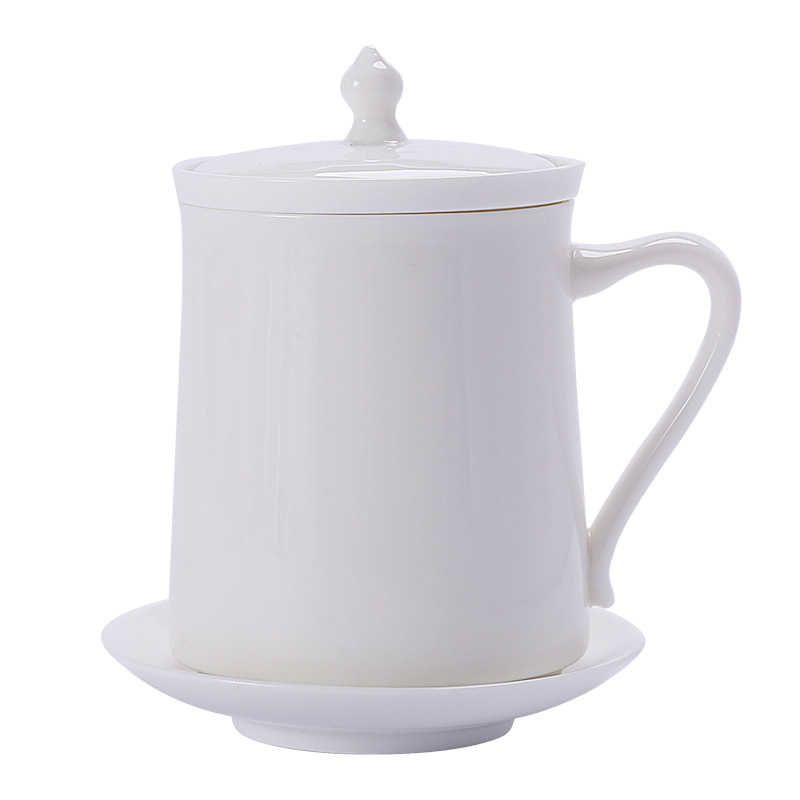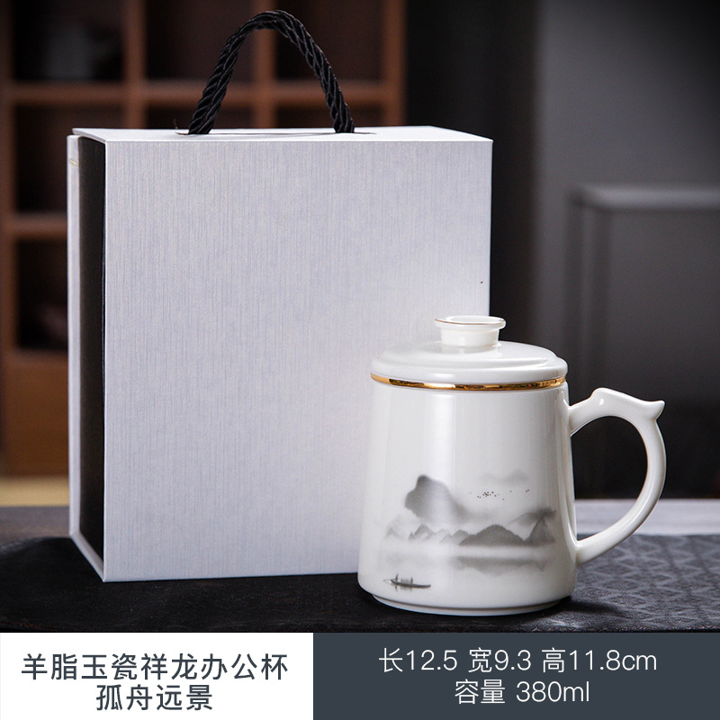 羊脂玉白瓷茶水分离带盖过滤泡茶杯办公会议商务礼品办公杯LOGO定
