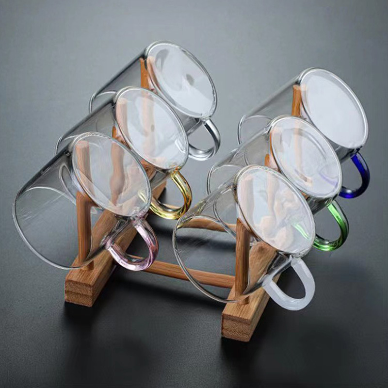 六色透明杯子加厚品茗杯玻璃耐热小茶杯家用茶具小把杯功夫茶杯