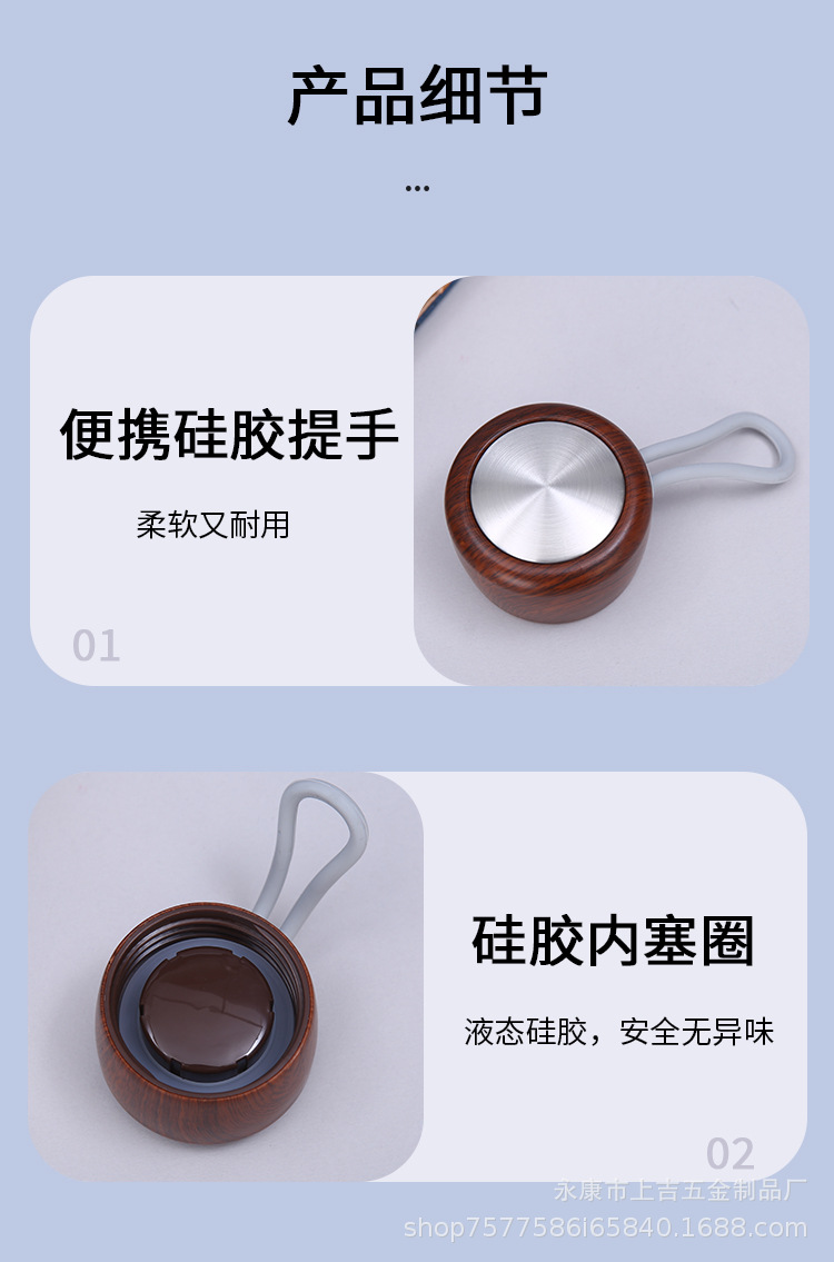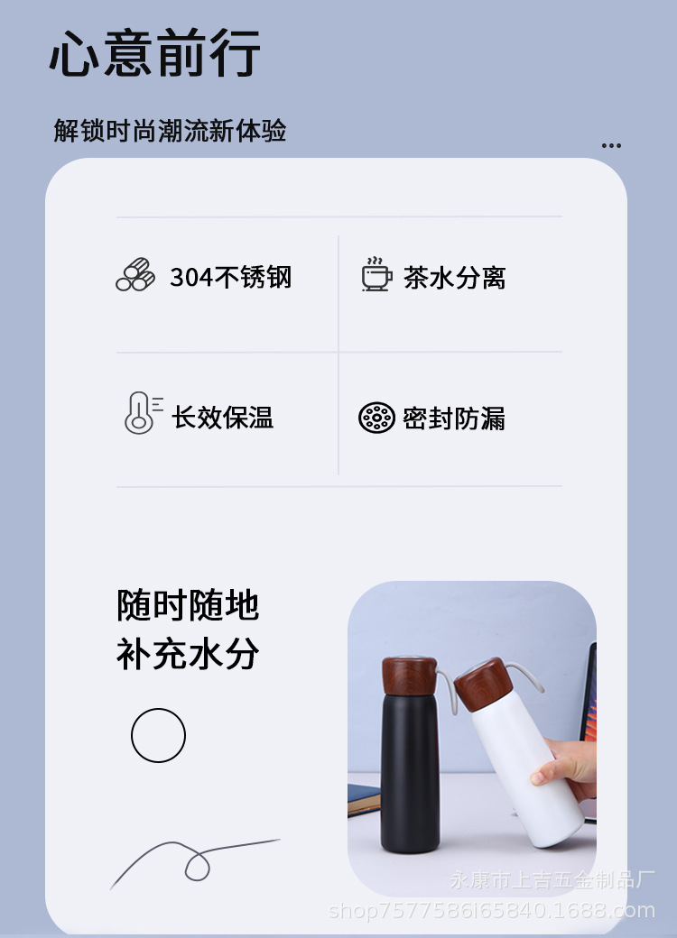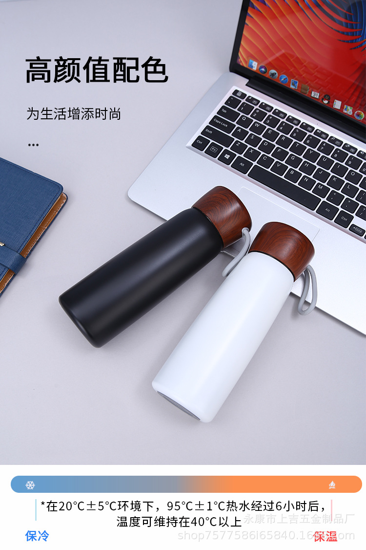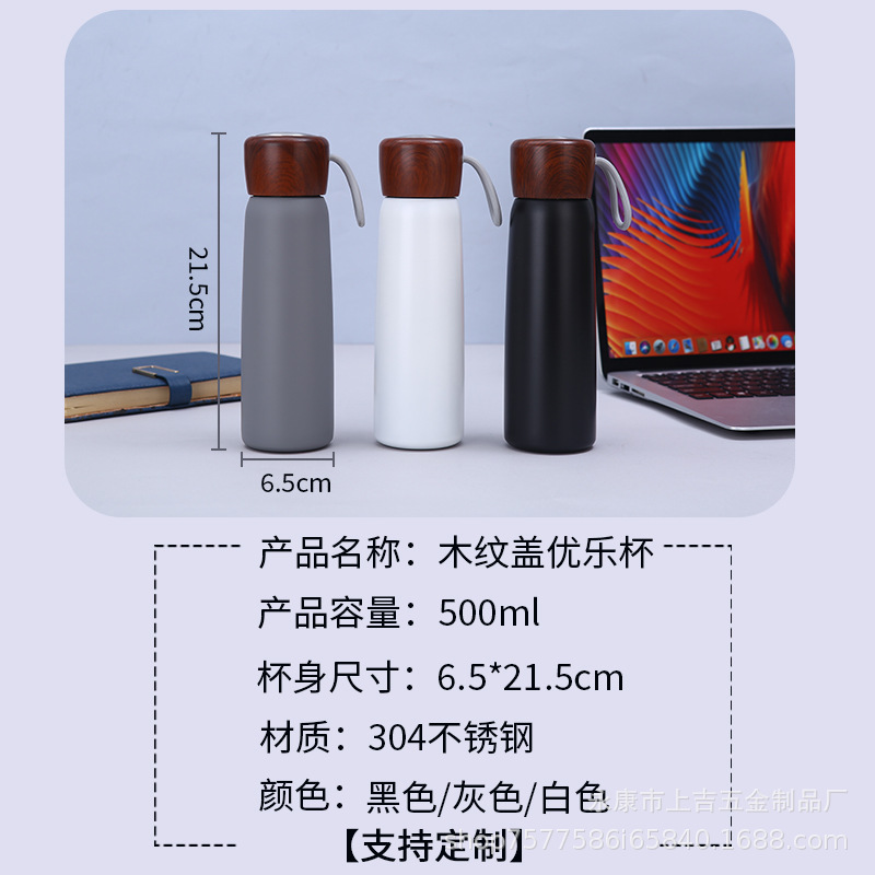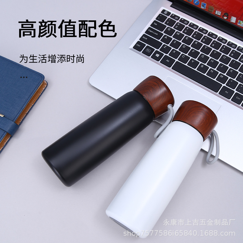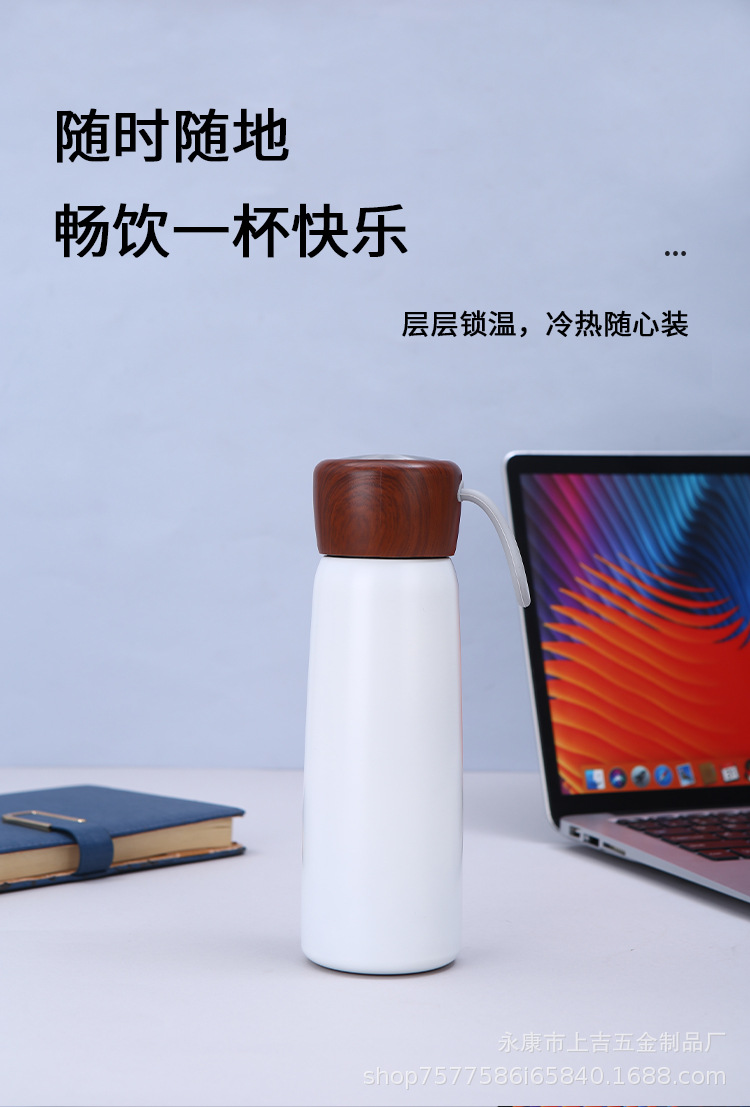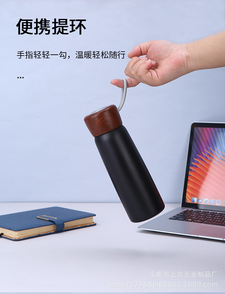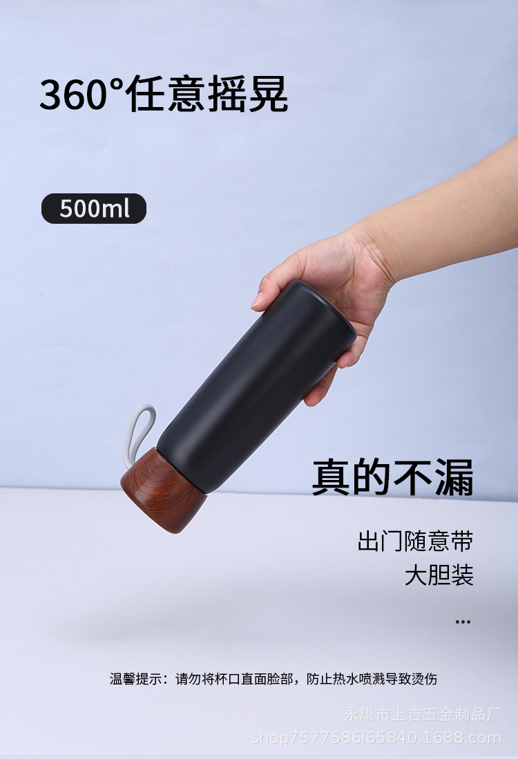 新款简约304不锈钢保温杯手提便携泡茶杯木纹盖可印制logo礼品杯