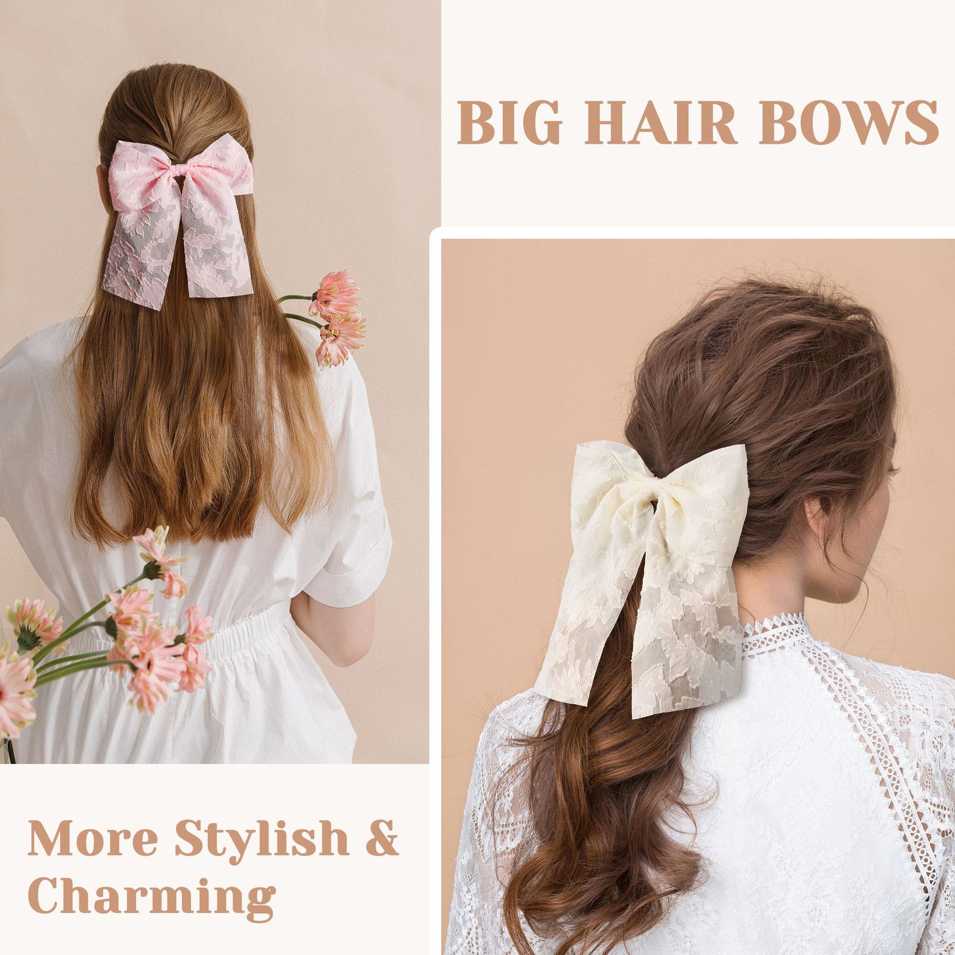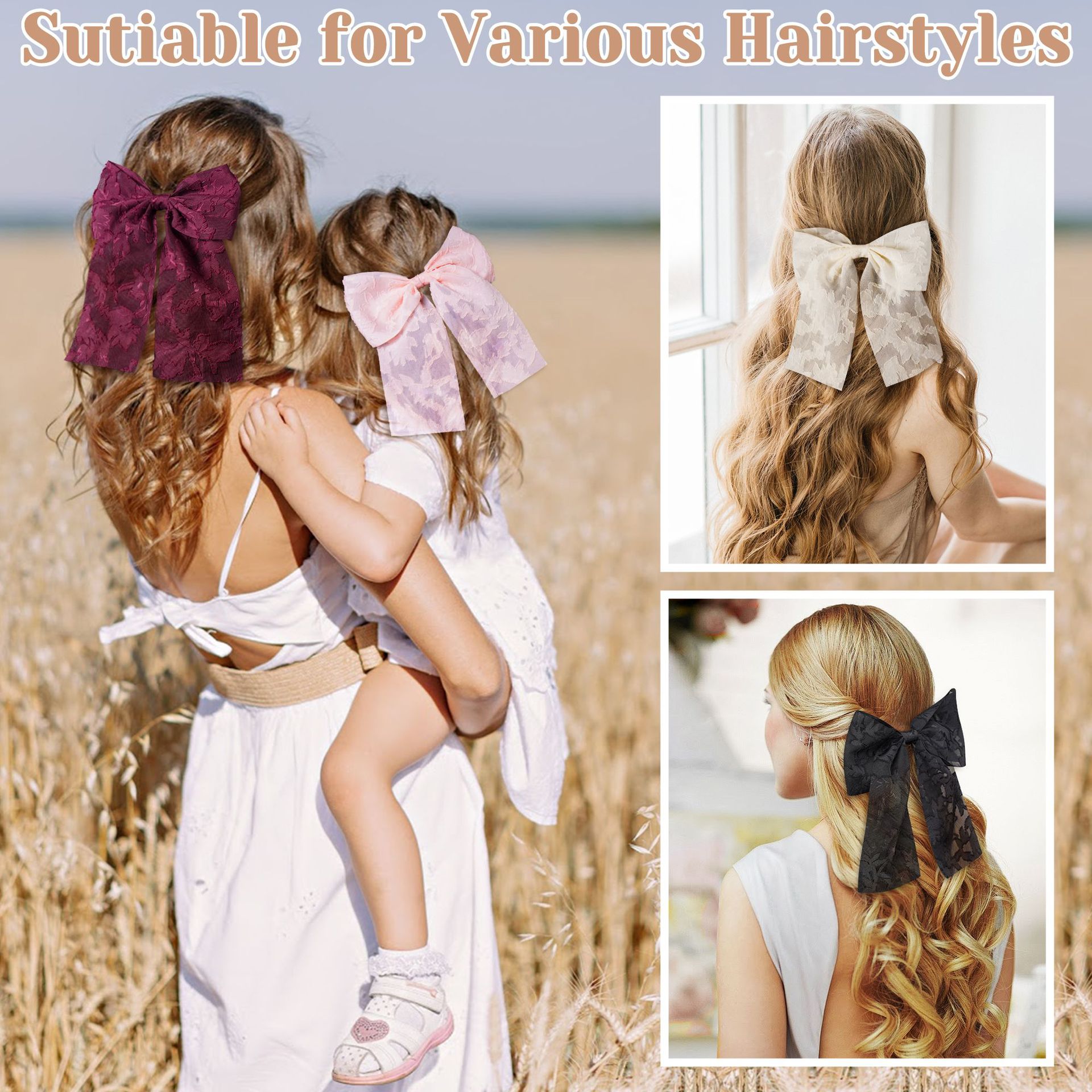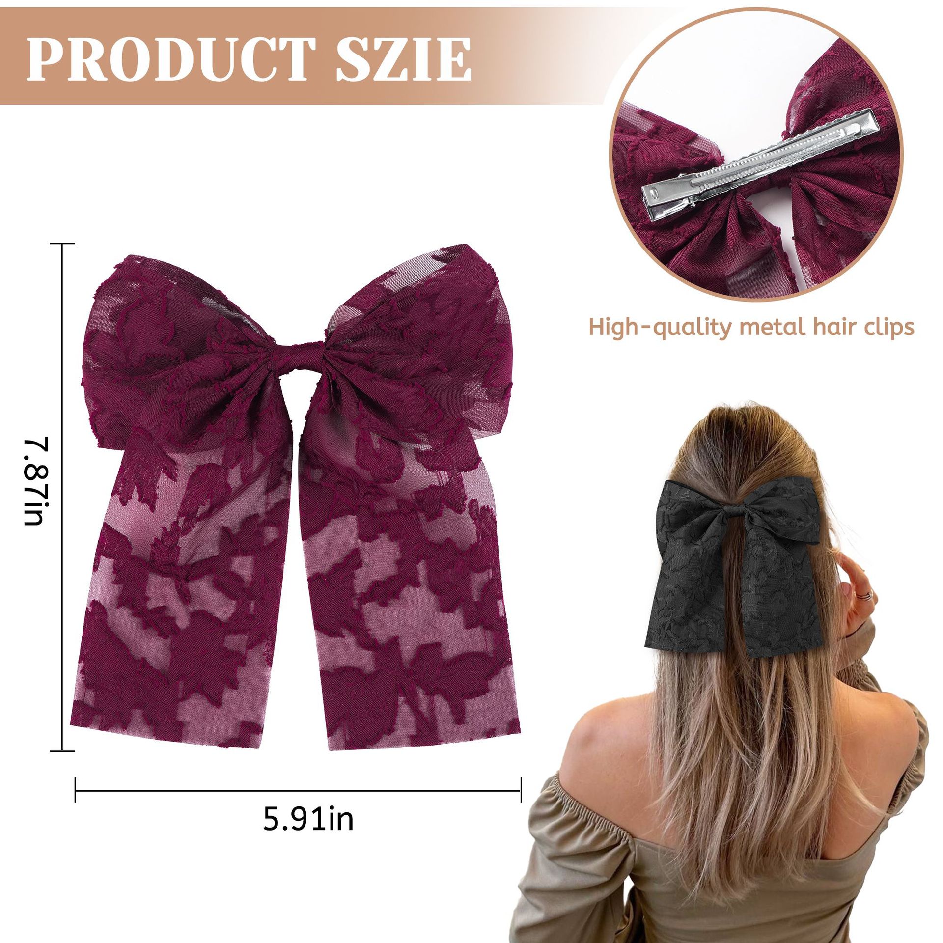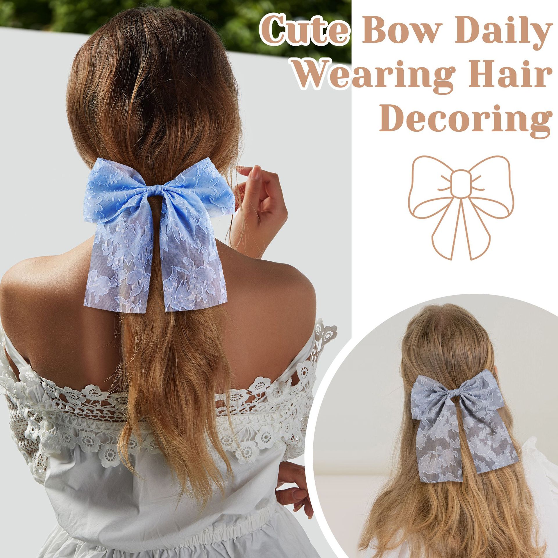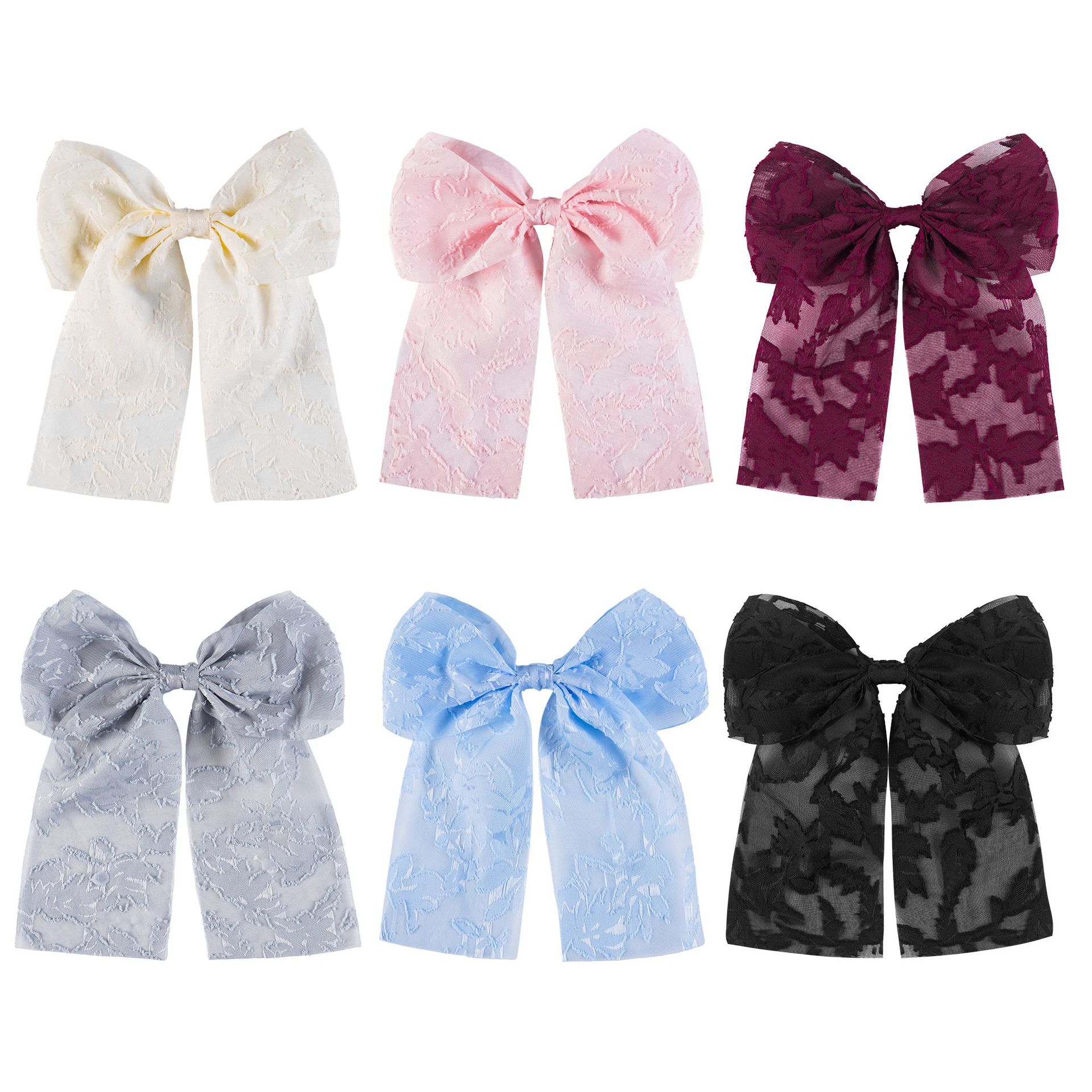 新款法式花朵蕾丝复古蝴蝶结发夹时尚飘带后脑勺尖嘴夹发卡头饰
