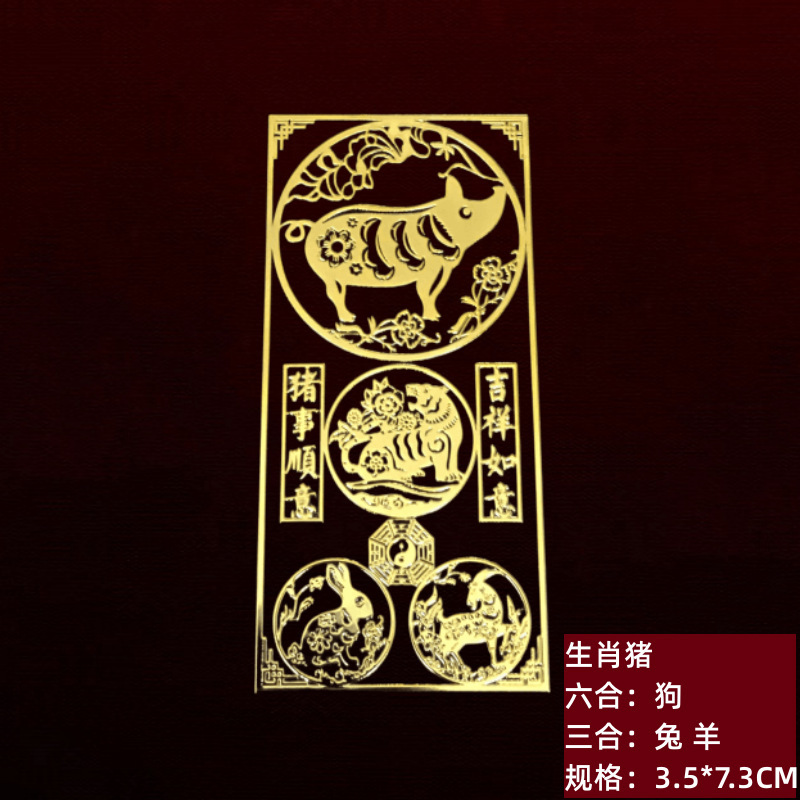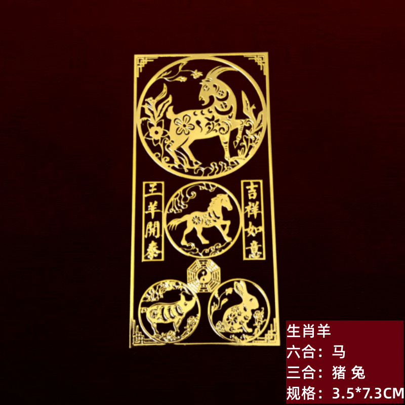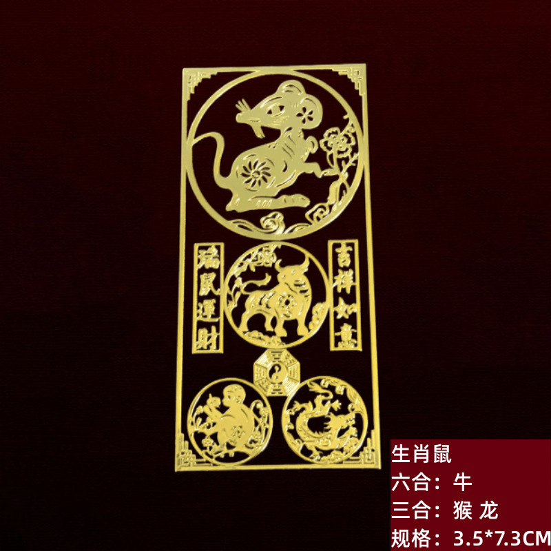 批发三合六合生肖金属贴纸十二生肖鼠牛兔龙蛇马羊猴鸡狗手机贴