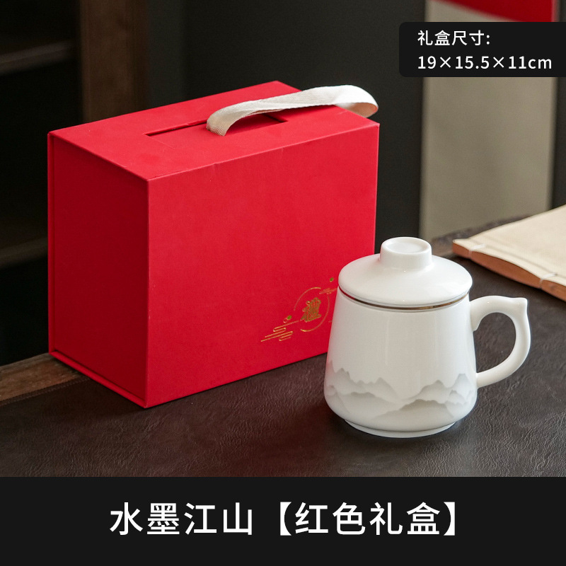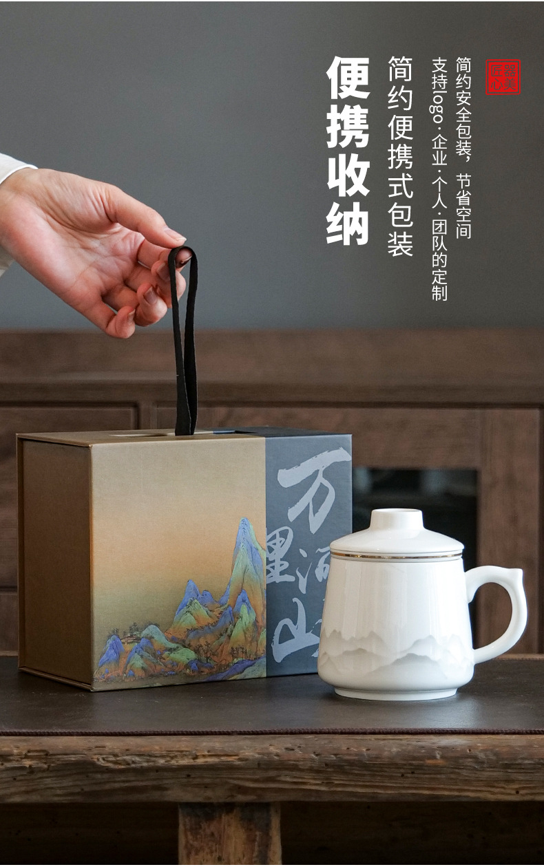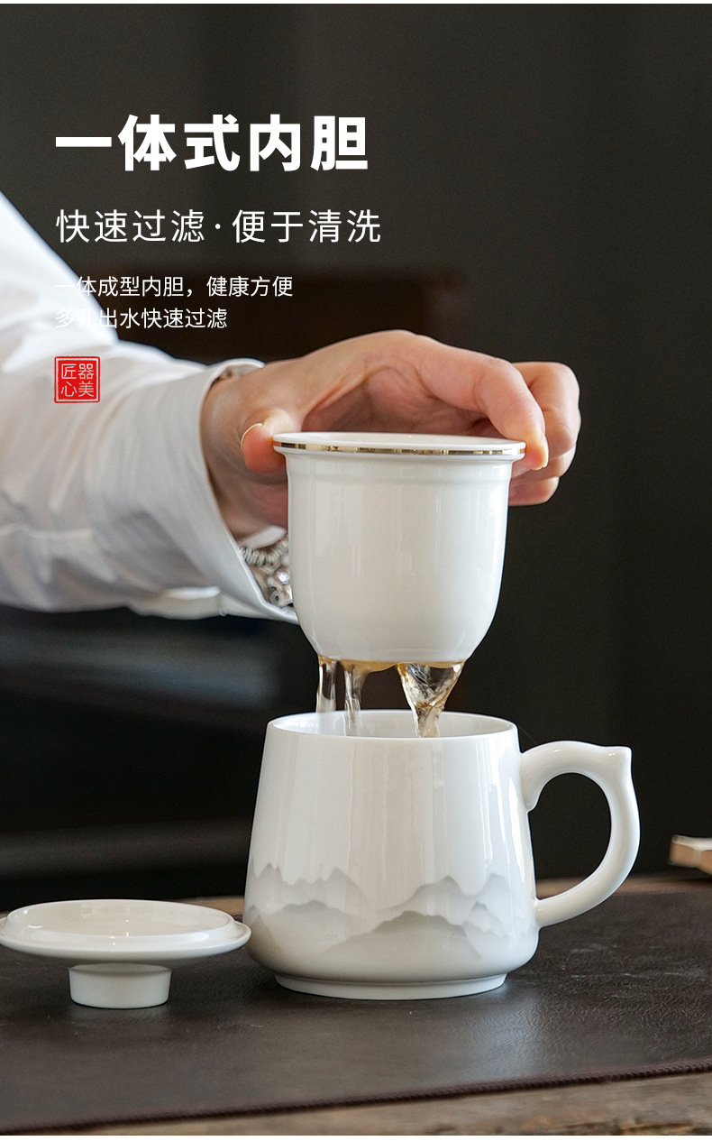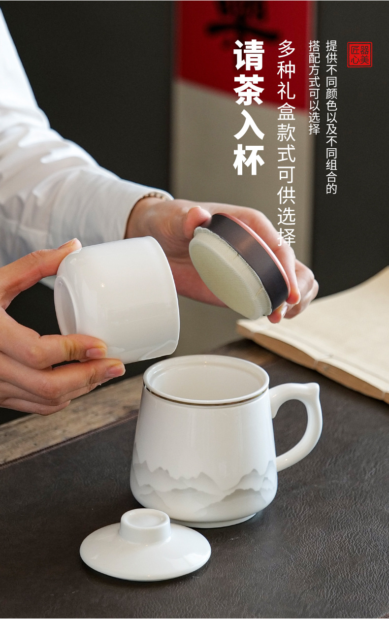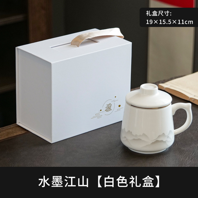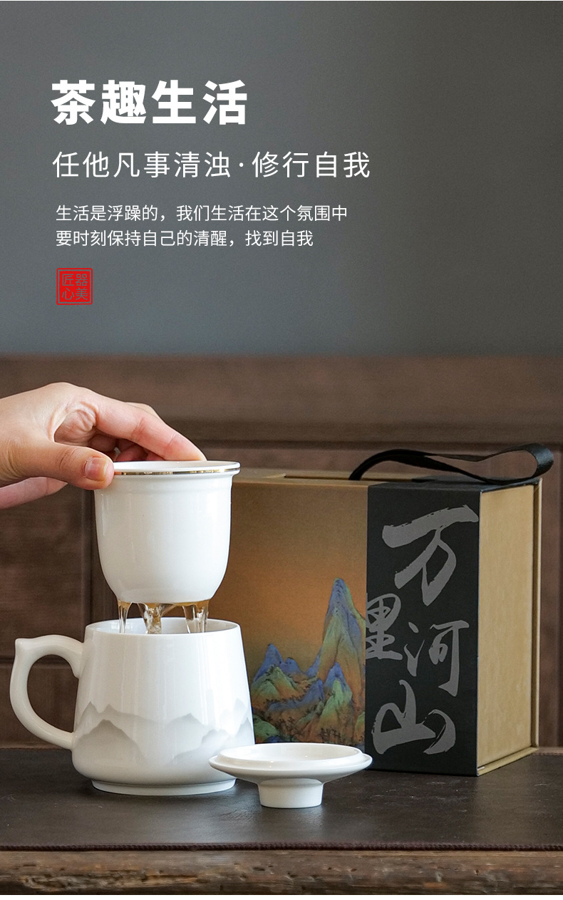 陶瓷马克杯茶水分离泡茶杯带盖办公室家用杯子礼盒伴手礼印制logo