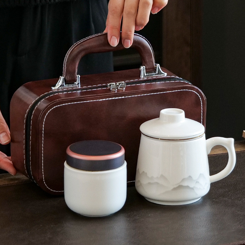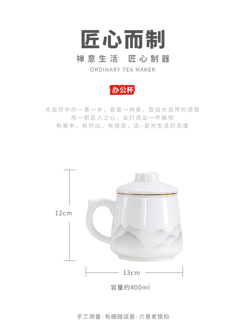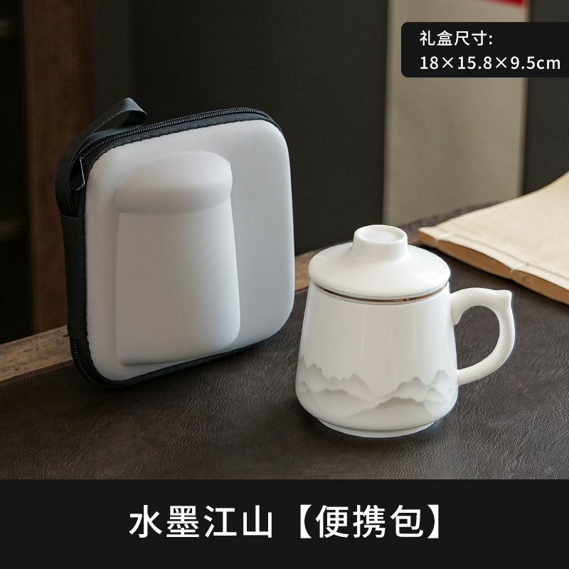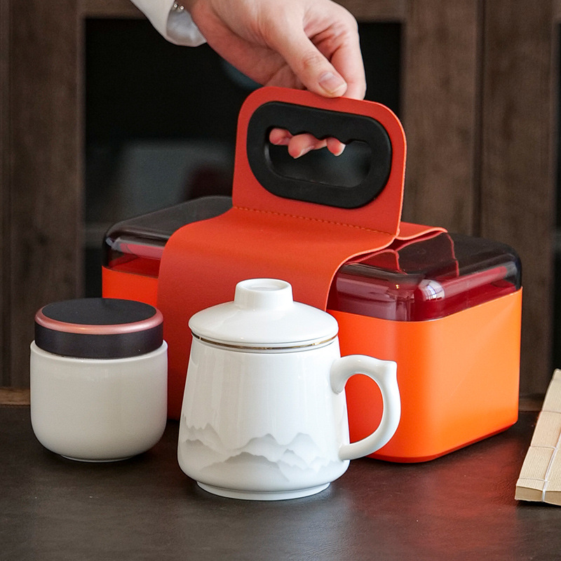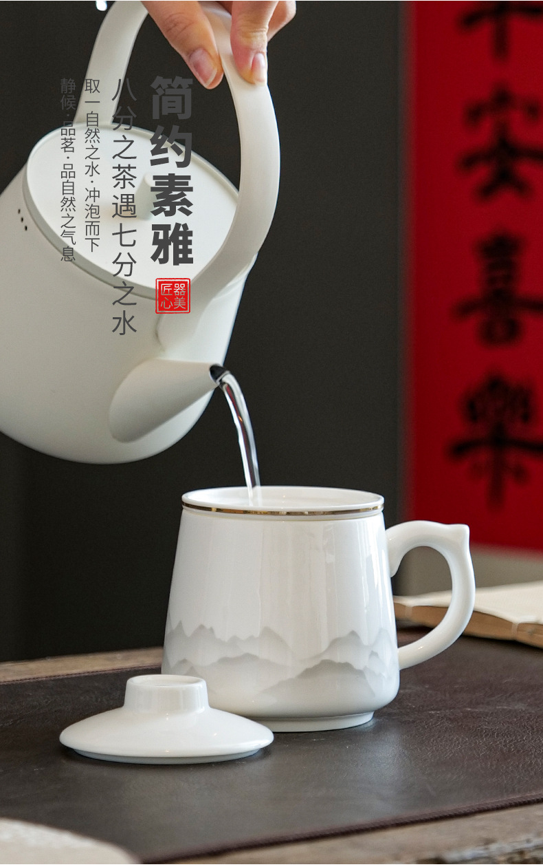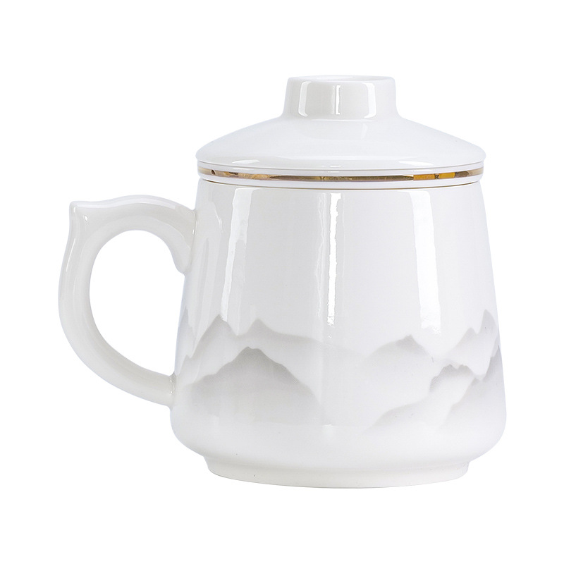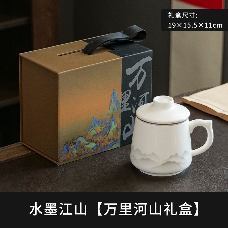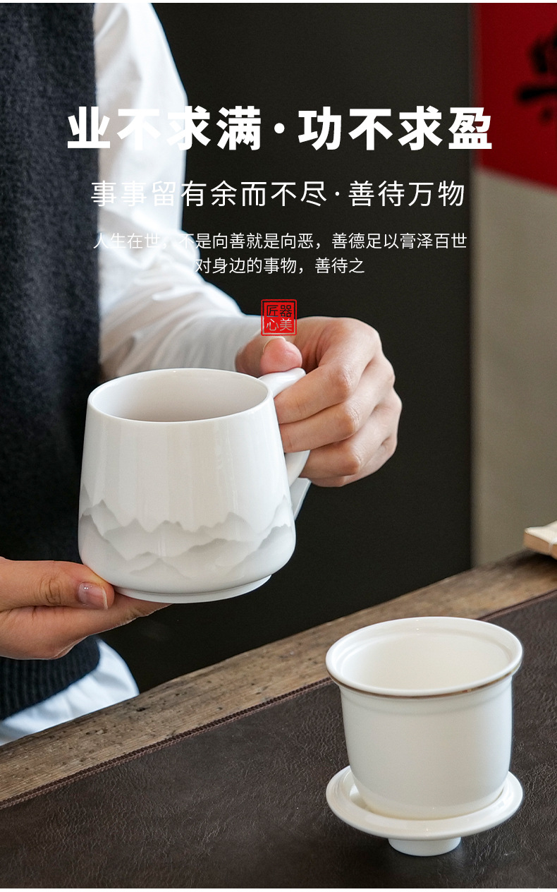 陶瓷马克杯茶水分离泡茶杯带盖办公室家用杯子礼盒伴手礼印制logo