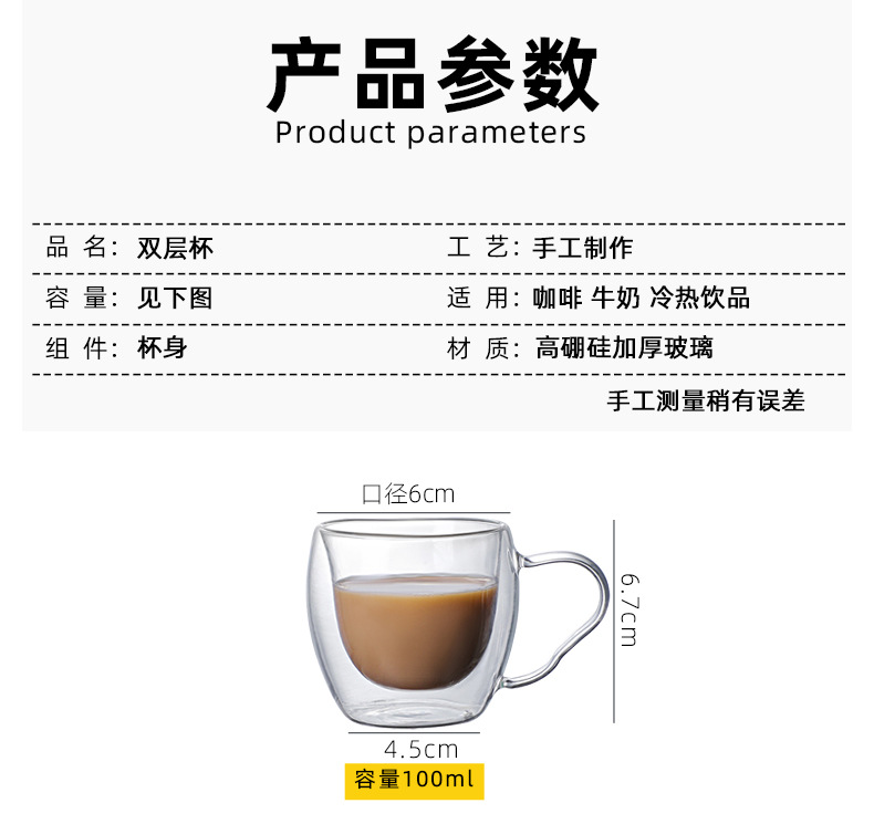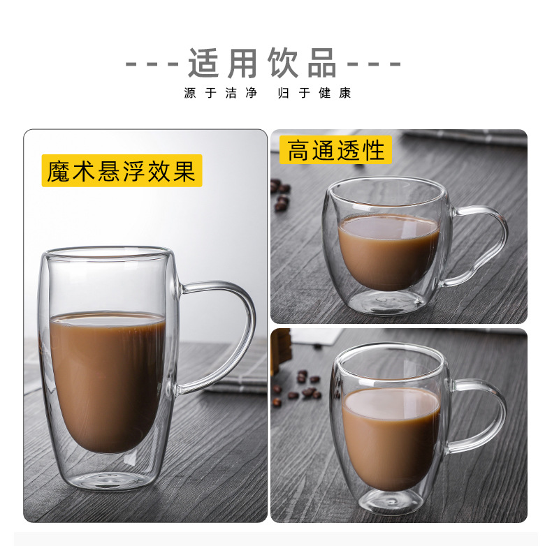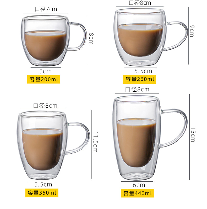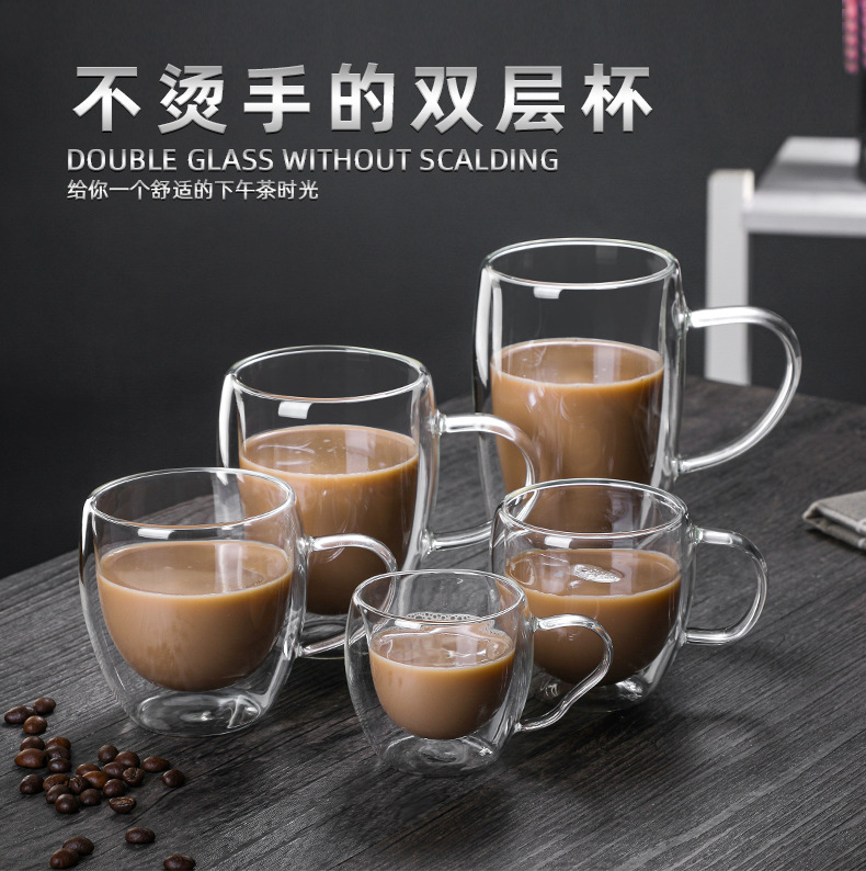 高硼硅玻璃杯双层隔热耐高温透明玻璃水杯家用牛奶咖啡杯子批发