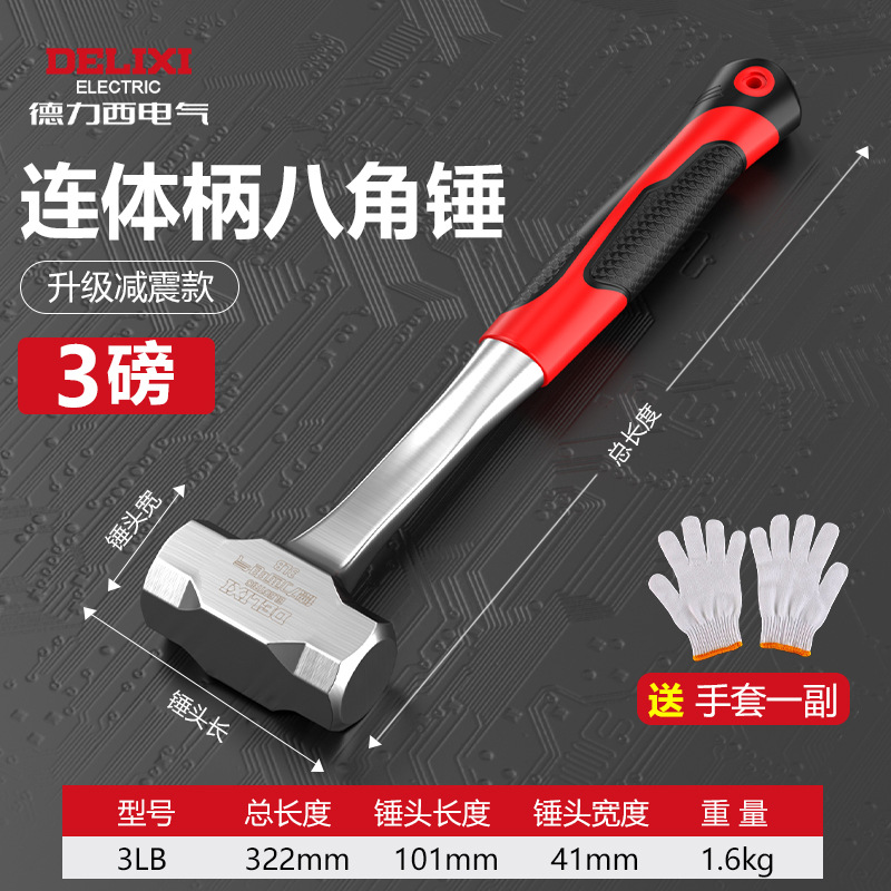 德力西电气八角锤重型实心一体榔头铁锤工地装修减震多功能锤子