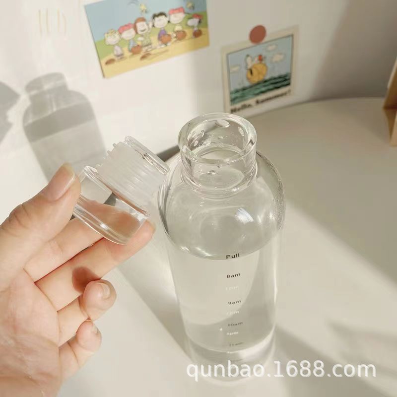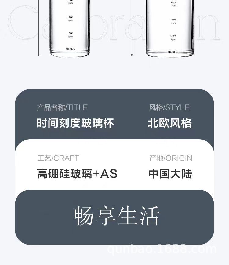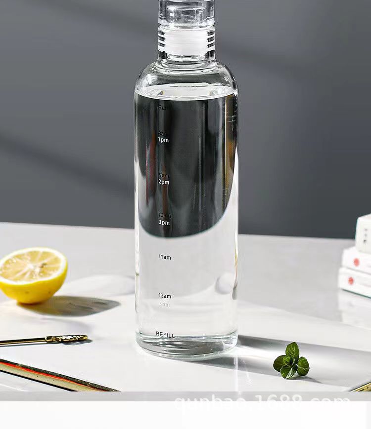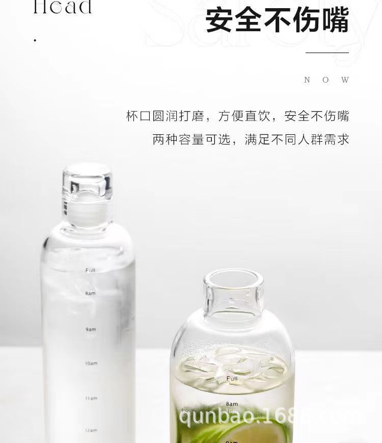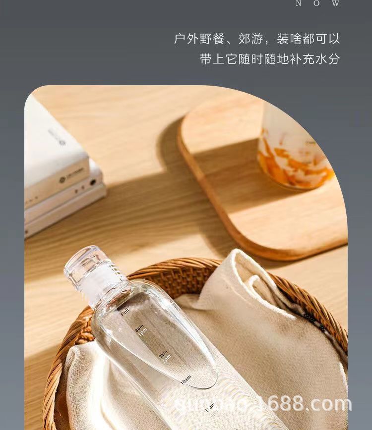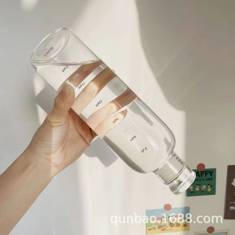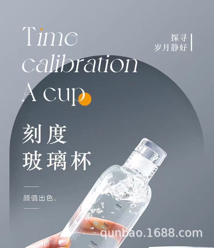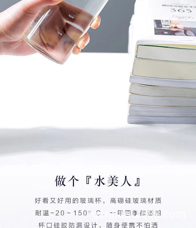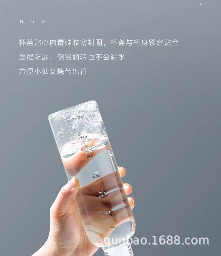 高颜值玻璃杯高硼硅ins风时间刻度学生水杯便携家用透明杯子批发