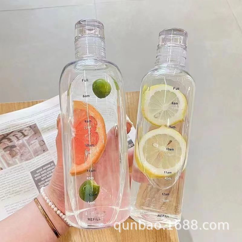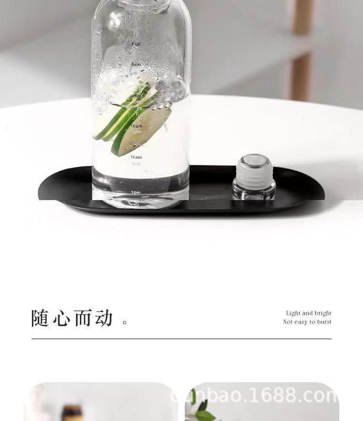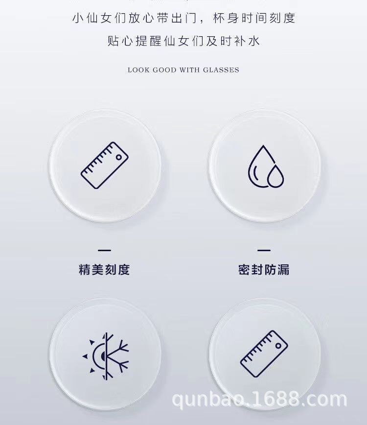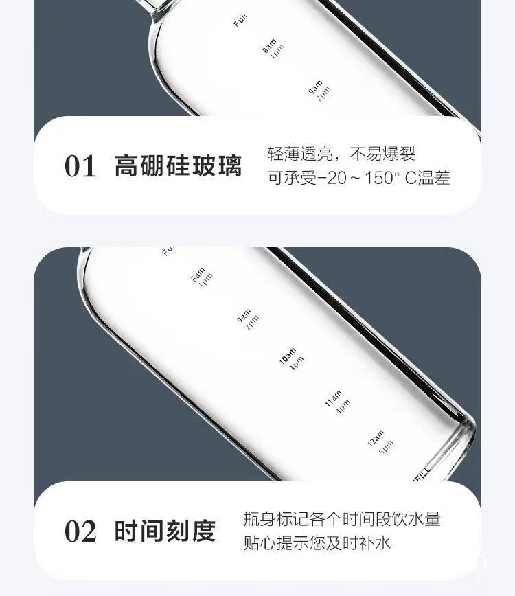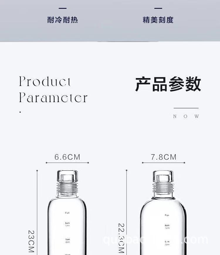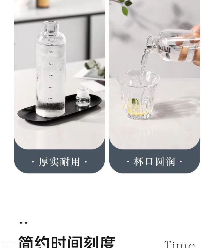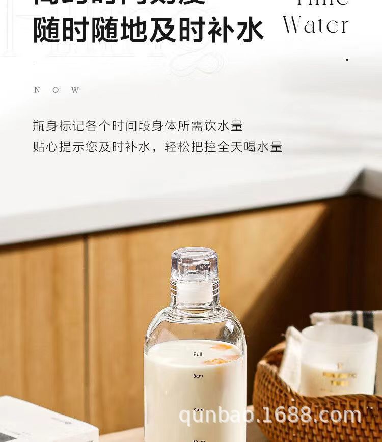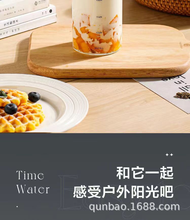 高颜值玻璃杯高硼硅ins风时间刻度学生水杯便携家用透明杯子批发