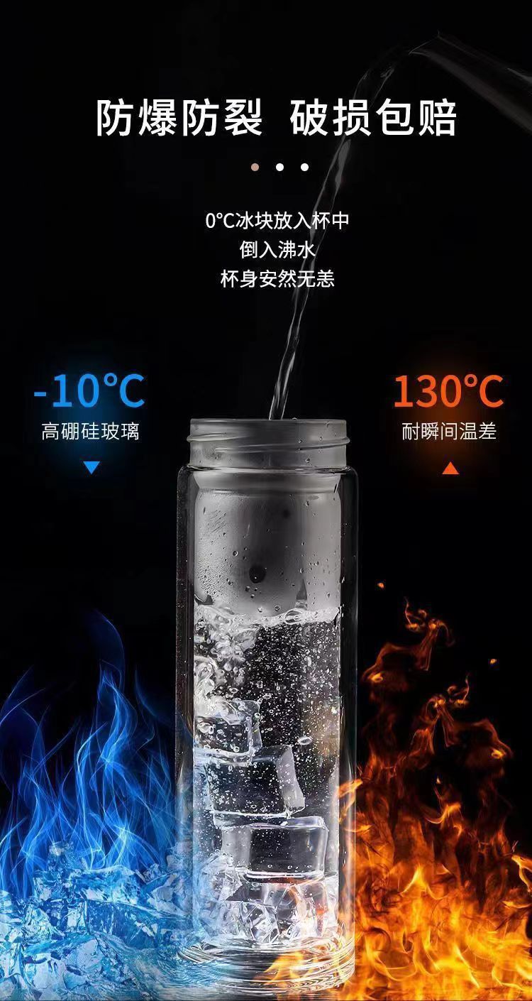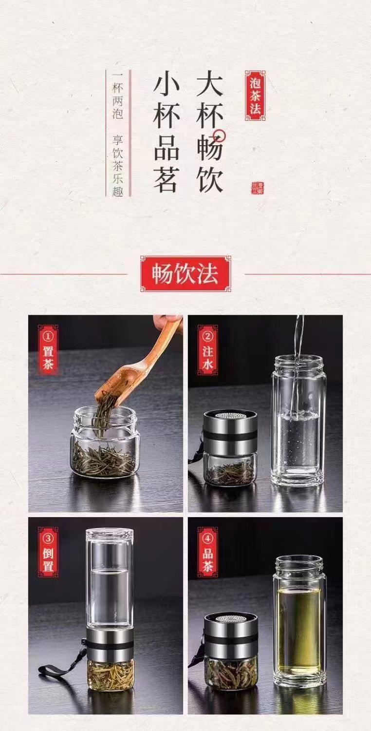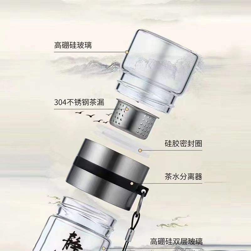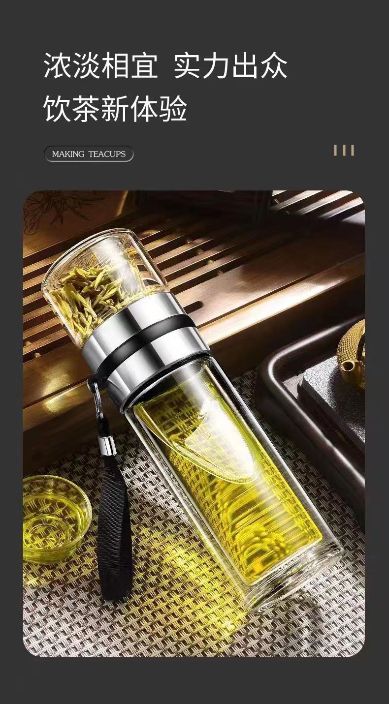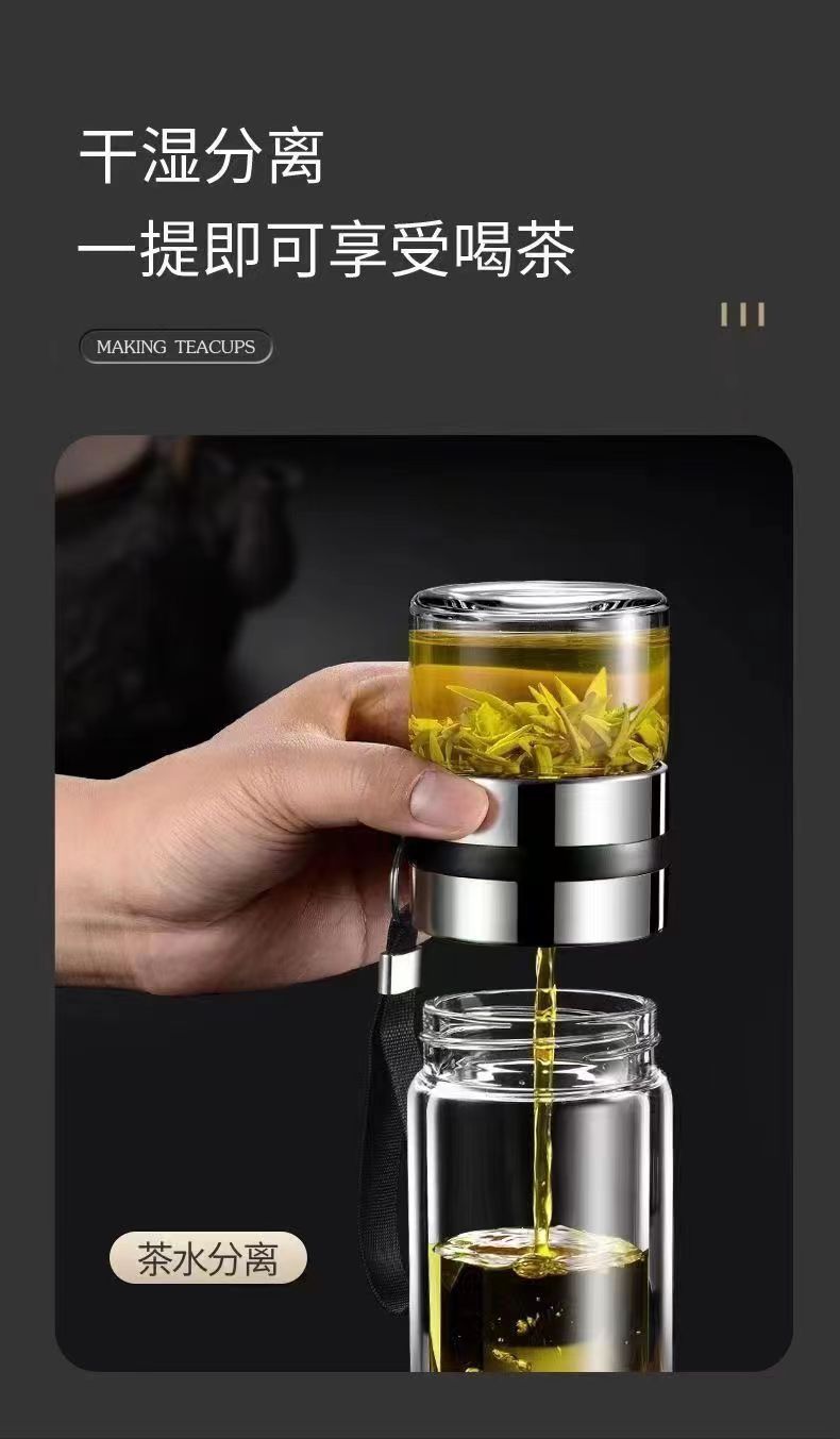 大容量双层玻璃杯便携式茶水分离泡茶水杯男士泡茶杯耐热杯子