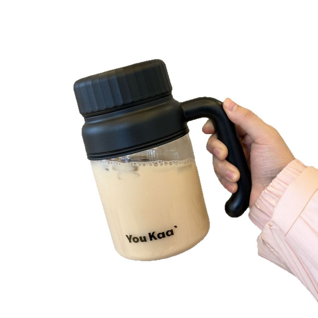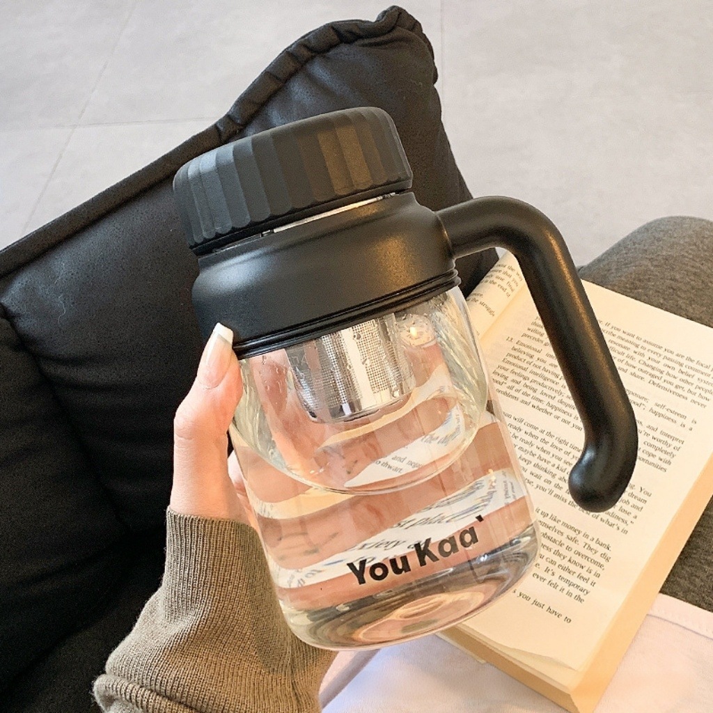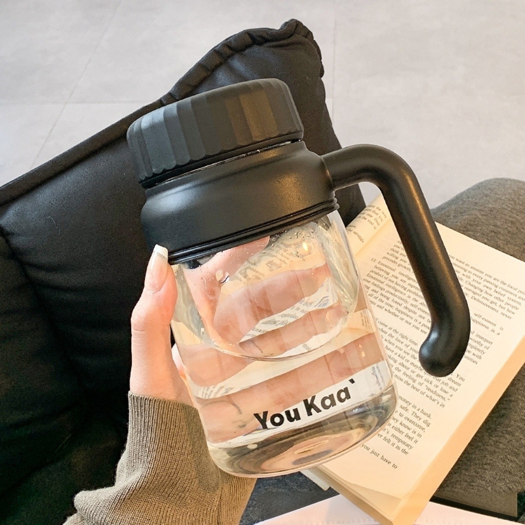 简约大容量水杯学生透明高硼硅玻璃杯女高颜值泡茶杯子带把手便携