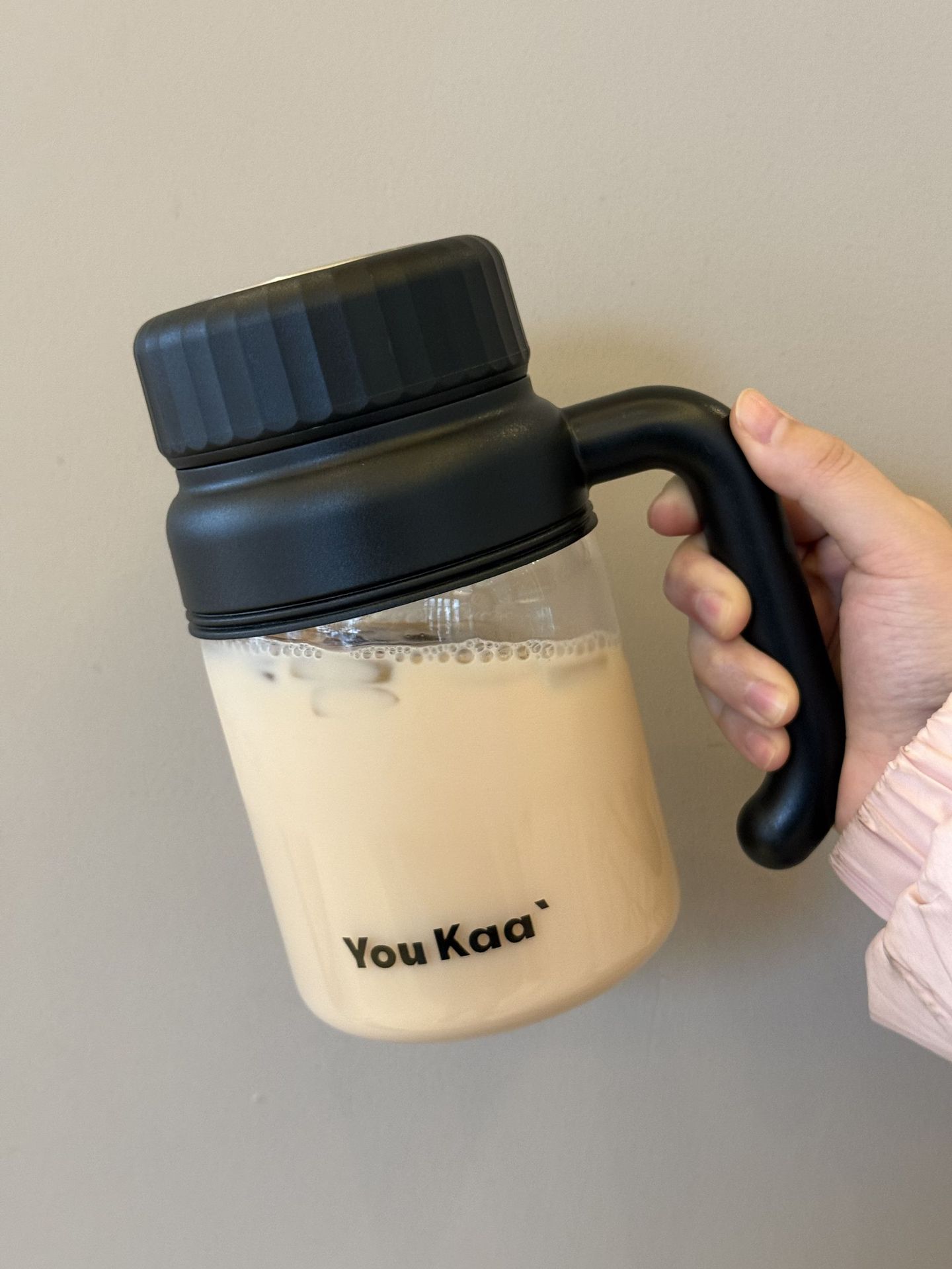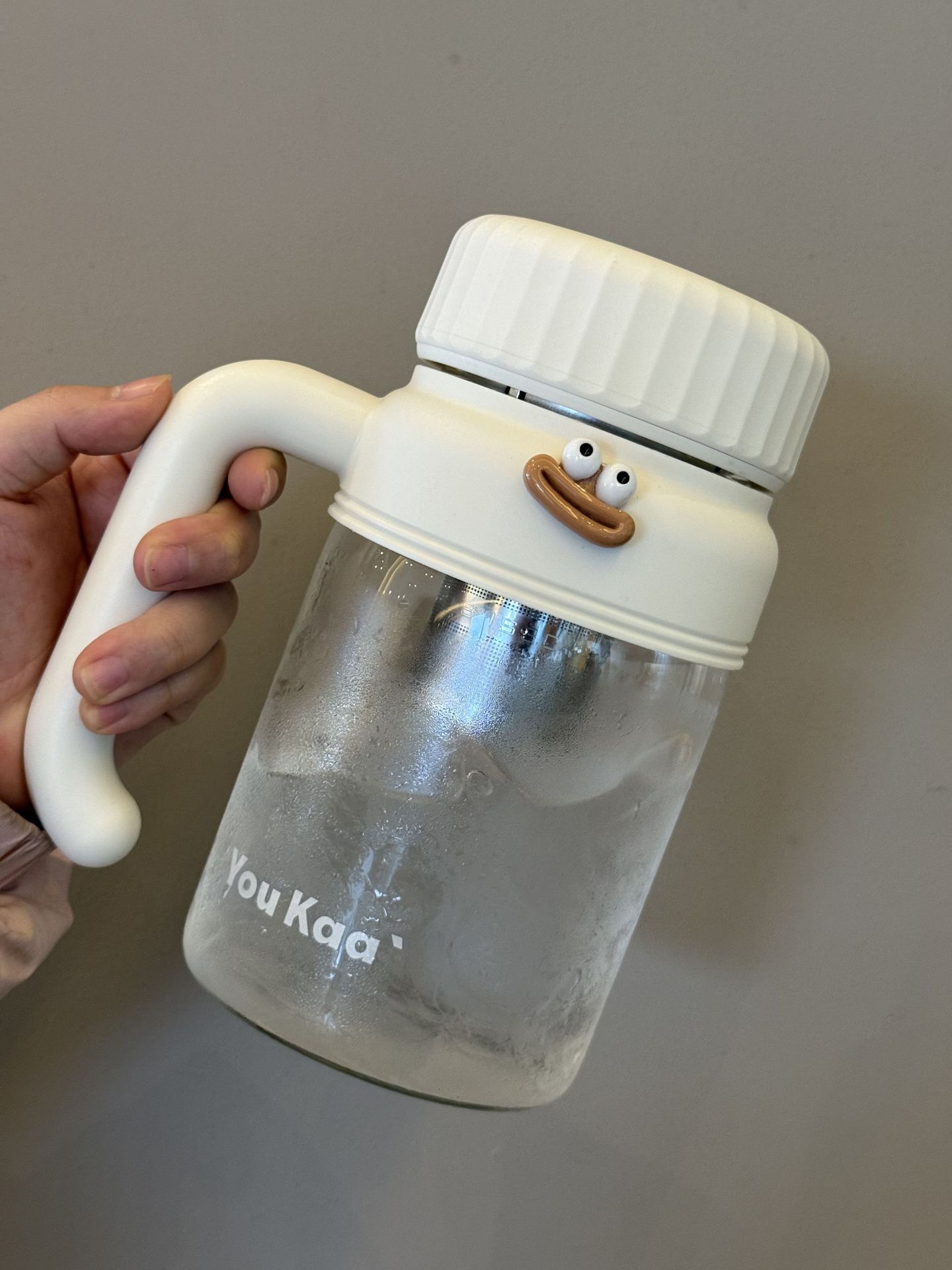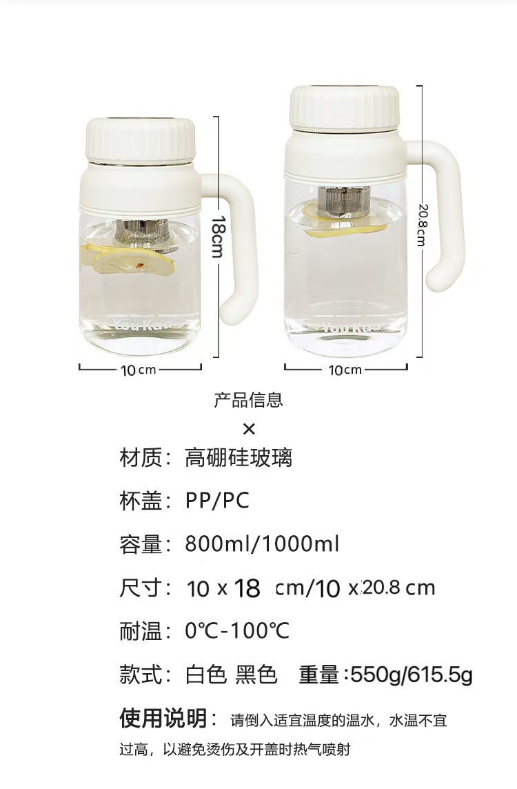 简约大容量水杯学生透明高硼硅玻璃杯女高颜值泡茶杯子带把手便携