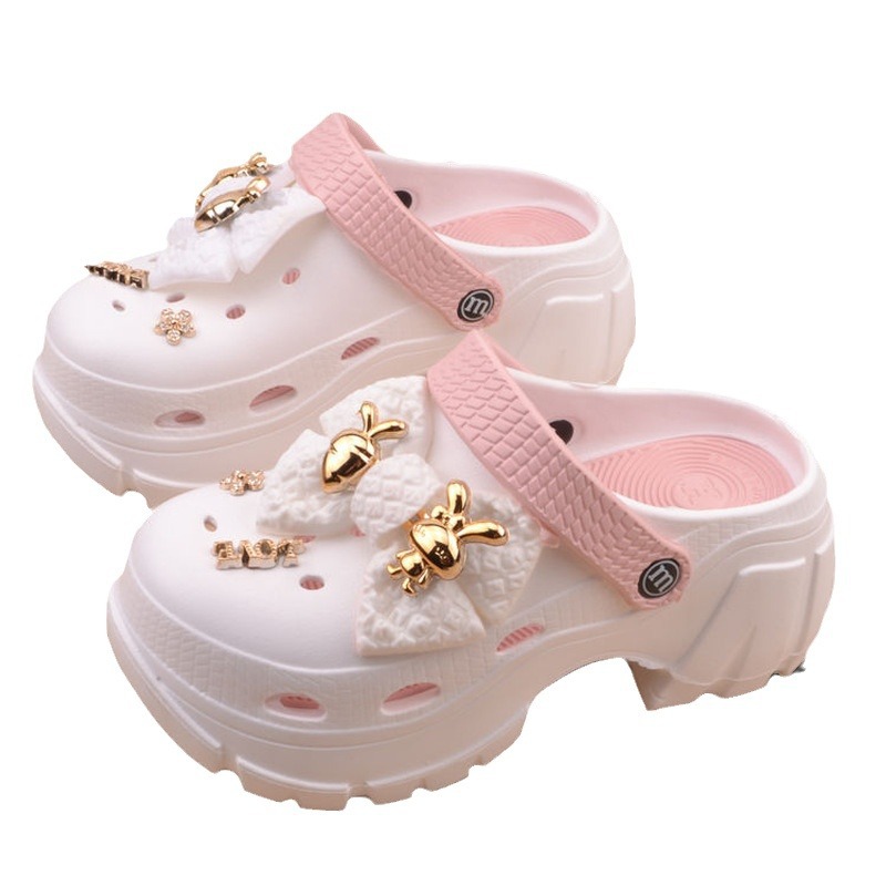 夏季新款外穿洞洞鞋女款EVA超轻防滑花园鞋厚底包头护士沙滩拖鞋